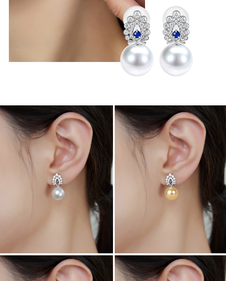 【天猫同款】耳扣款-18k金孔雀石akoya珍珠耳夹5-5.5mm