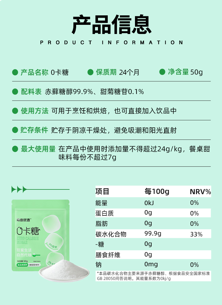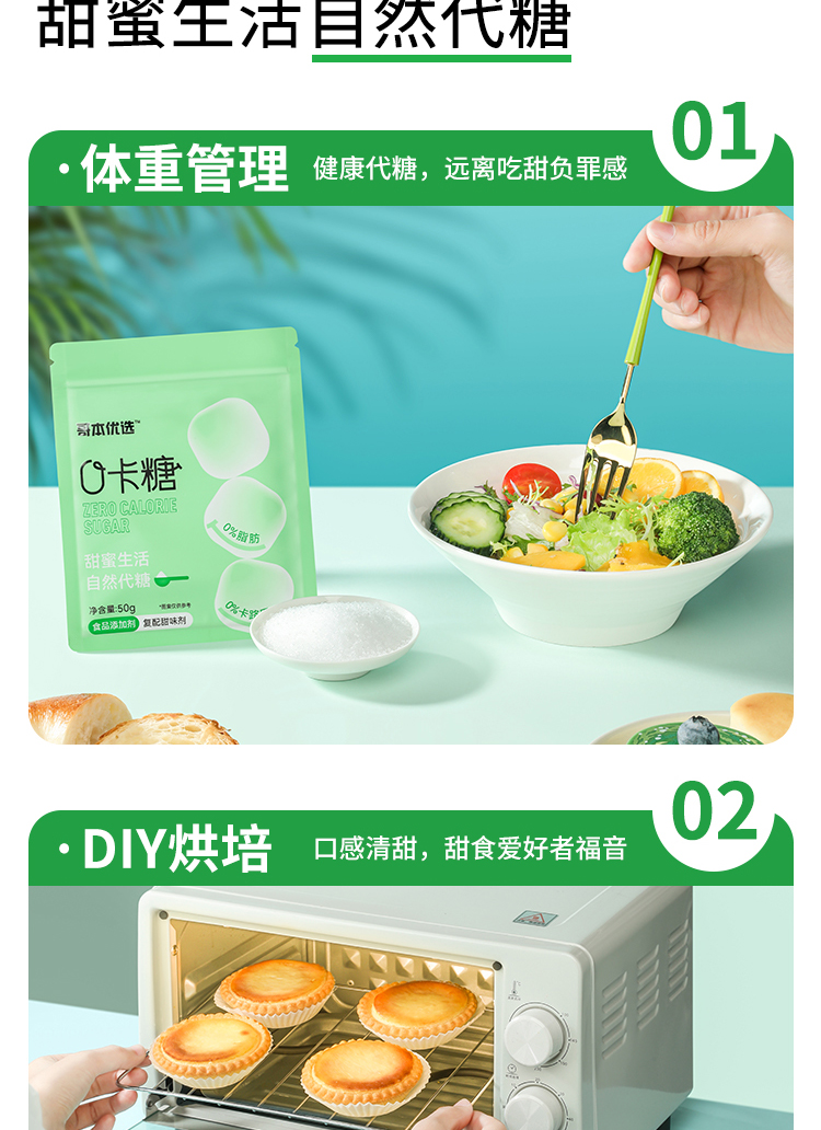 哥本0卡糖“戒糖不戒甜”0脂0糖0卡 植物萃取高品质健康代糖 1袋/50g
