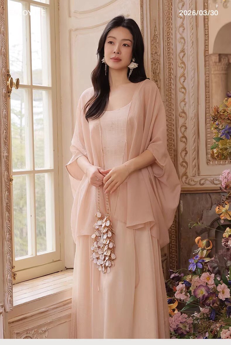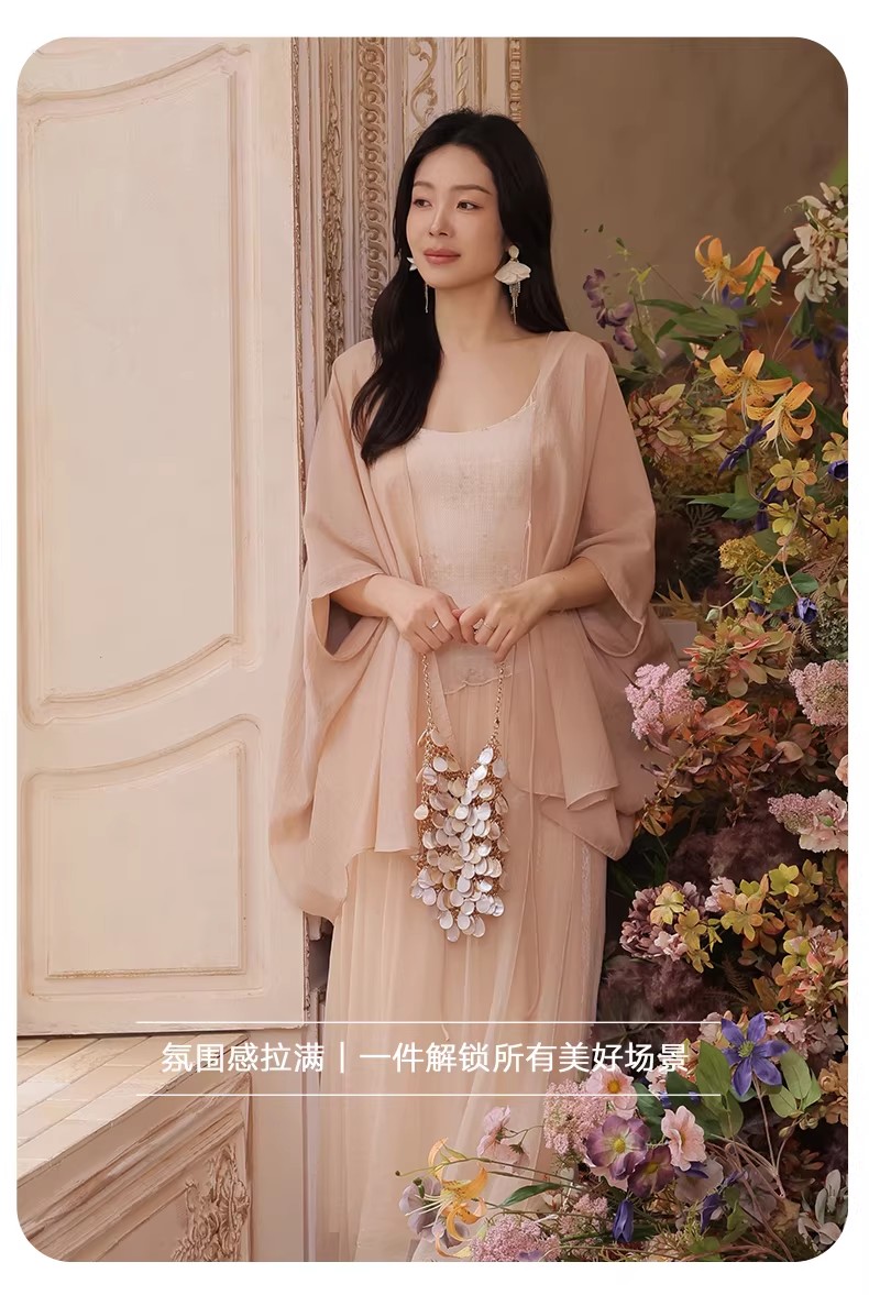 【门店同款】ENJOY夏季落樱浅粉吊带纱裙 170693145