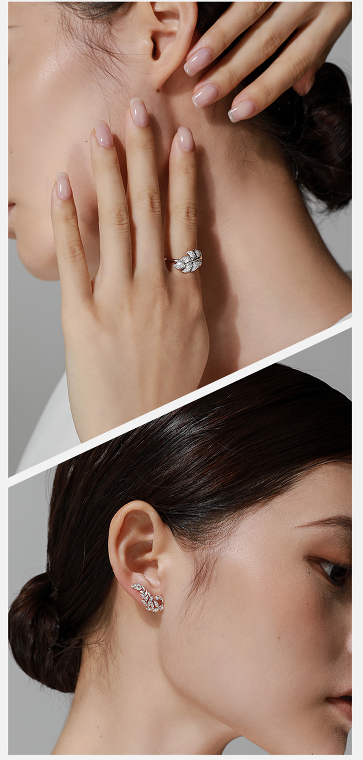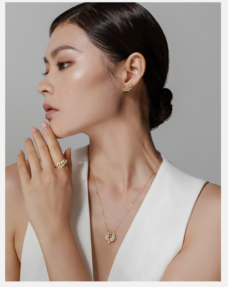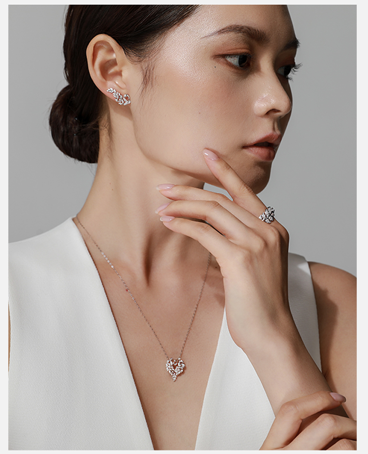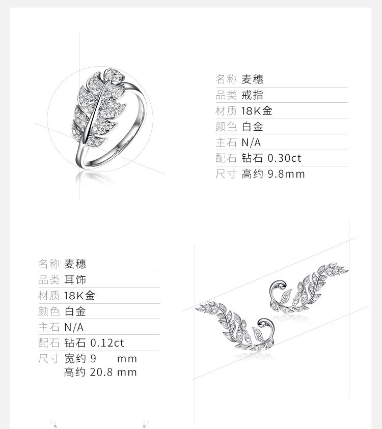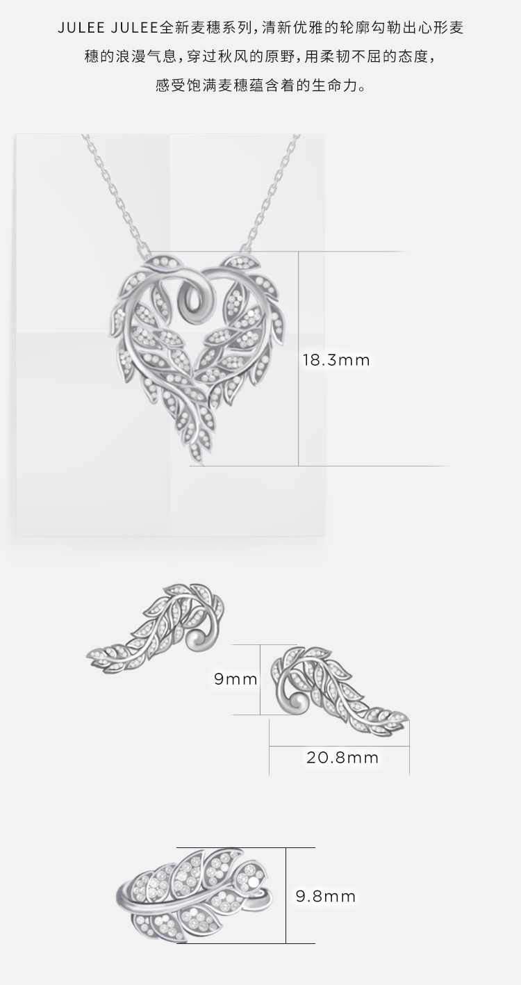 【麦穗】JULEE JULEE茱俪珠宝 18K白金钻石吊坠项链耳饰戒指套装
