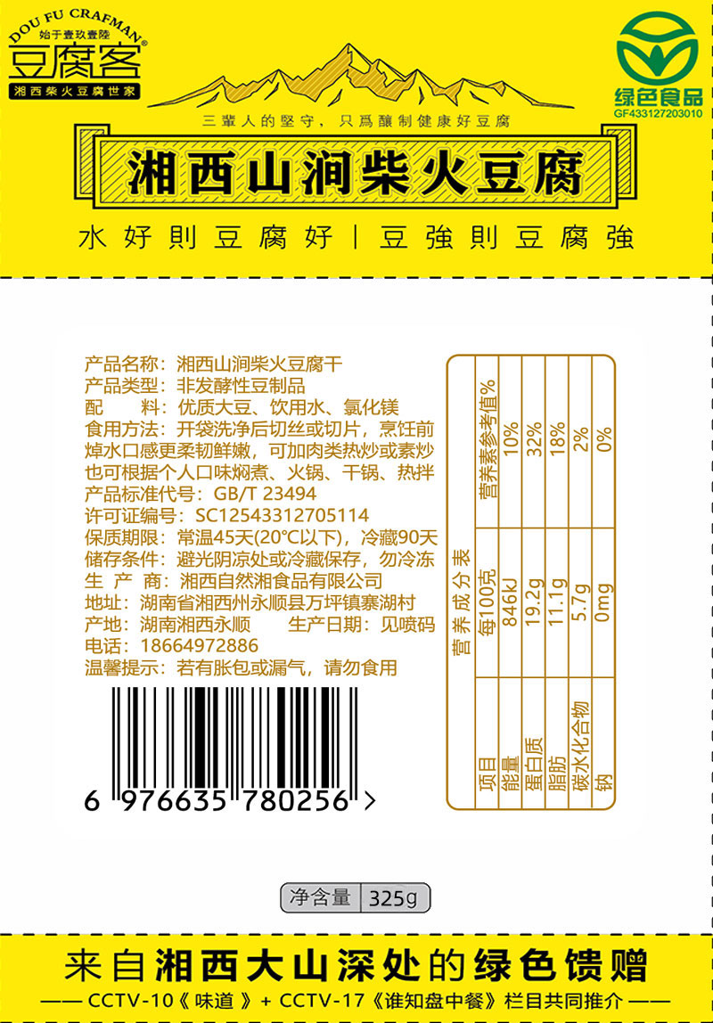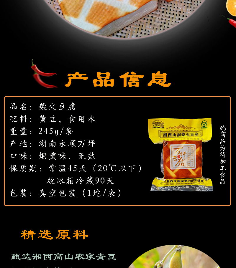 【湘西山涧 柴火豆腐】传统烟熏法,外皮韧性十足,内部Q弹细腻,配料干净0添加