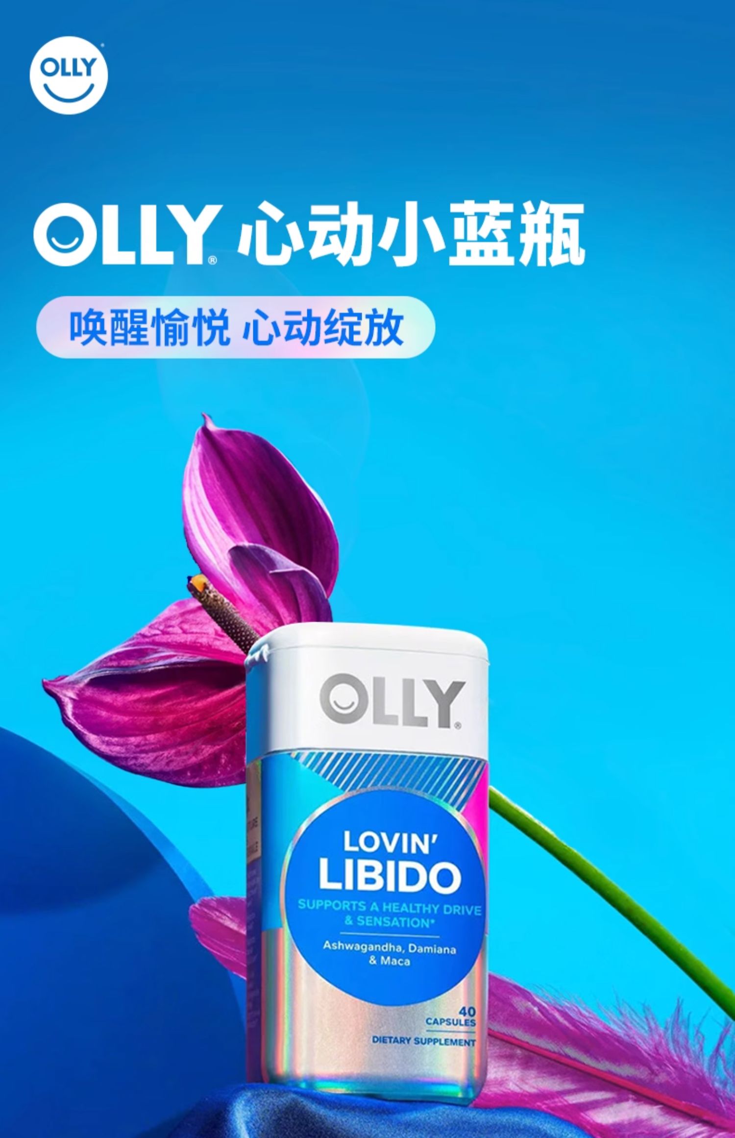 OLLY心动小蓝瓶40粒/瓶(效期26-8)