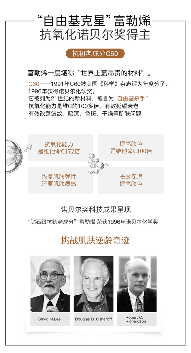 【产品成分】富勒烯,海茴香,仿生抗炎肽,极致去皱肽