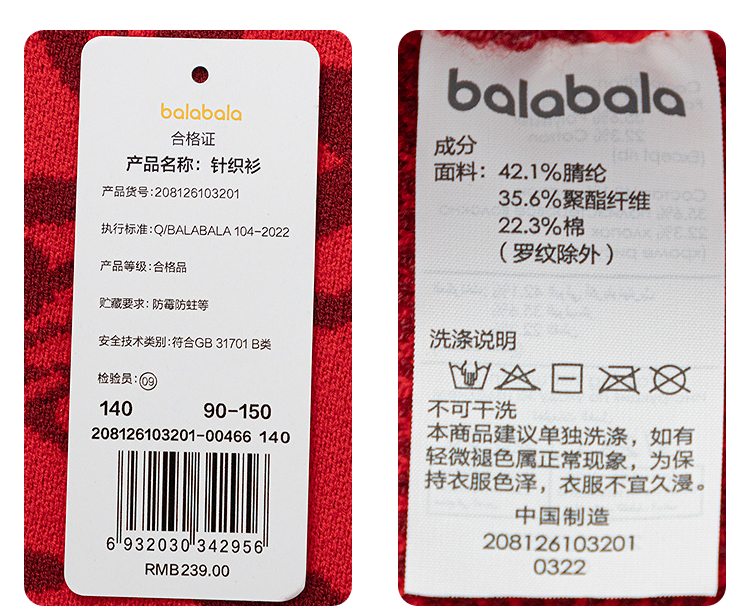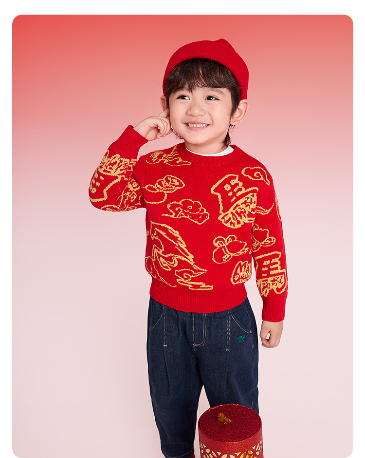 【balaOne】巴拉巴拉童装儿童毛衫男女童2025新款春秋提花针织衫