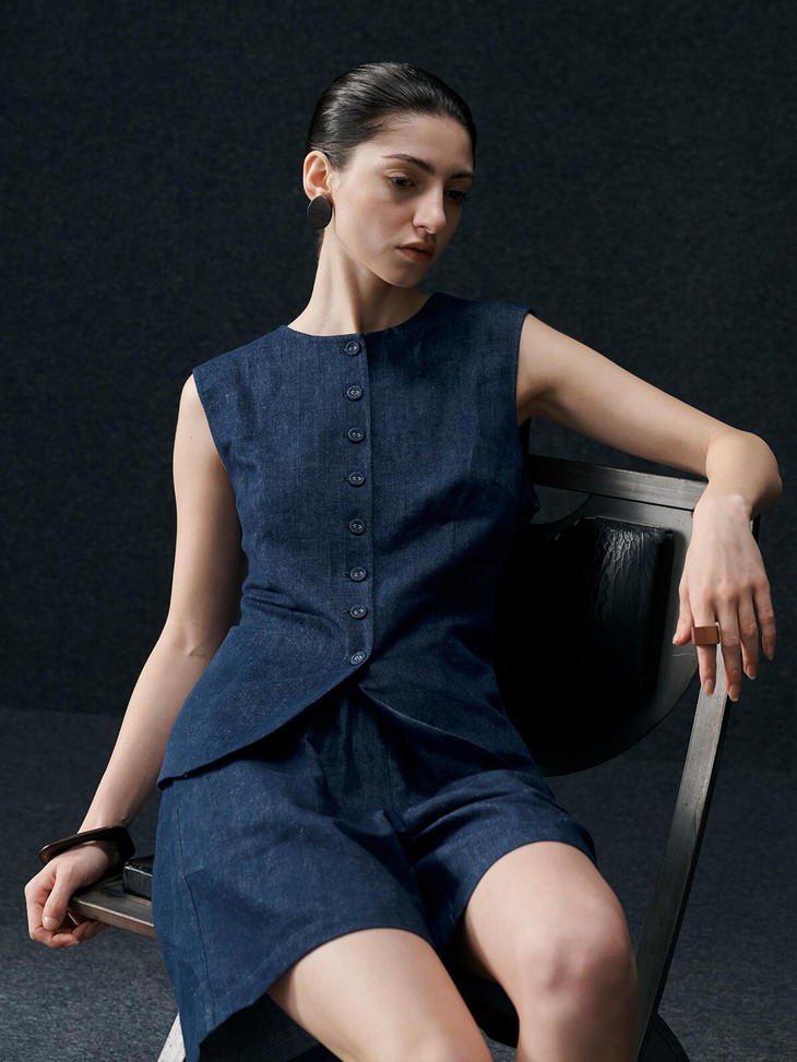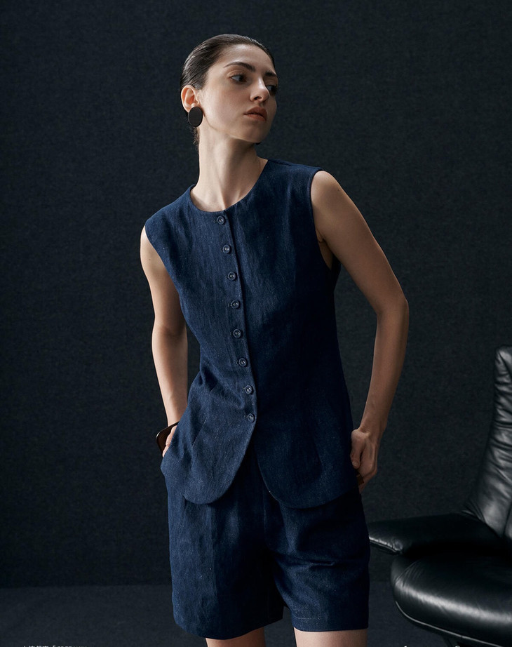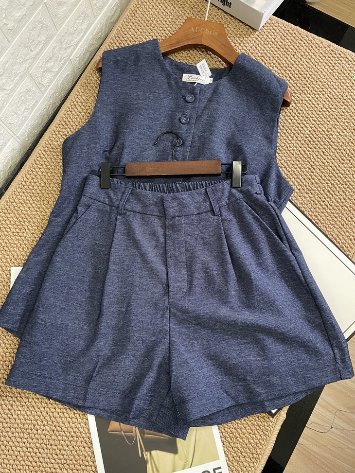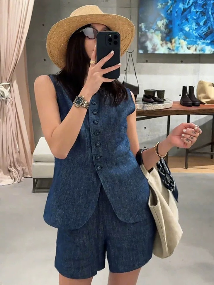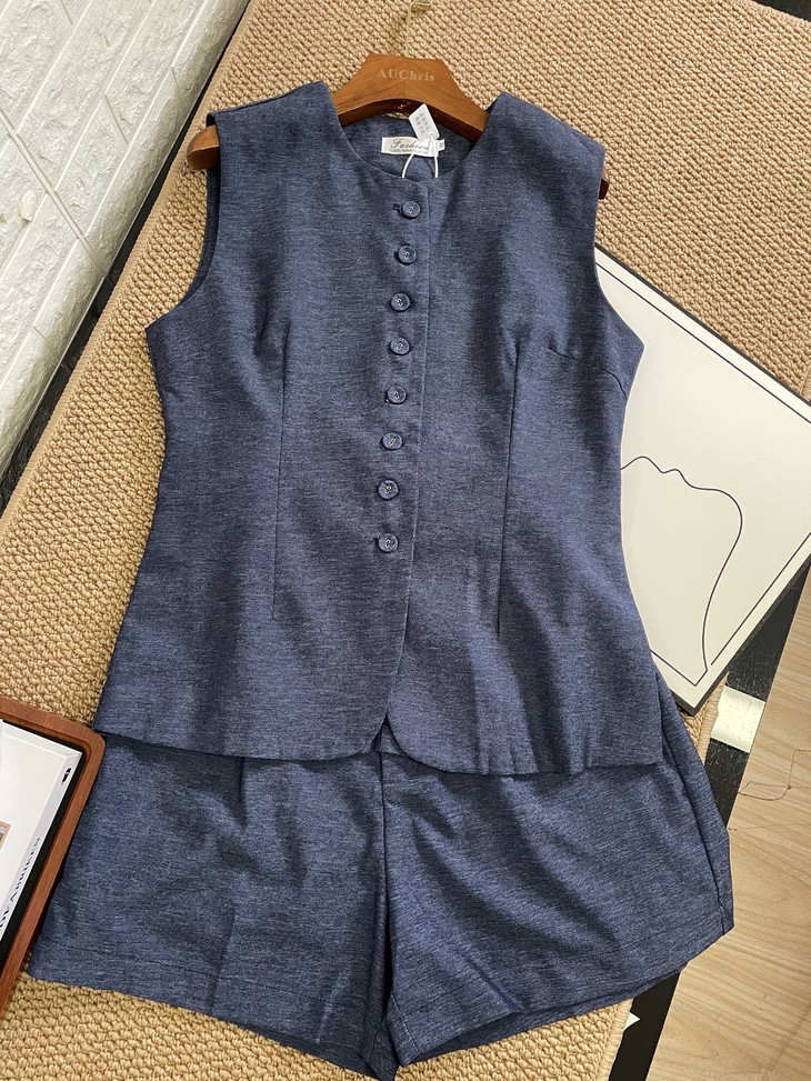 🎉今年夏天爱穿的🤩【老钱风马甲开衫短裤天丝套装】❗️天丝麻的肌理感自带高级滤镜❗️30℃🔥高温穿也完全不会闷汗黏腻❗️ 🔺藏蓝色高级耐看👏🏻