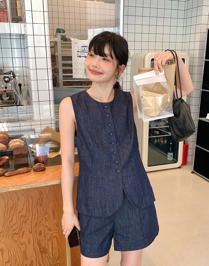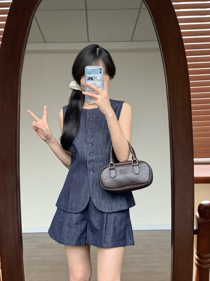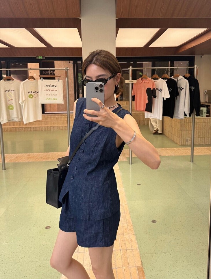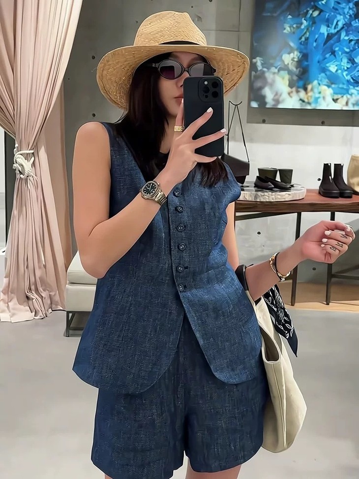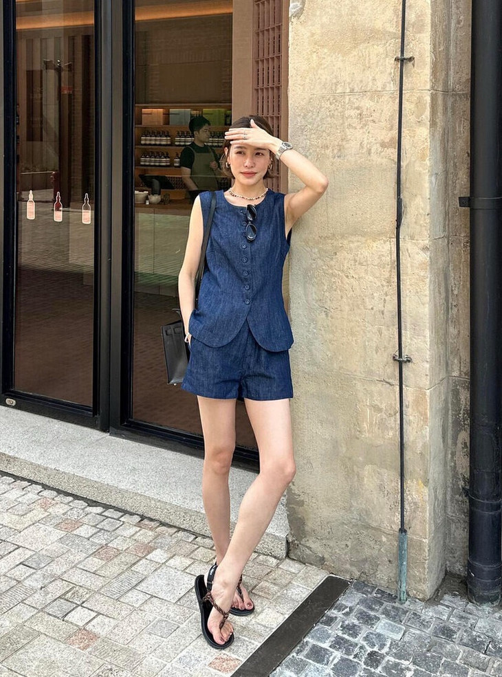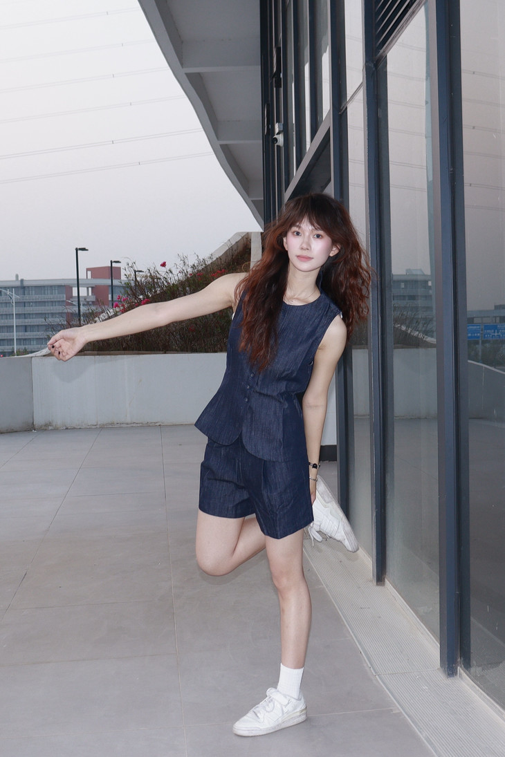 天丝牛仔马甲搭配直筒短裤 简约又高级,穿脱超方便❗️ 🧊面料是那种软软糯糯的天丝牛仔 贴身穿也毫无压力,敏感肌友好 夏天容易出汗的宝子完全不用担心 💨透气性很好,不会闷汗黏腻,时刻保持清爽 整套搭配下来,高级感满满~ 无论日常出街、上班通勤还是周末约会都很合适 搭配小白鞋和简约的配饰,时髦感拉满
