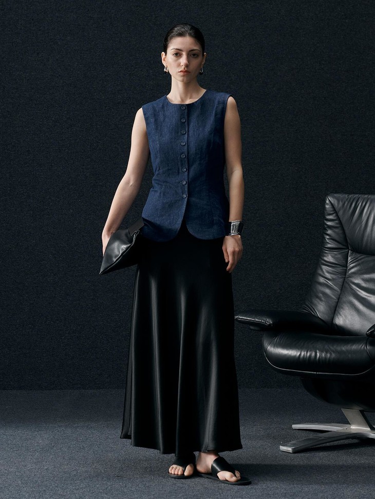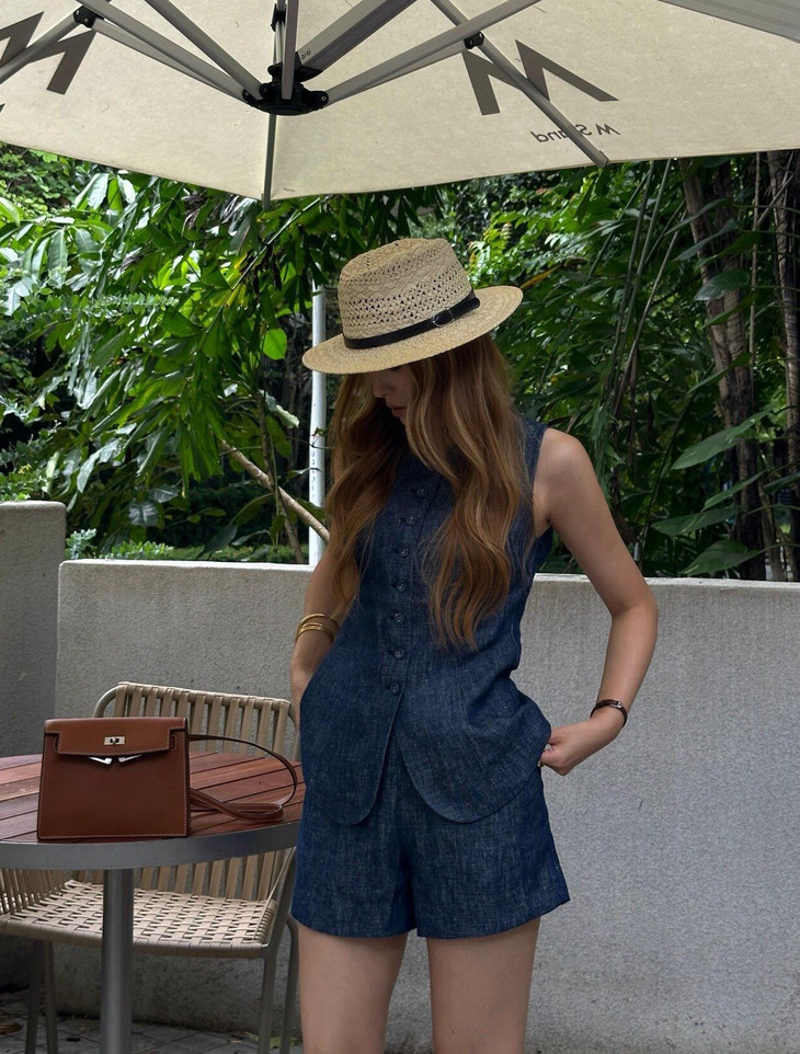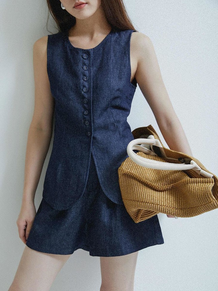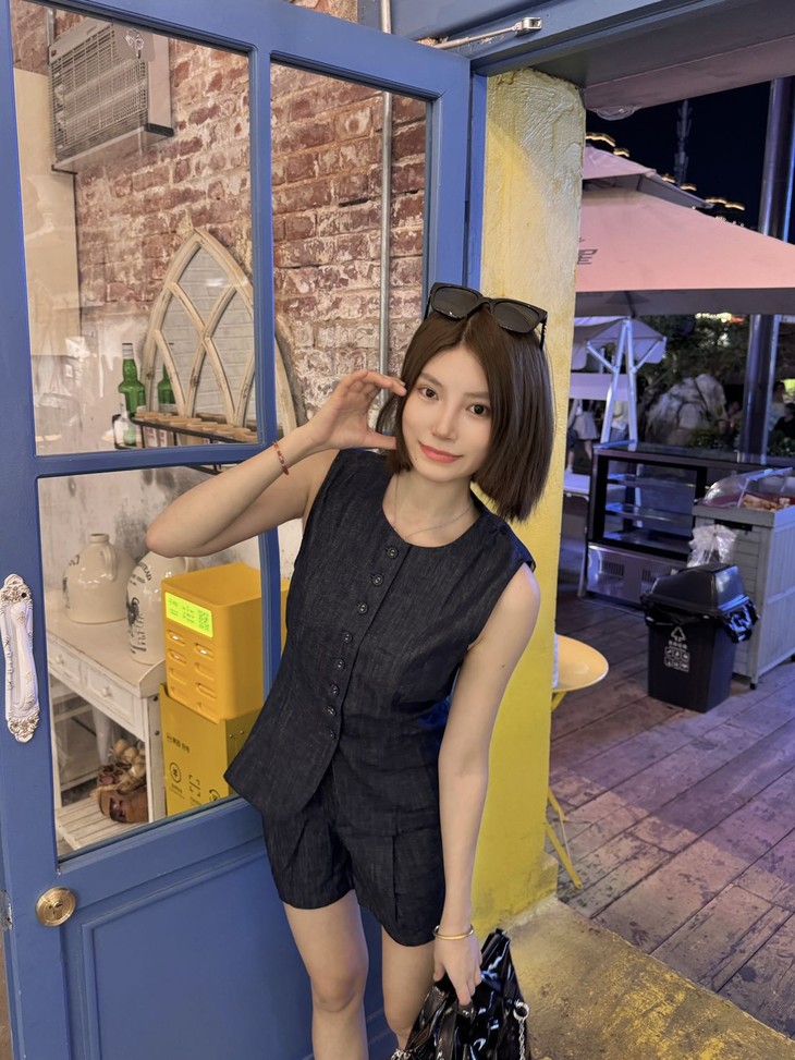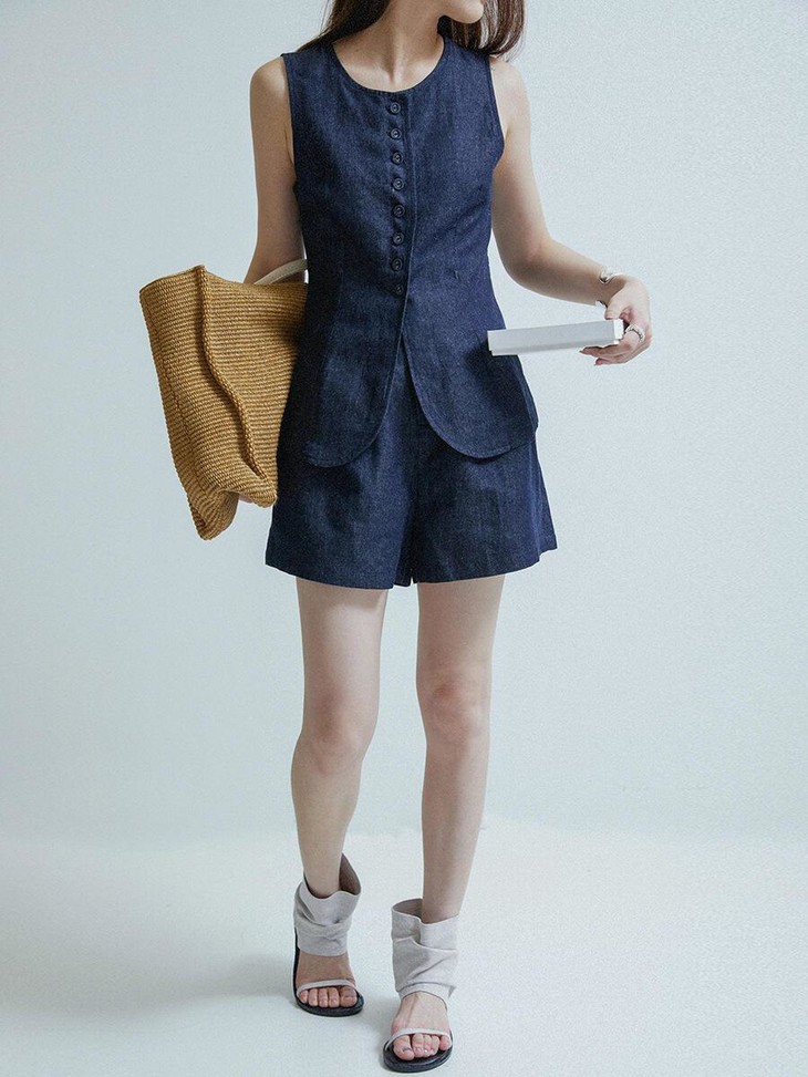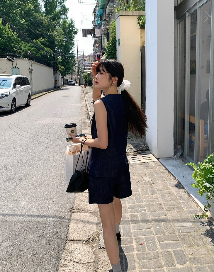 天丝牛仔马甲搭配直筒短裤 简约又高级,穿脱超方便❗️ 🧊面料是那种软软糯糯的天丝牛仔 贴身穿也毫无压力,敏感肌友好 夏天容易出汗的宝子完全不用担心 💨透气性很好,不会闷汗黏腻,时刻保持清爽 整套搭配下来,高级感满满~ 无论日常出街、上班通勤还是周末约会都很合适 搭配小白鞋和简约的配饰,时髦感拉满