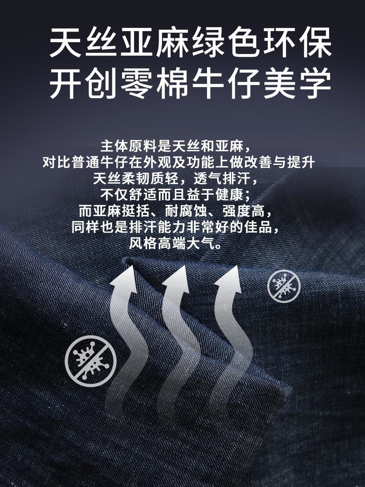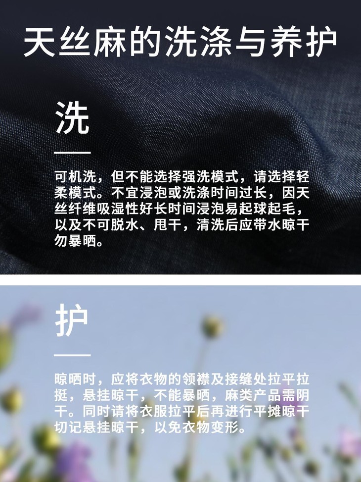 ✨ |莱赛尔天丝×亚麻×棉这对CP锁死好吗‼️ (三者的黄金配比比例=会呼吸的套装🌬️) 👉🏻触感像第二层肌肤 👉🏻垂坠飘逸但不易皱 懒人狂喜 👉🏻吸湿速干比纯棉强3倍 闷汗体质救星 👉🏻无弹却柔软到能小跑 春夏通勤穿它=行走的空调🌬️ ⚠️ | 划重点 | ✅天丝混纺比纯牛仔轻30% 春夏穿无负担 ✅机洗不变形!但建议反面洗涤护色 ❌追求强弹力的姐妹慎选 适合喜欢自然包裹感的宝