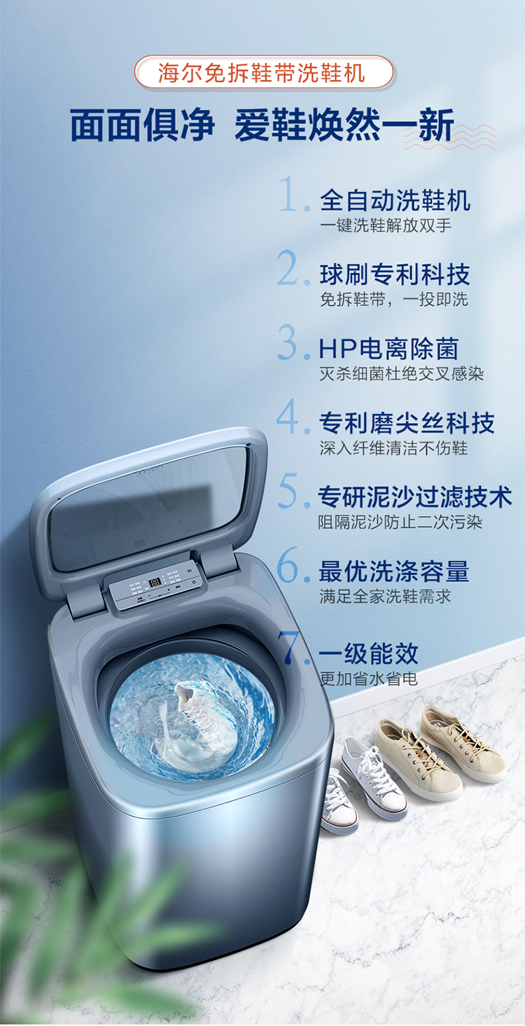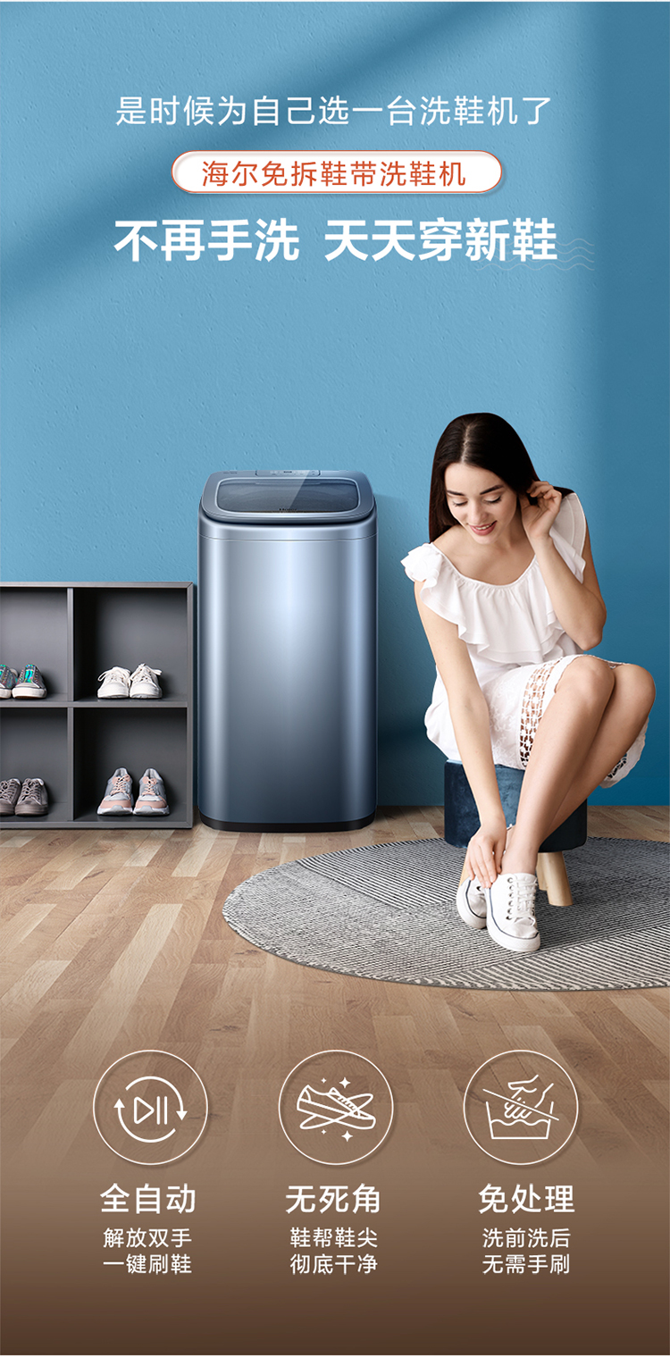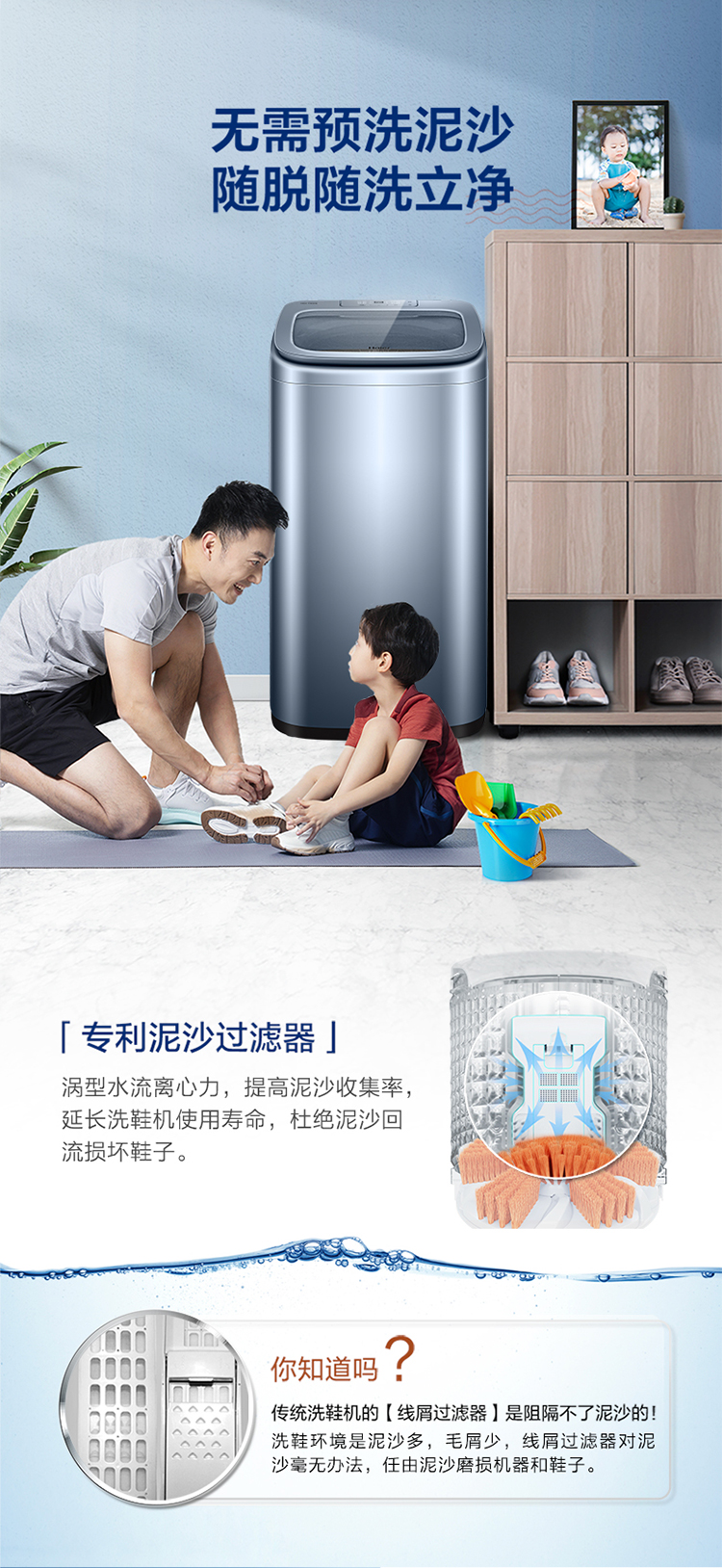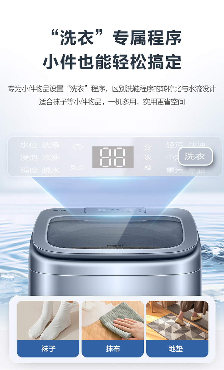 海尔全自动洗鞋机洗脱一体刷鞋机洗地垫毯子除菌TB378松霜蓝