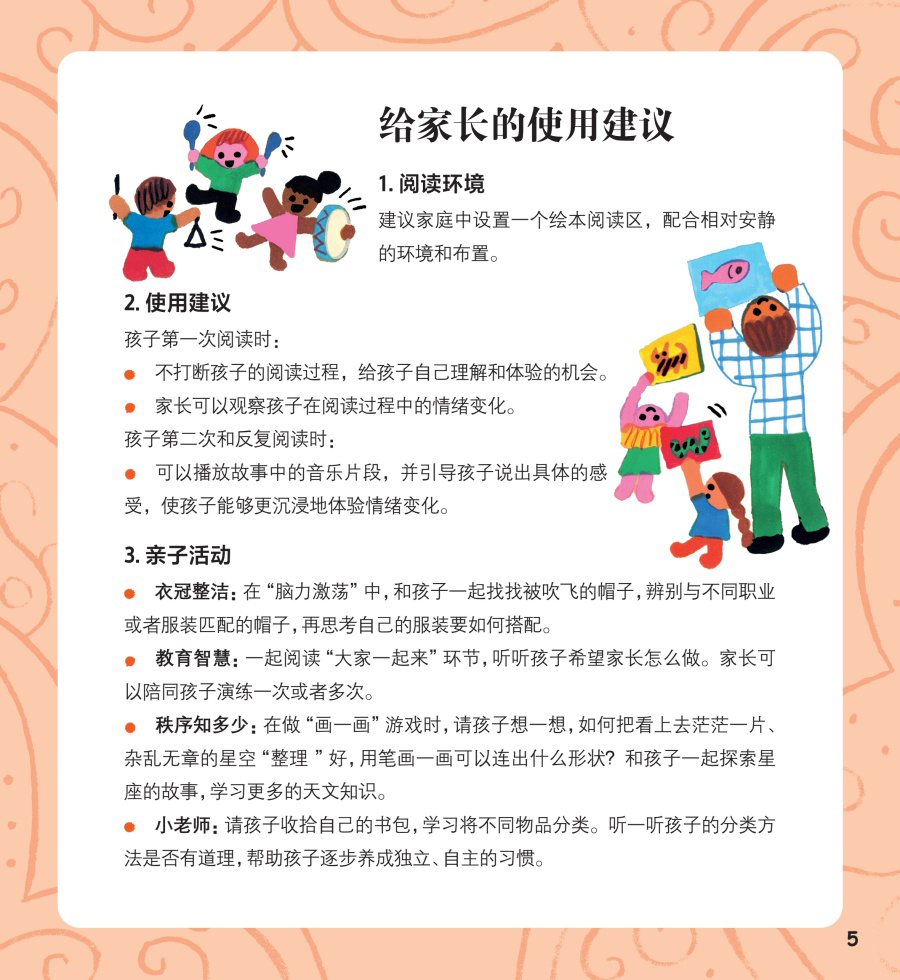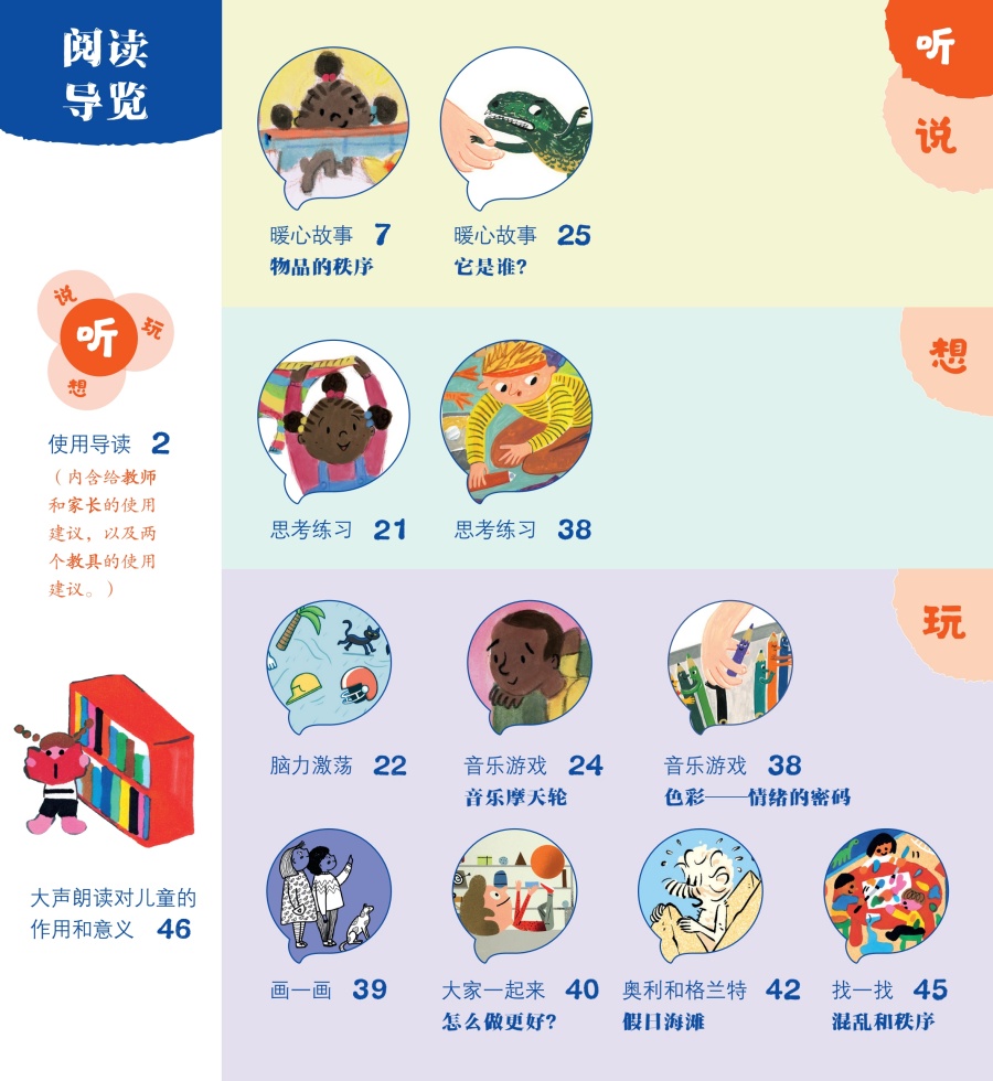 《给孩子的心灵美育绘本 混乱和秩序》通过讲述米卡在爸爸的帮助下重新找回毛衣,建立秩序系统的故事帮助孩子们理解什么是秩序,用思考练习帮助孩子们判断生活场景中的混乱和秩序,通过原创音乐、漫画、游戏以及画一画等版块,给出孩子建立秩序的方法,潜移默化地引导孩子系统地建立秩序,避免说教,符合孩子的阅读习惯。 每本由美育绘本故事、幽默漫画、思考练习、原创音乐、手工制作、互动游戏和家长导读等版块构成。并且配有情绪卡片及讲义,指导家长,帮助孩子共同解决不良情绪的心理问题。