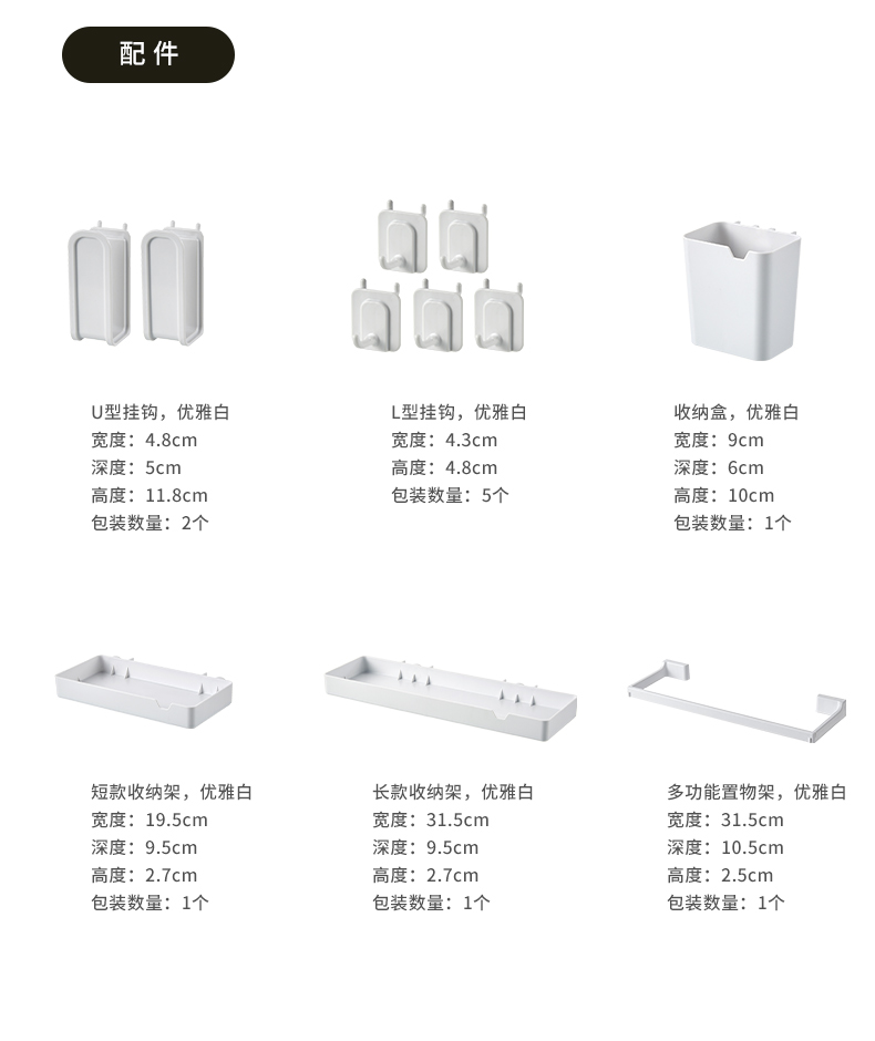 组合装3【正方形板*2+长方形板*1+L型挂钩*5+收纳盒*2+短架*2+长架*1】