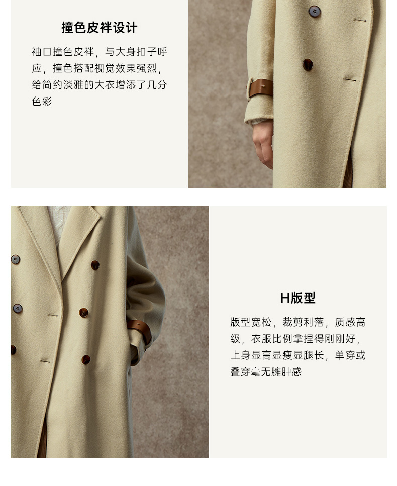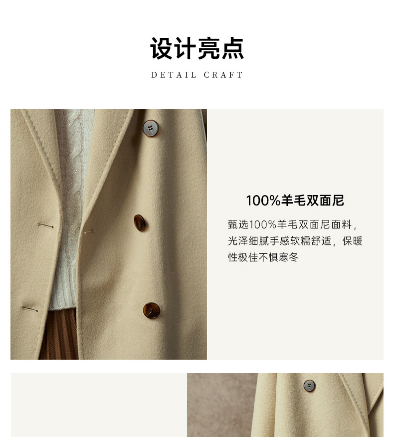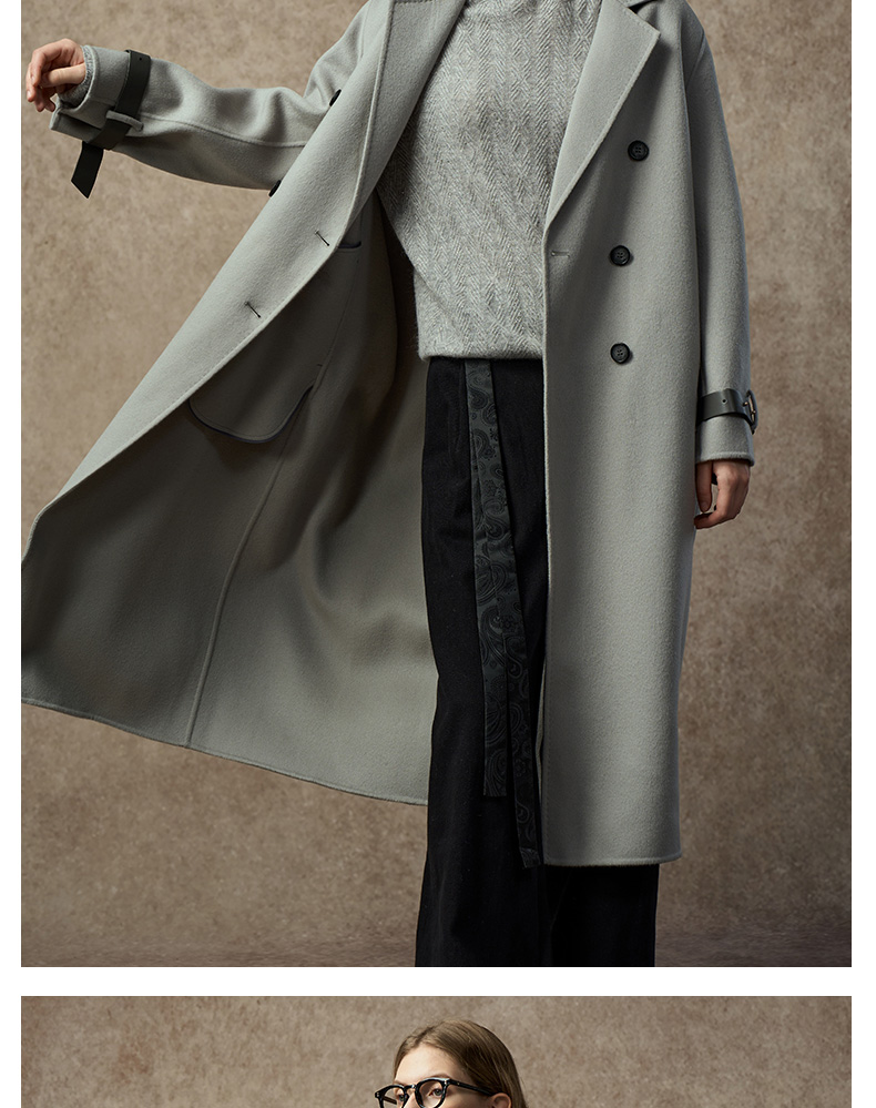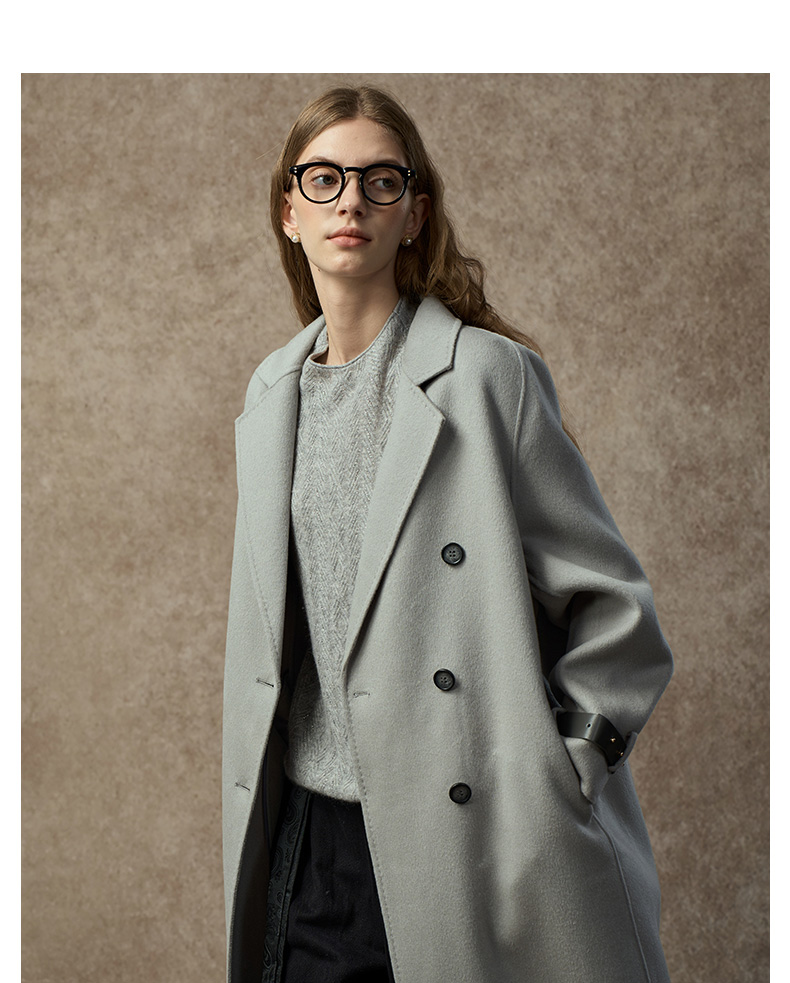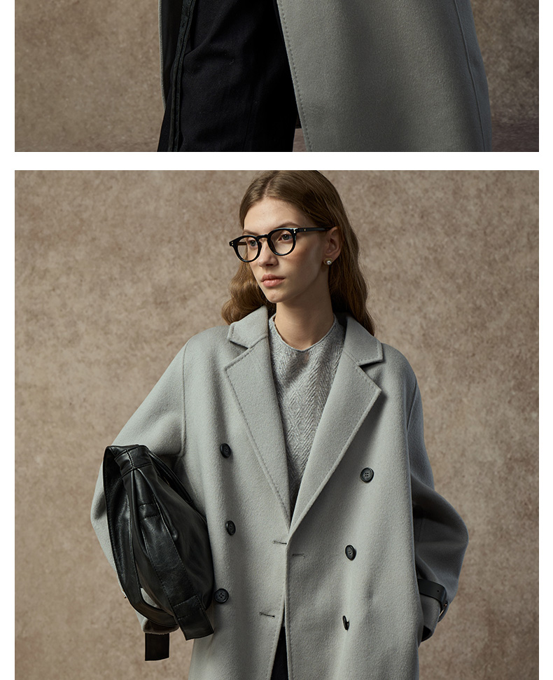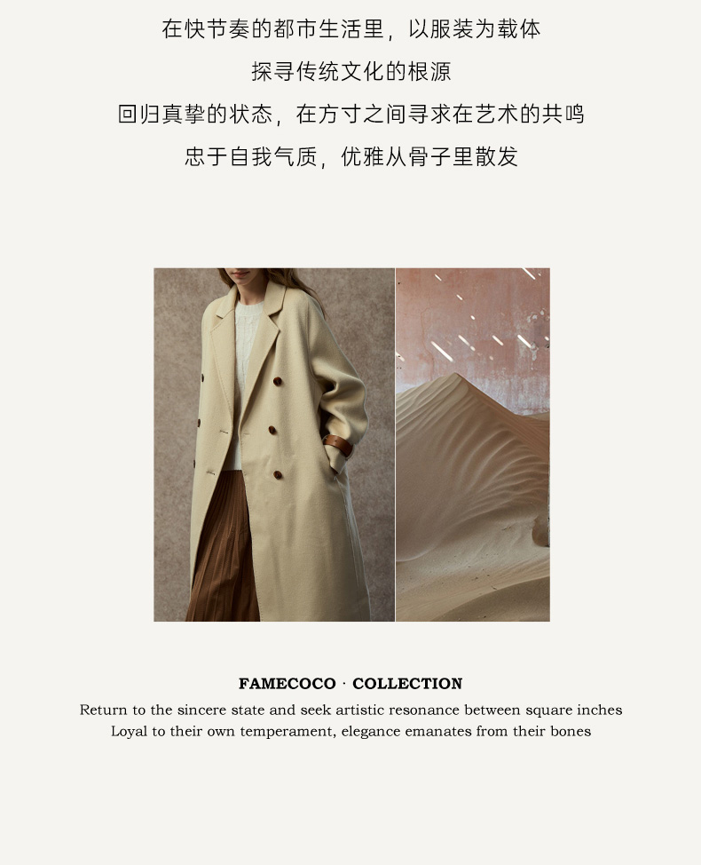 Famecoco范可儿直筒落肩双面呢大衣宽松显瘦100%羊毛FAC8AQ006