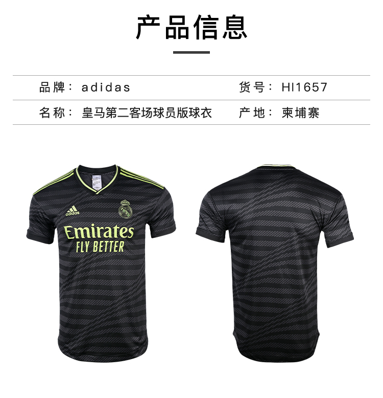 ADIDAS/阿迪达斯 REAL 3 JSY AU22-23赛季皇马第二客场球员版比赛球衣HI1657