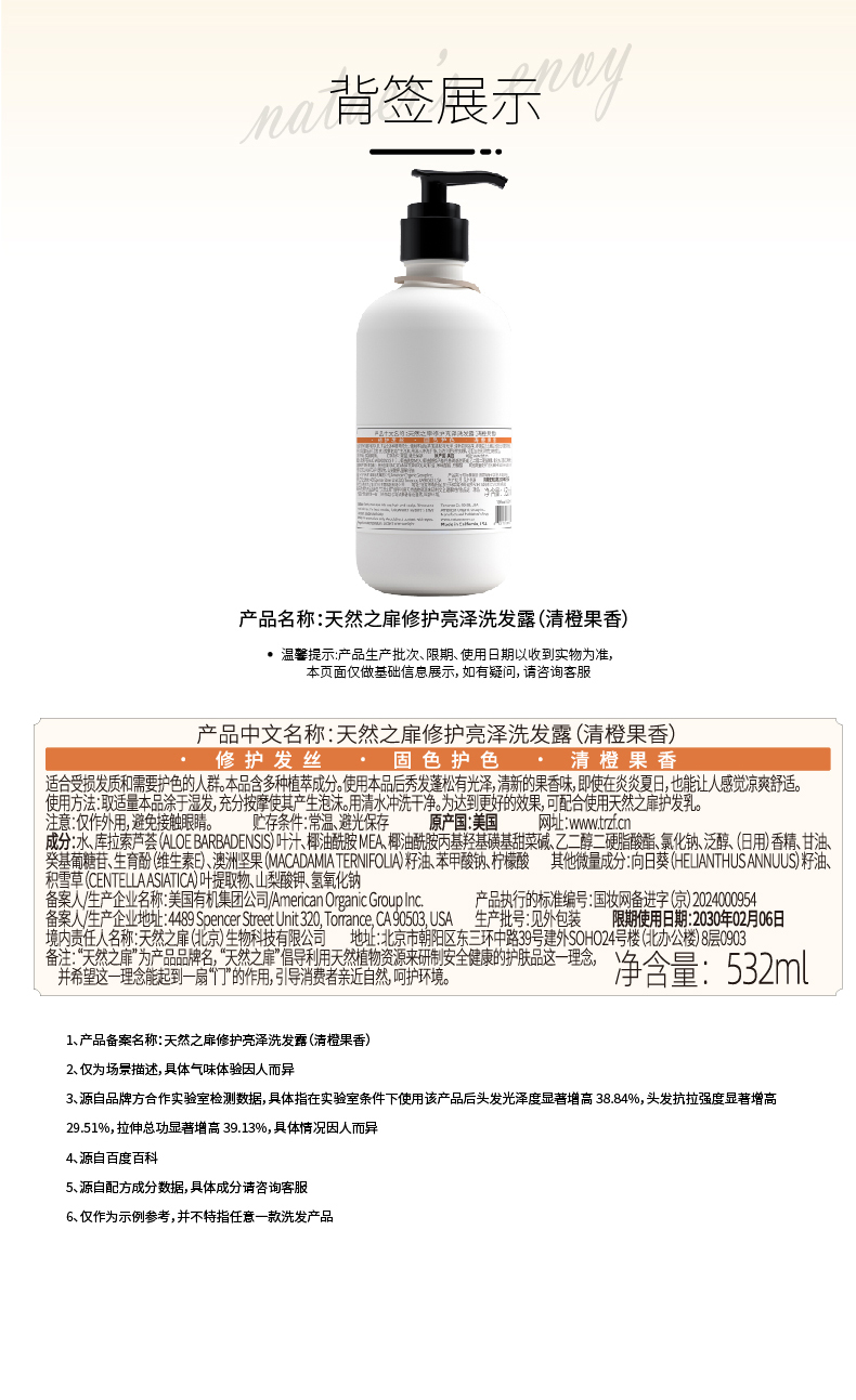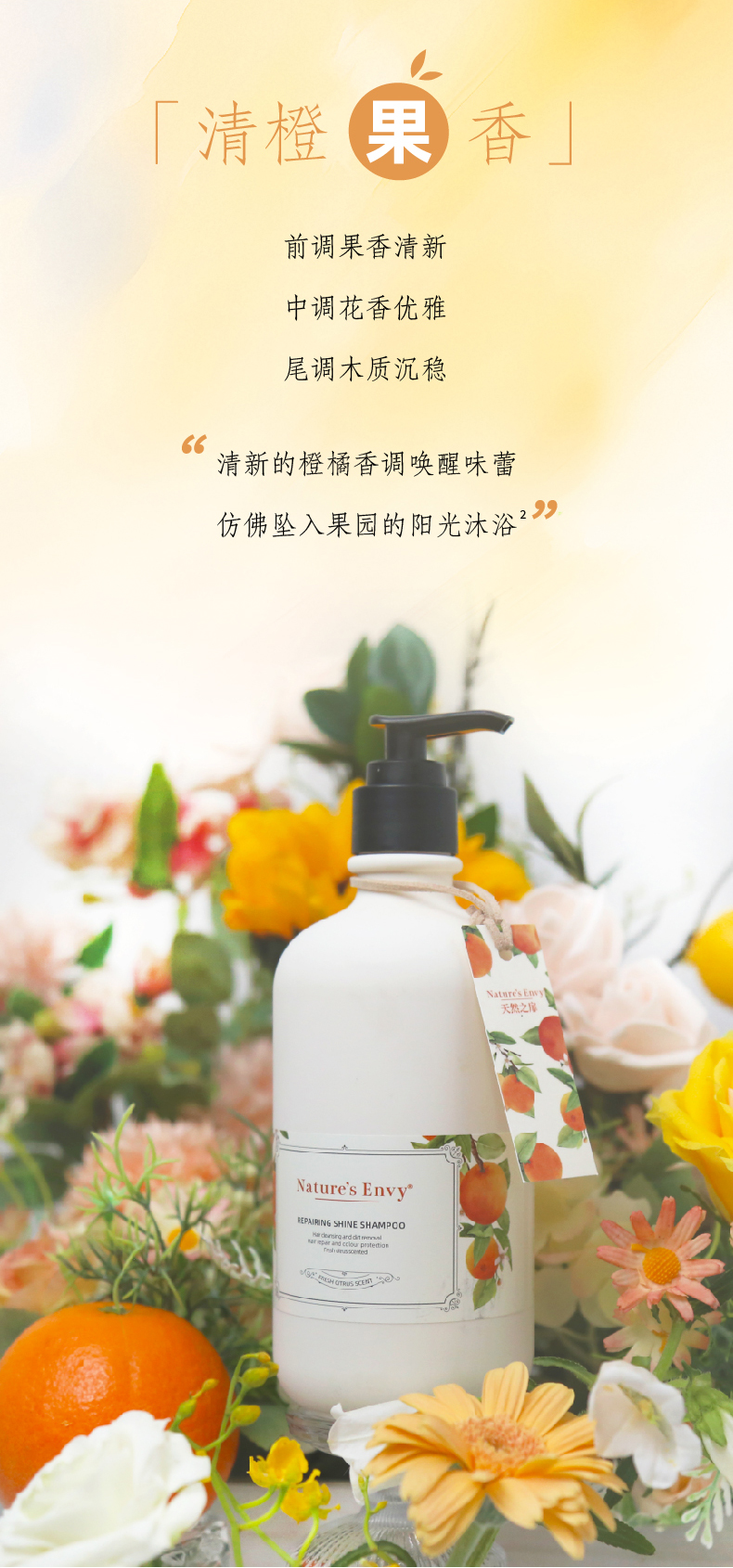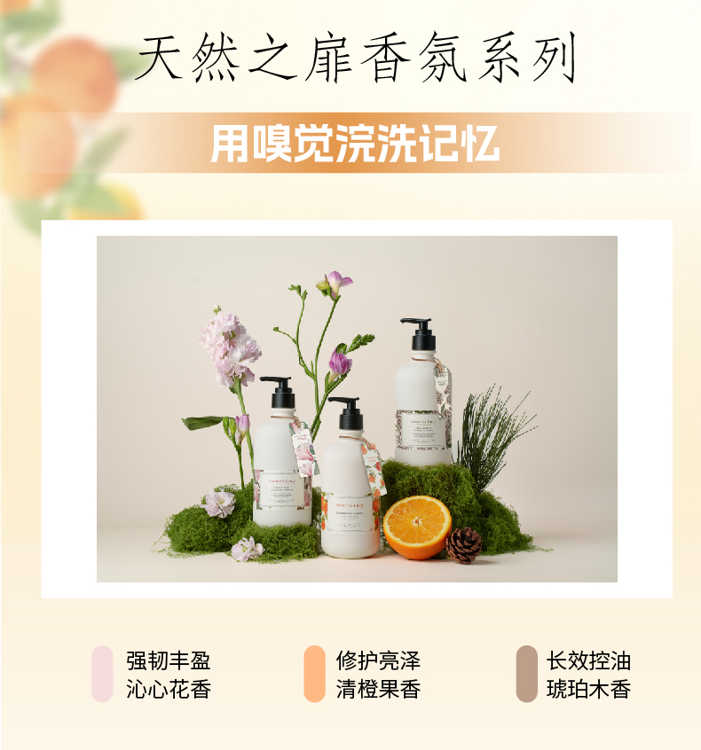 天然之扉植萃香氛洗发水修护橙果香发丝光泽强韧烫染受损洗发露