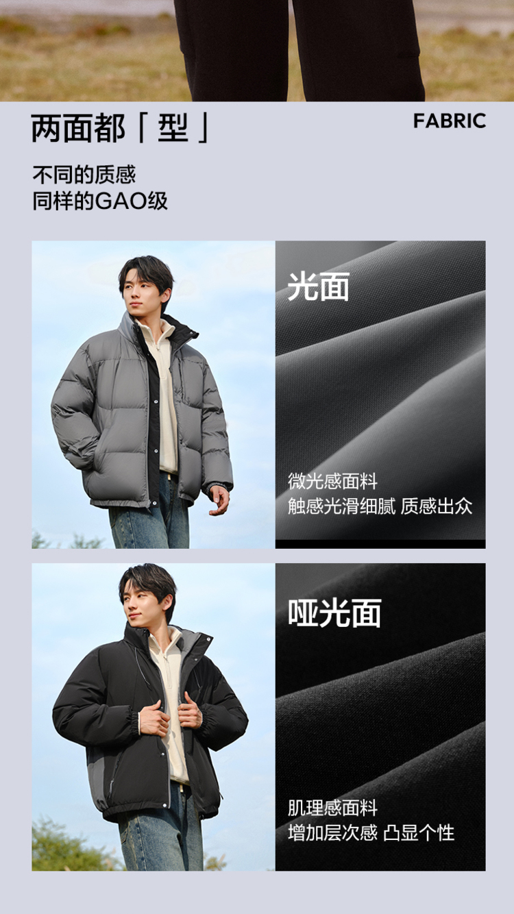森马羽绒服男冬季新款宽松双面穿外套短款保暖立领上衣百搭潮