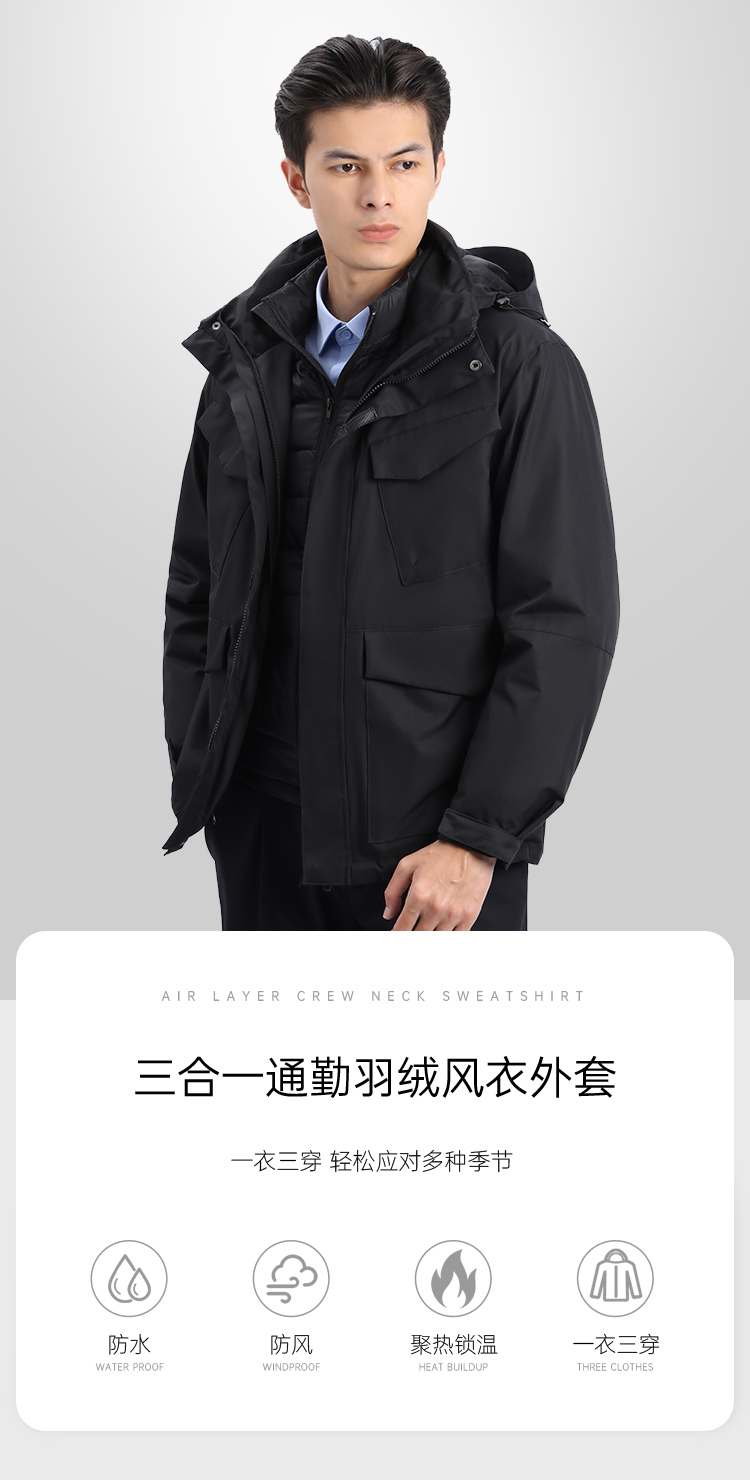 【三合一通勤羽绒风衣外套】加厚保暖羽绒服外套 春秋冬可穿羽绒风衣