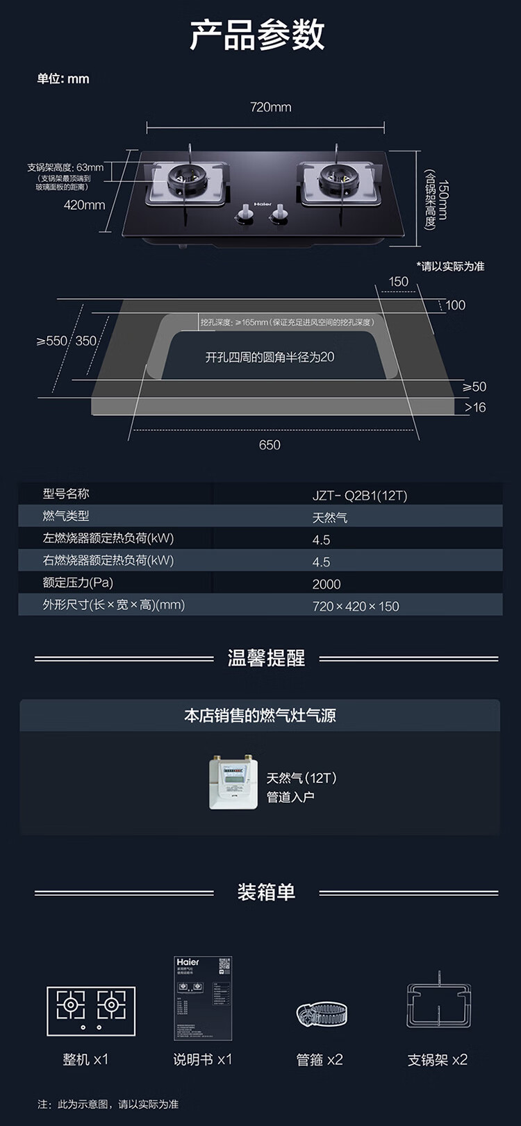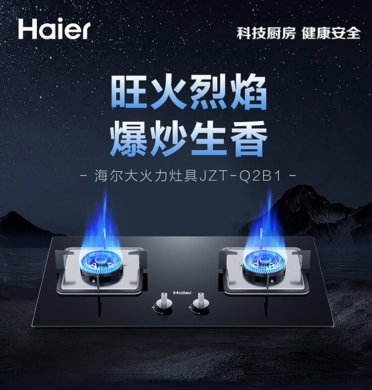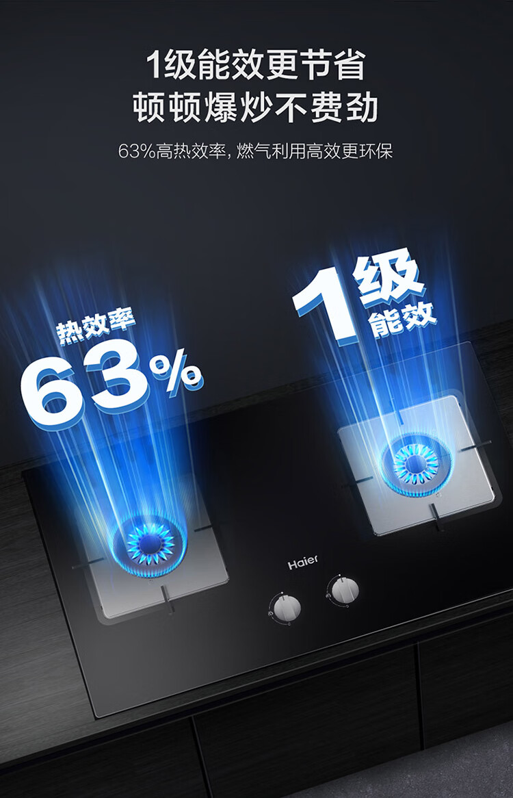 海尔(Haier)嵌入式 双眼灶 4.5KW大火力 一级能效 燃气灶具家用 台式灶 JZT-Q2B1(天然气)