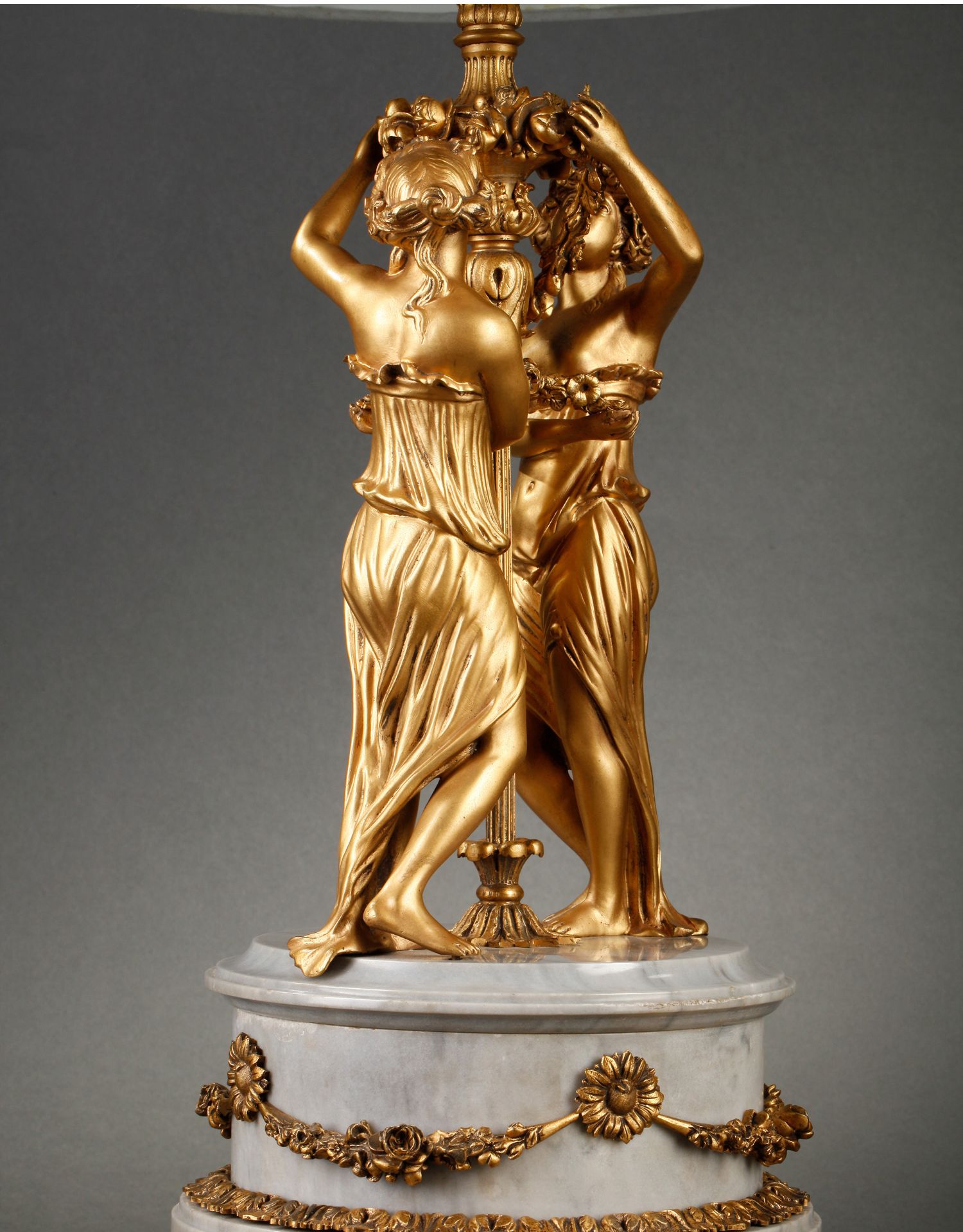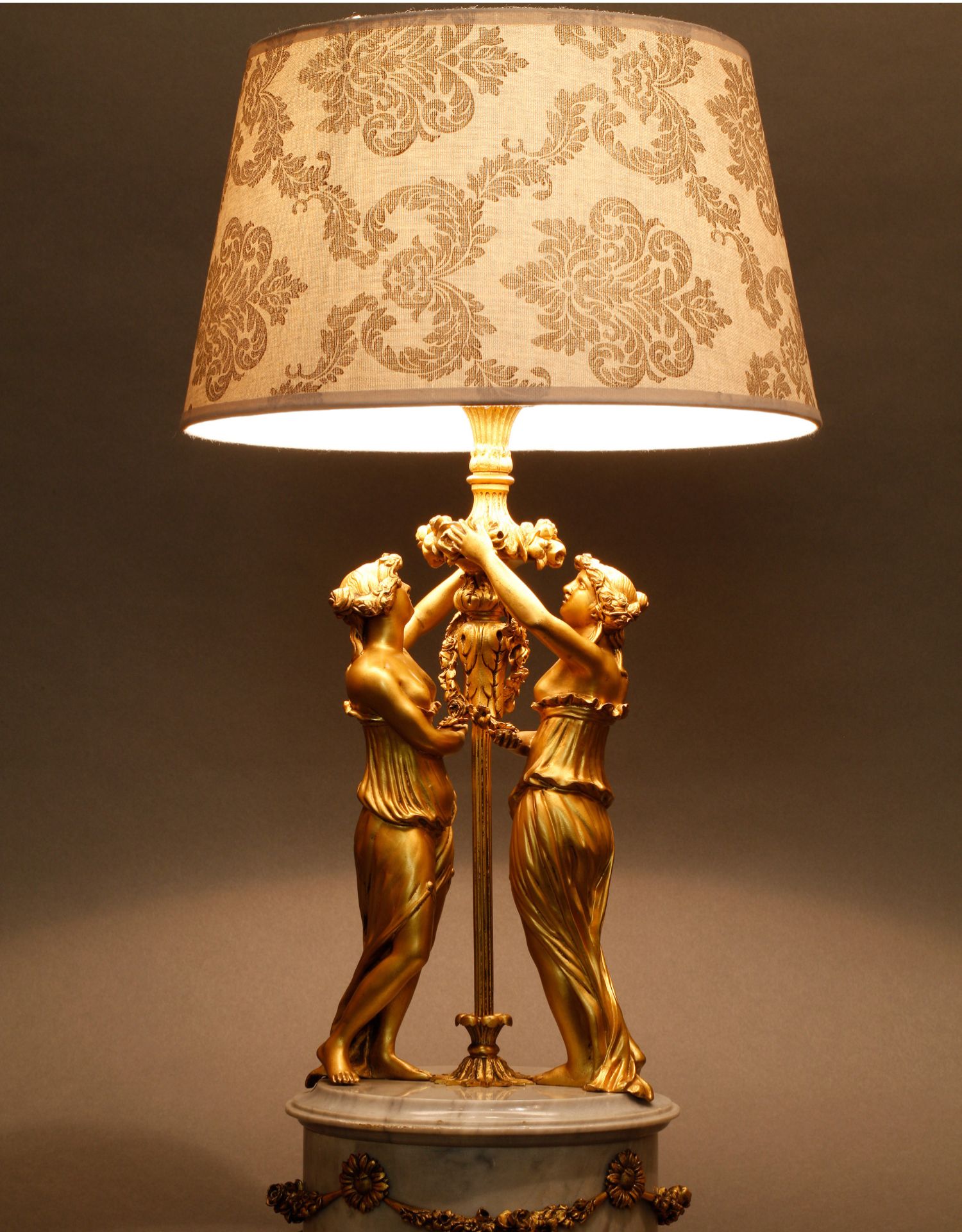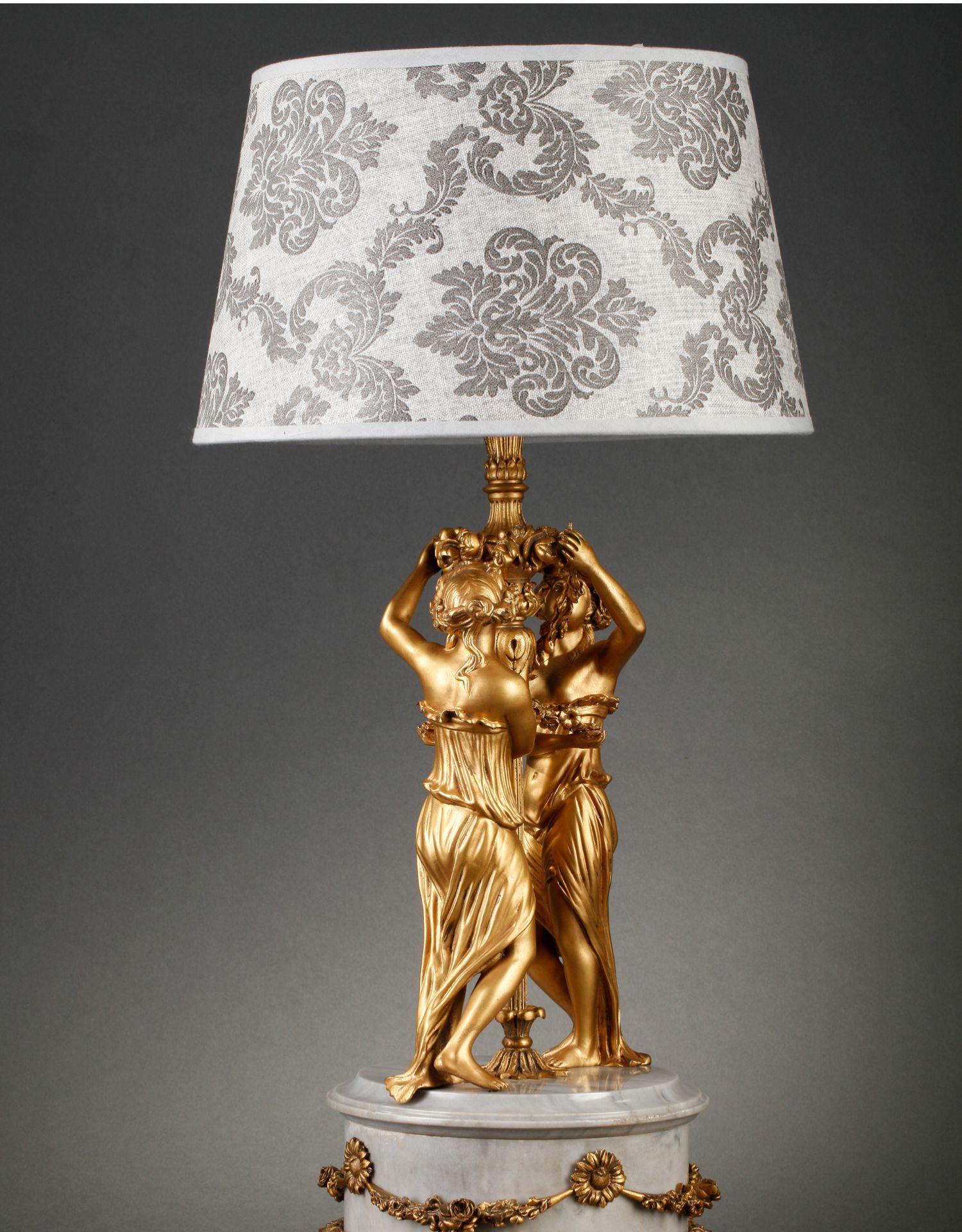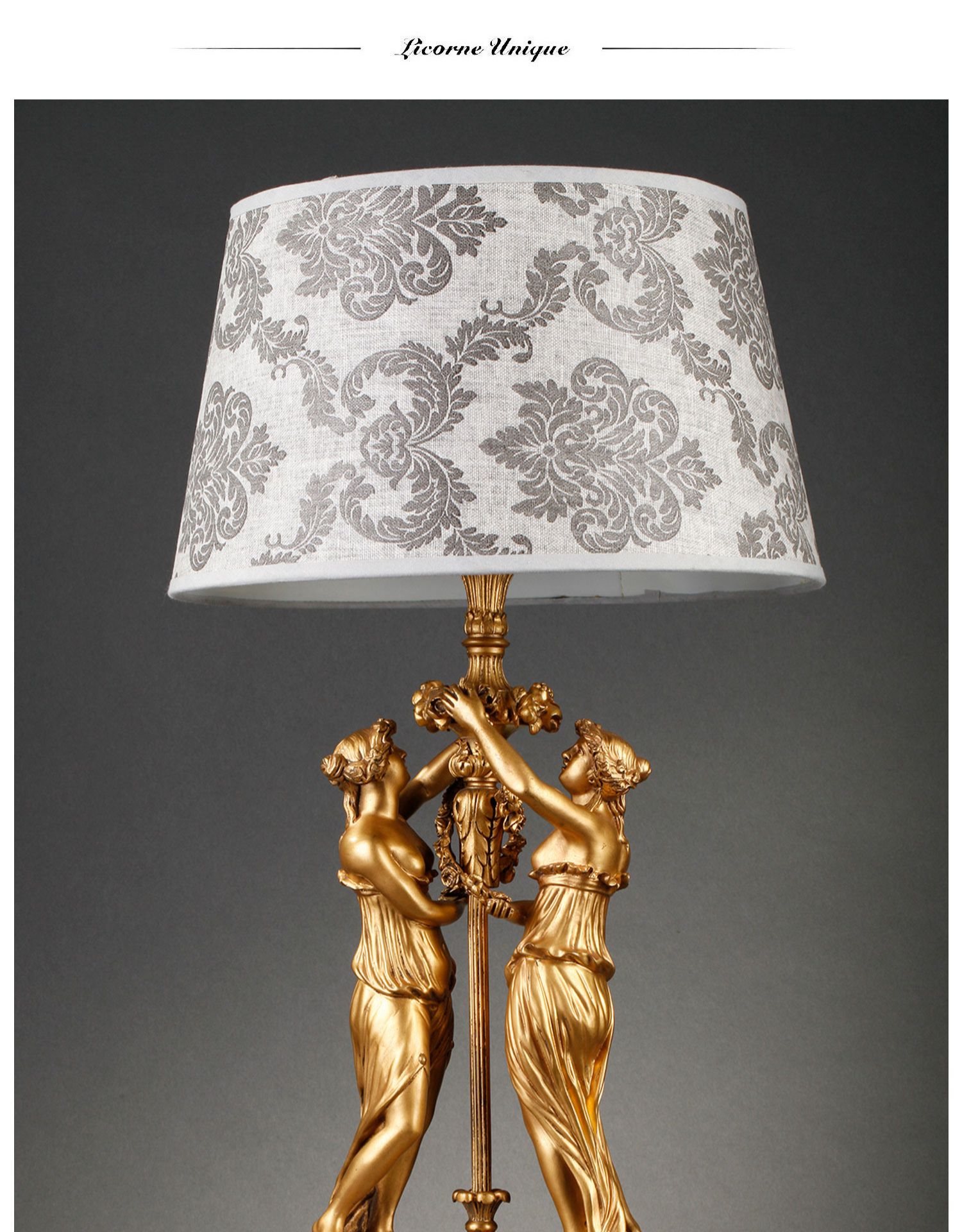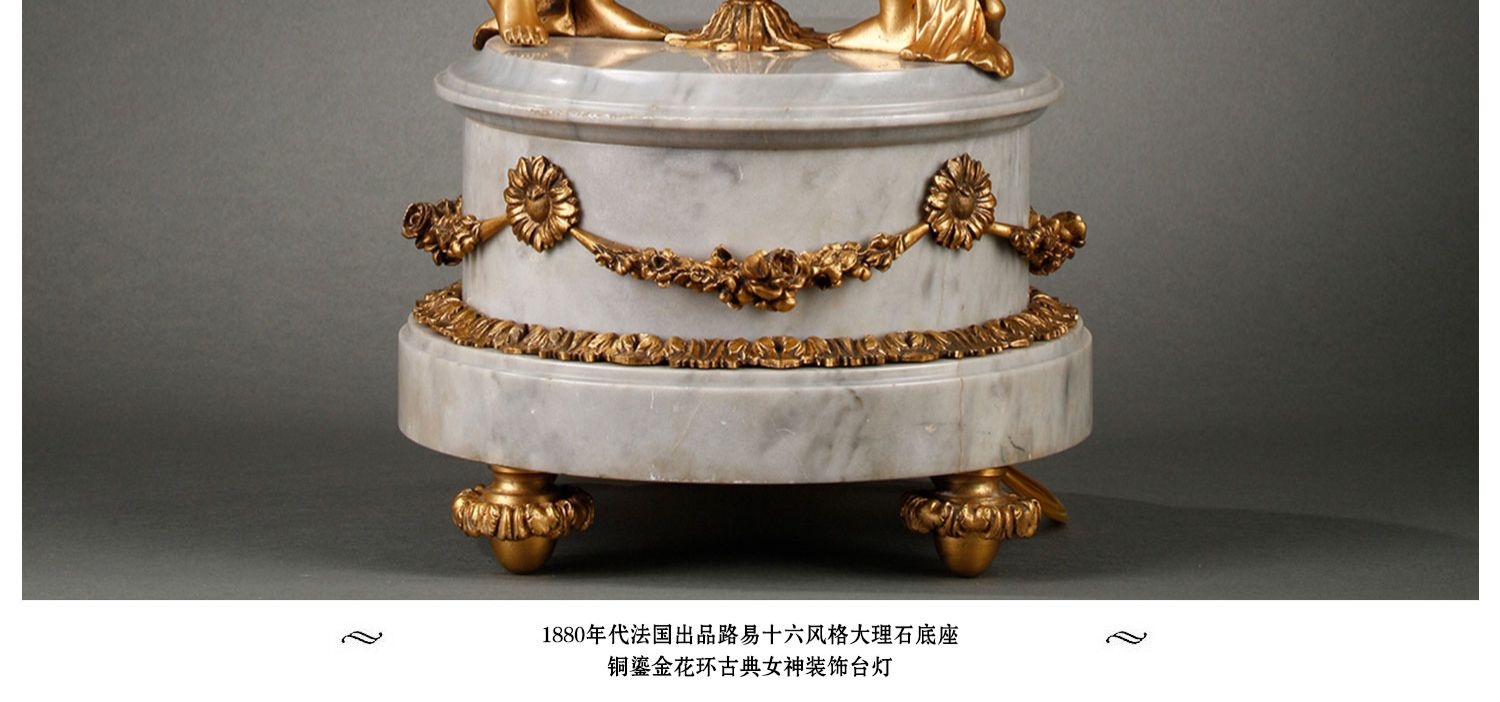 独角鹿西洋古董摆件法国大理石底座铜鎏金花环古典女神装饰台灯