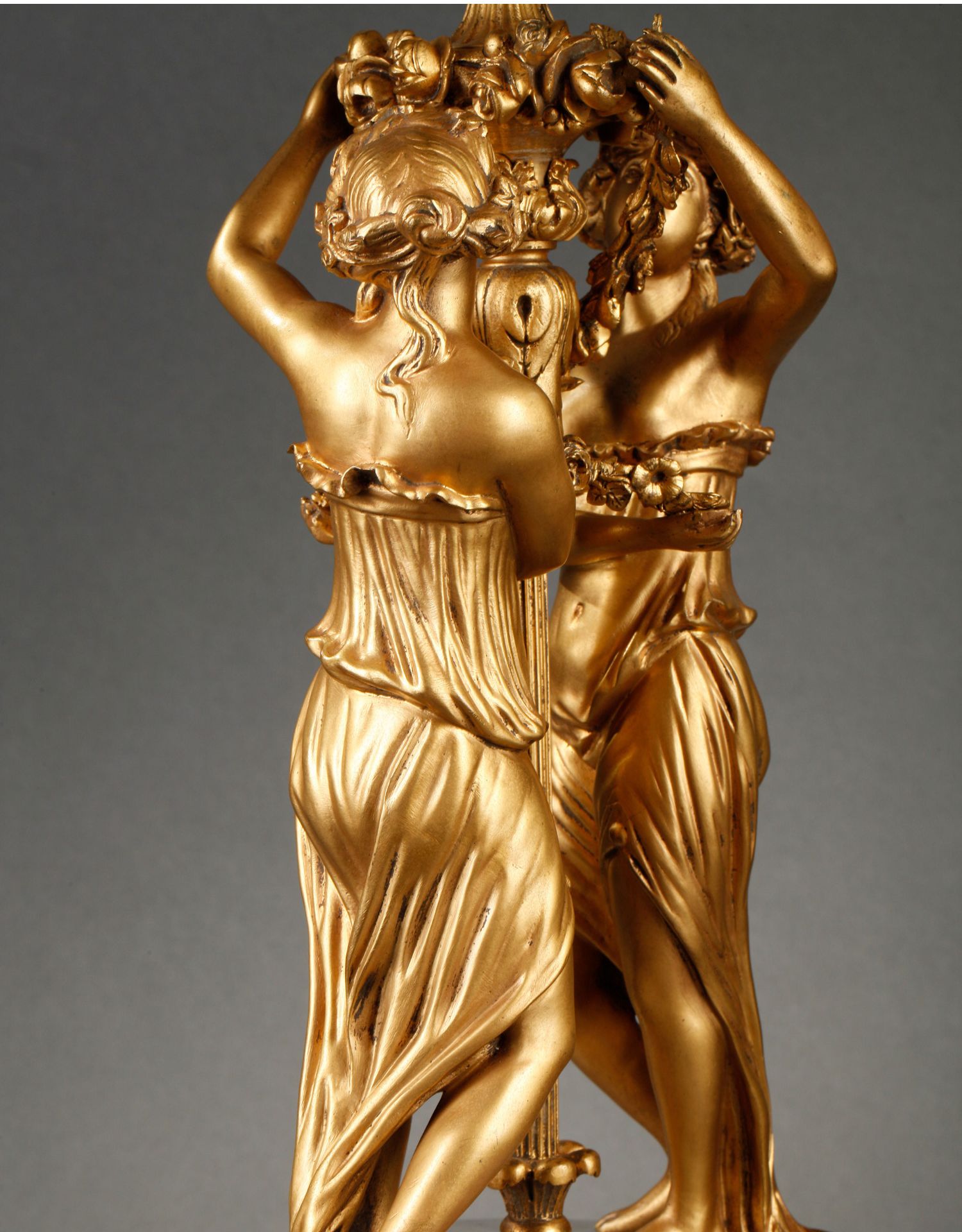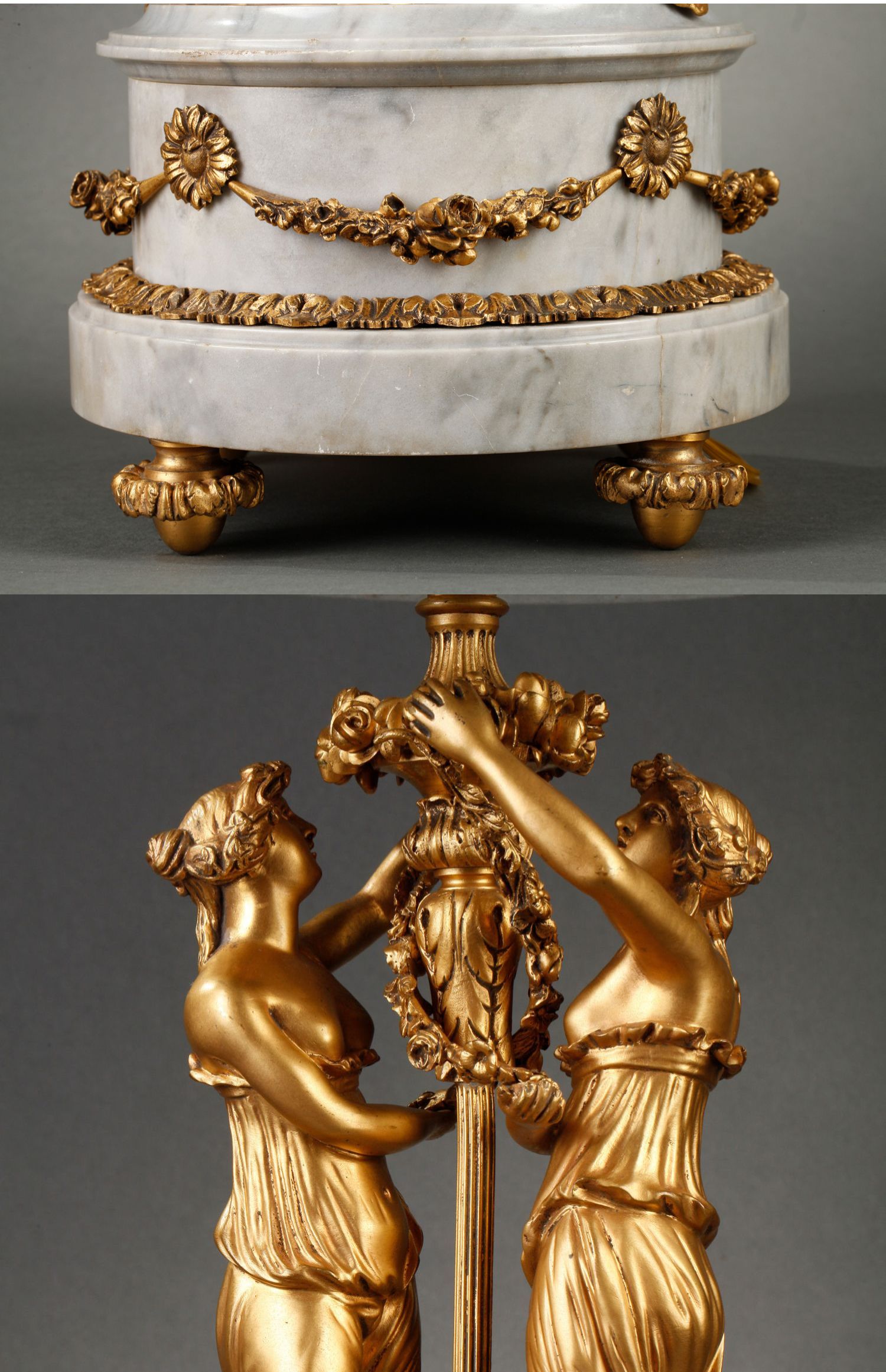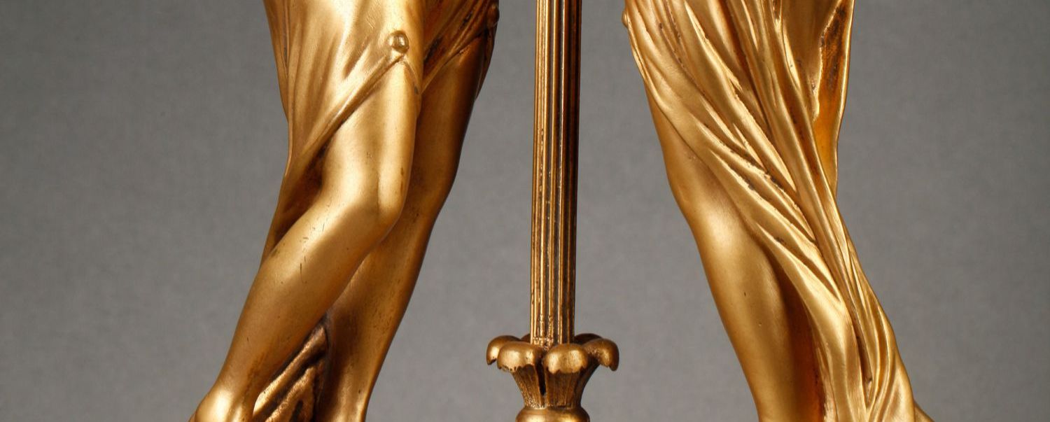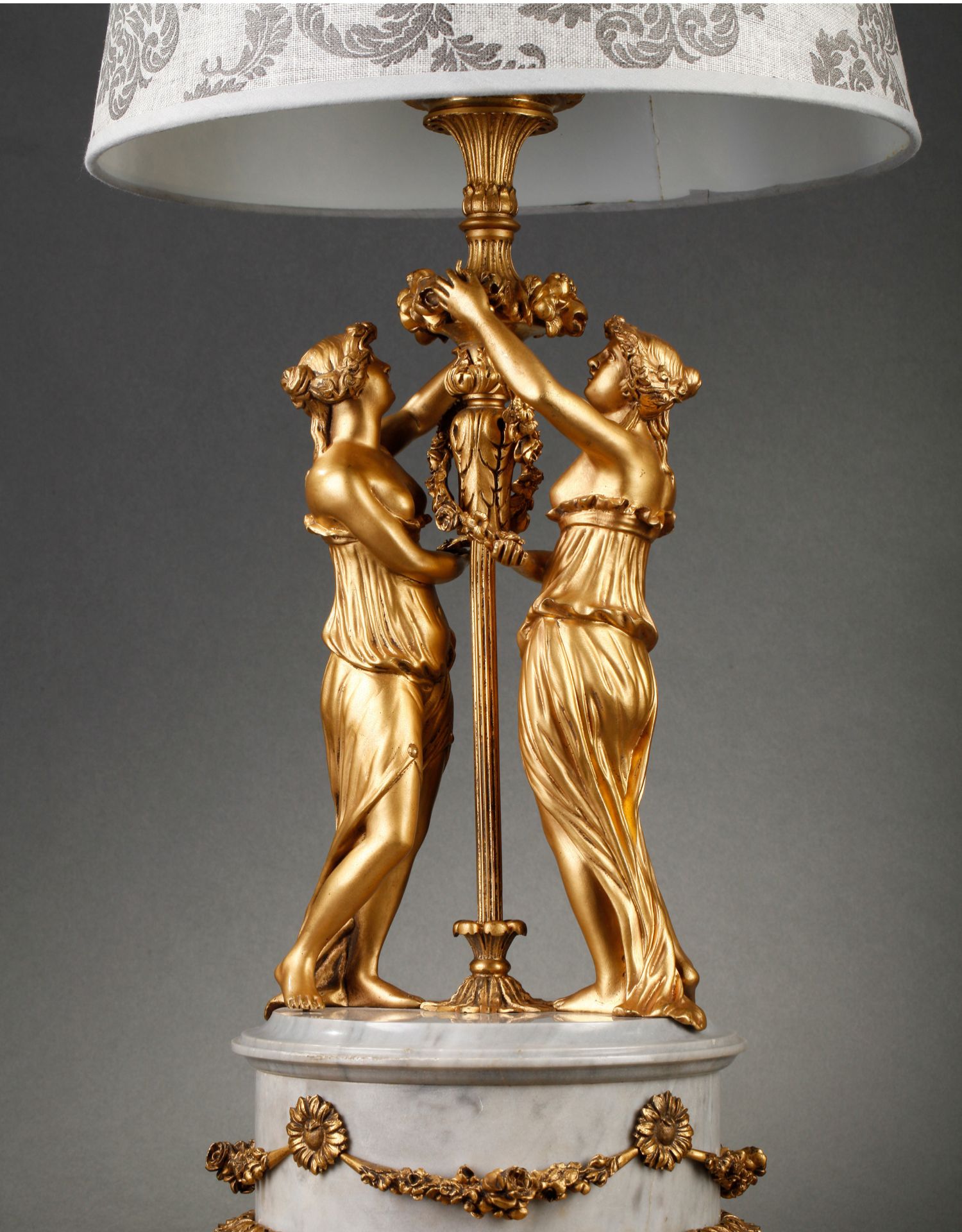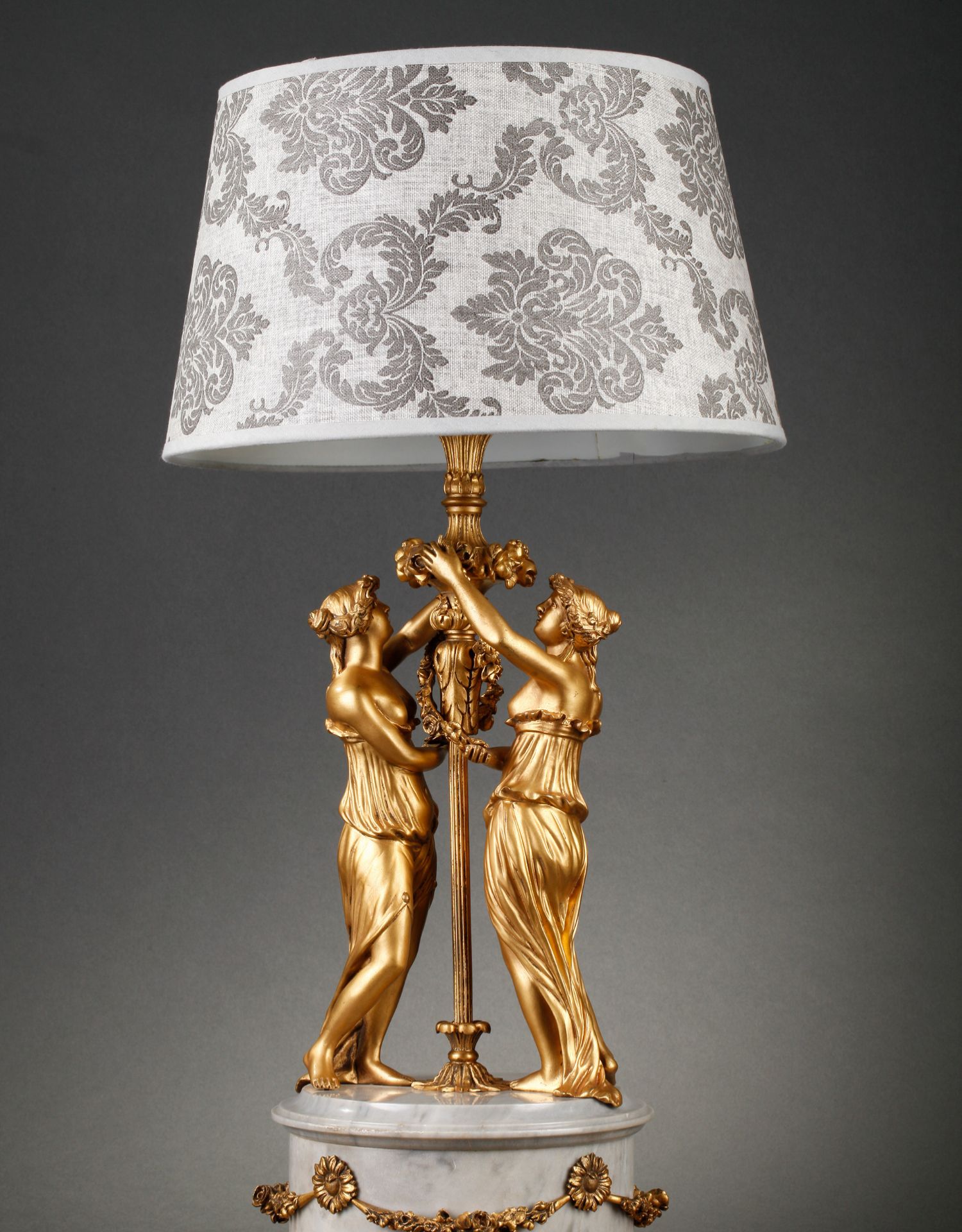 独角鹿西洋古董摆件法国大理石底座铜鎏金花环古典女神装饰台灯
