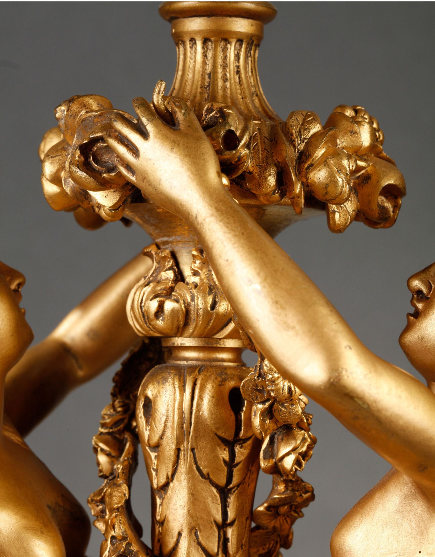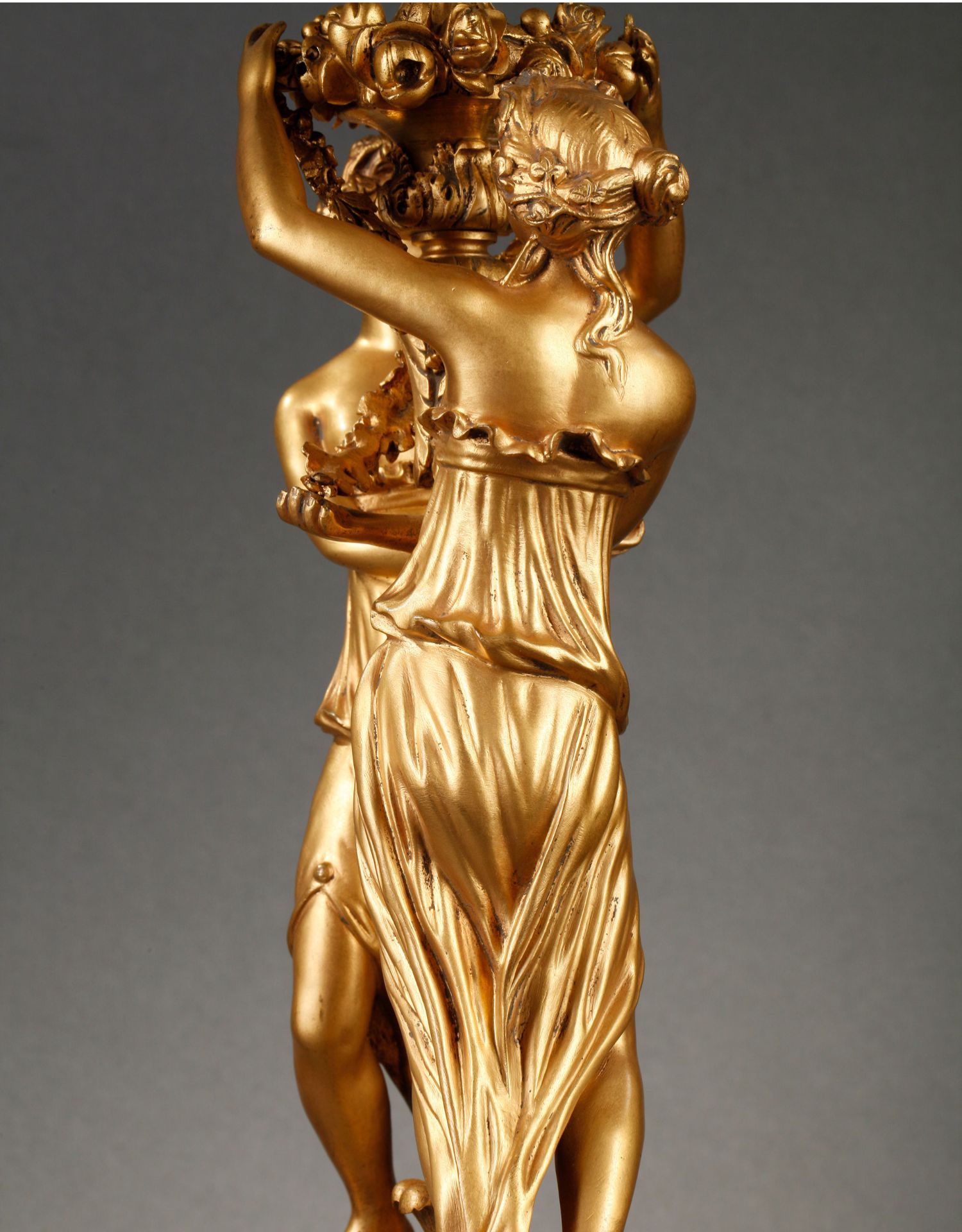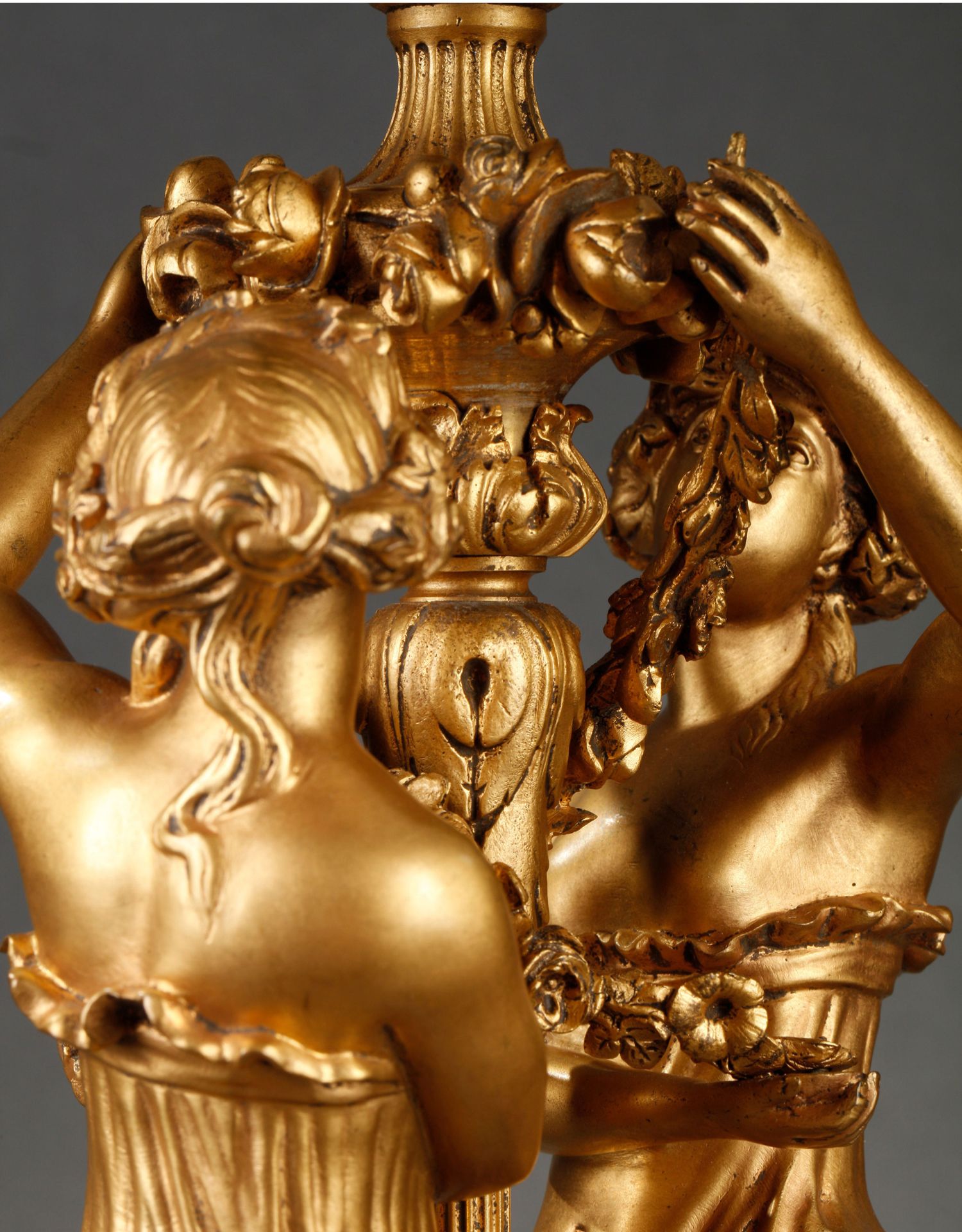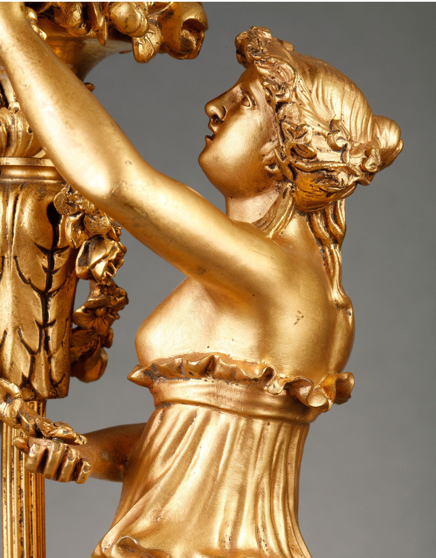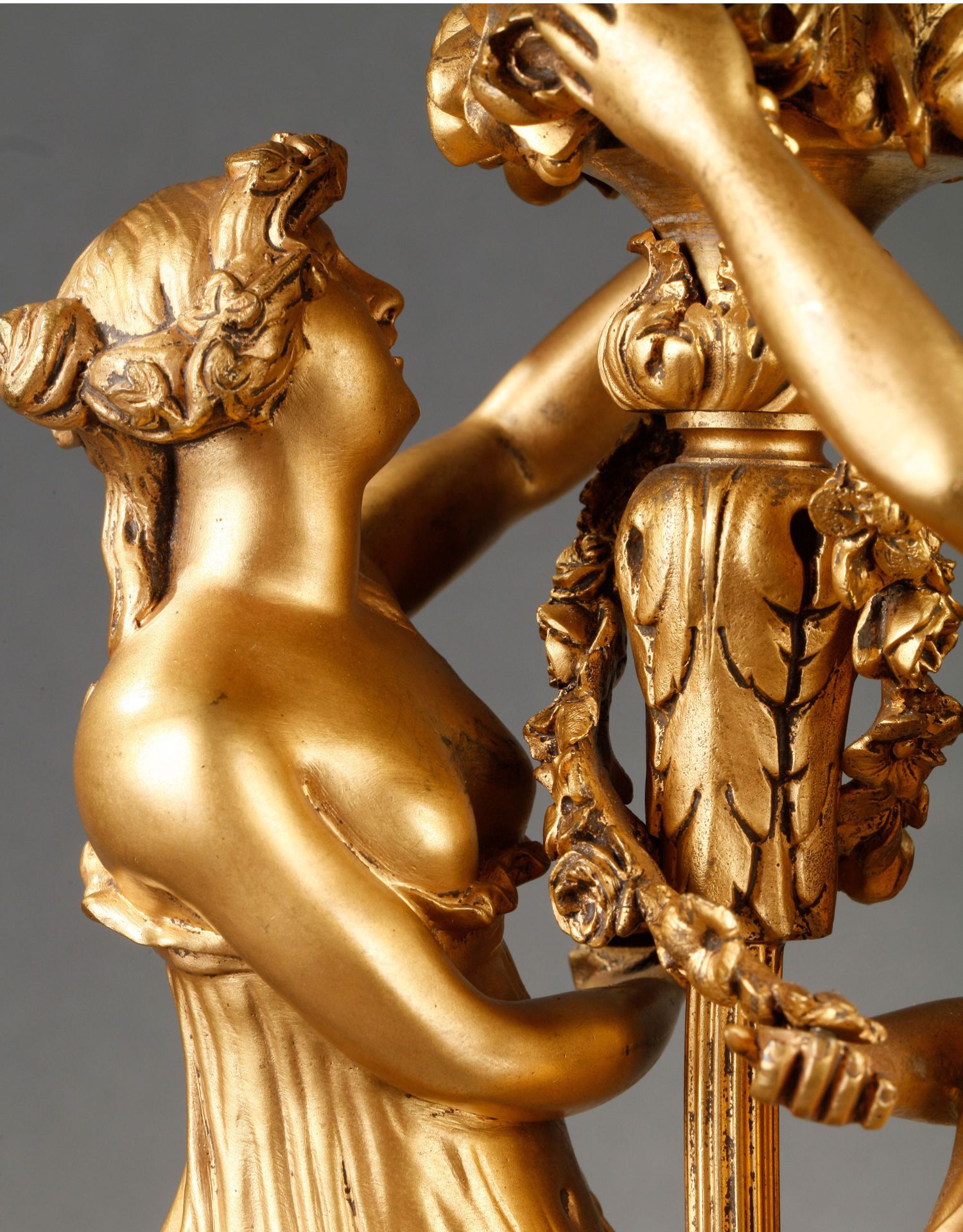独角鹿西洋古董摆件法国大理石底座铜鎏金花环古典女神装饰台灯