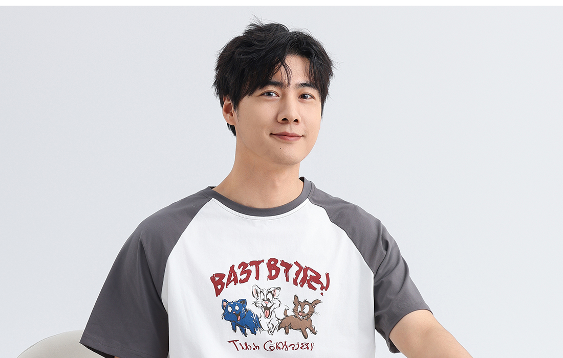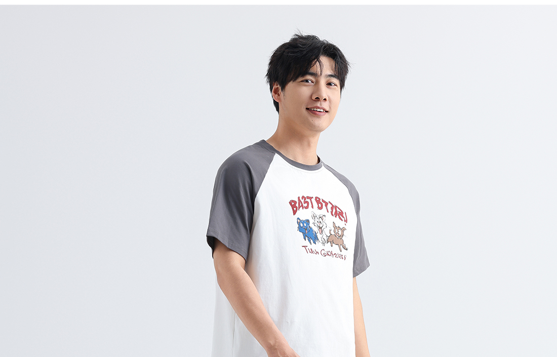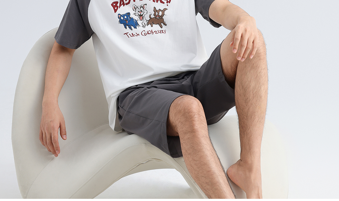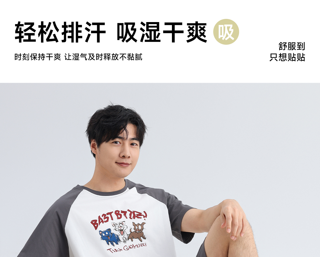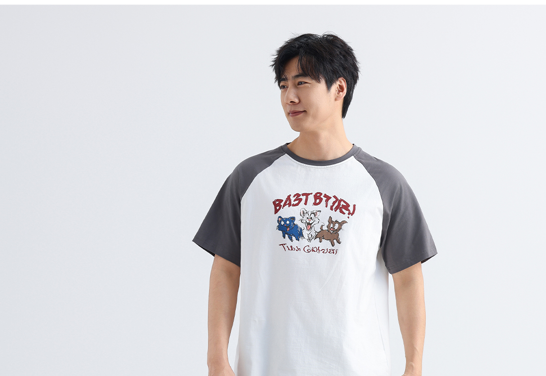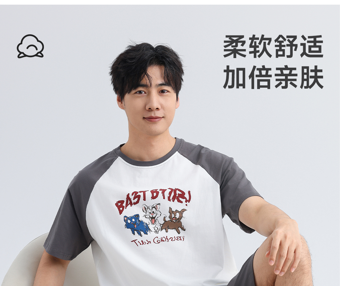 美季美优男士插肩袖卡通短袖套装