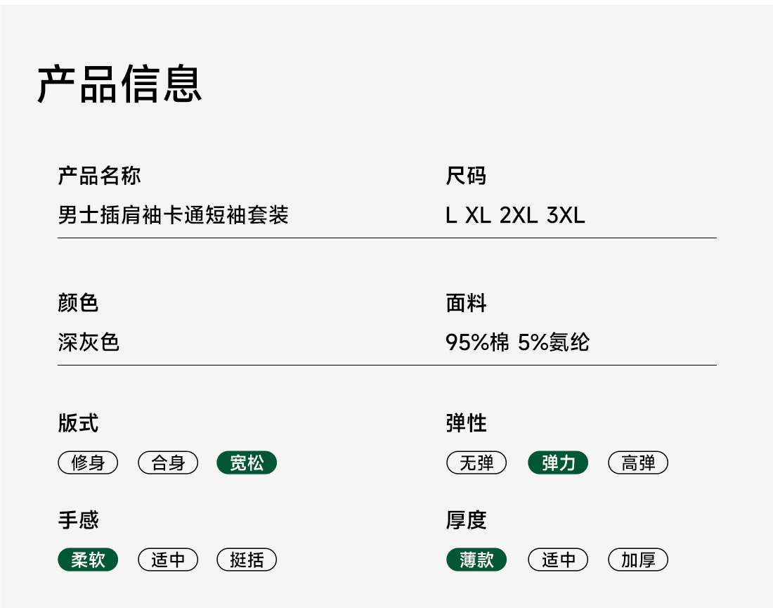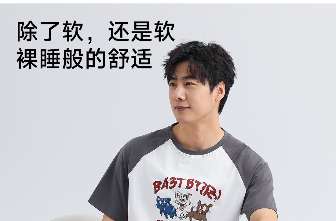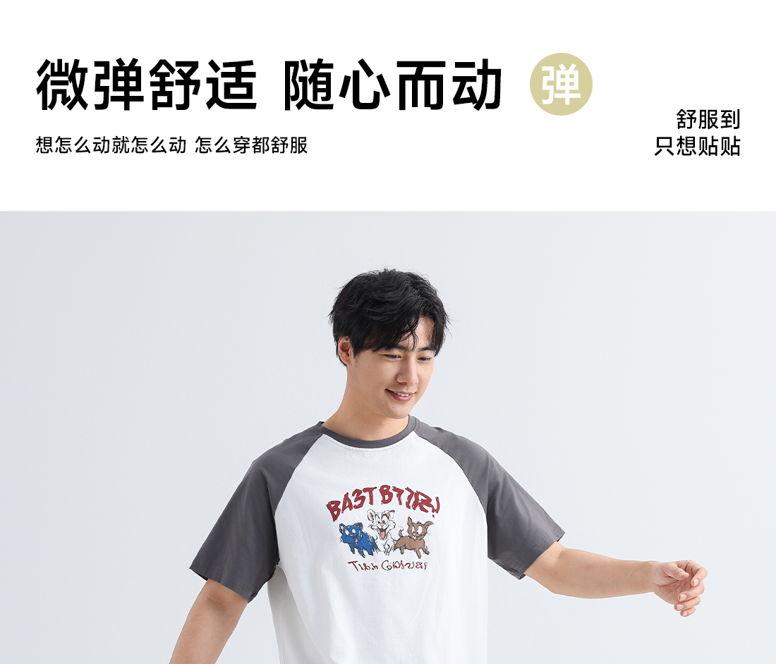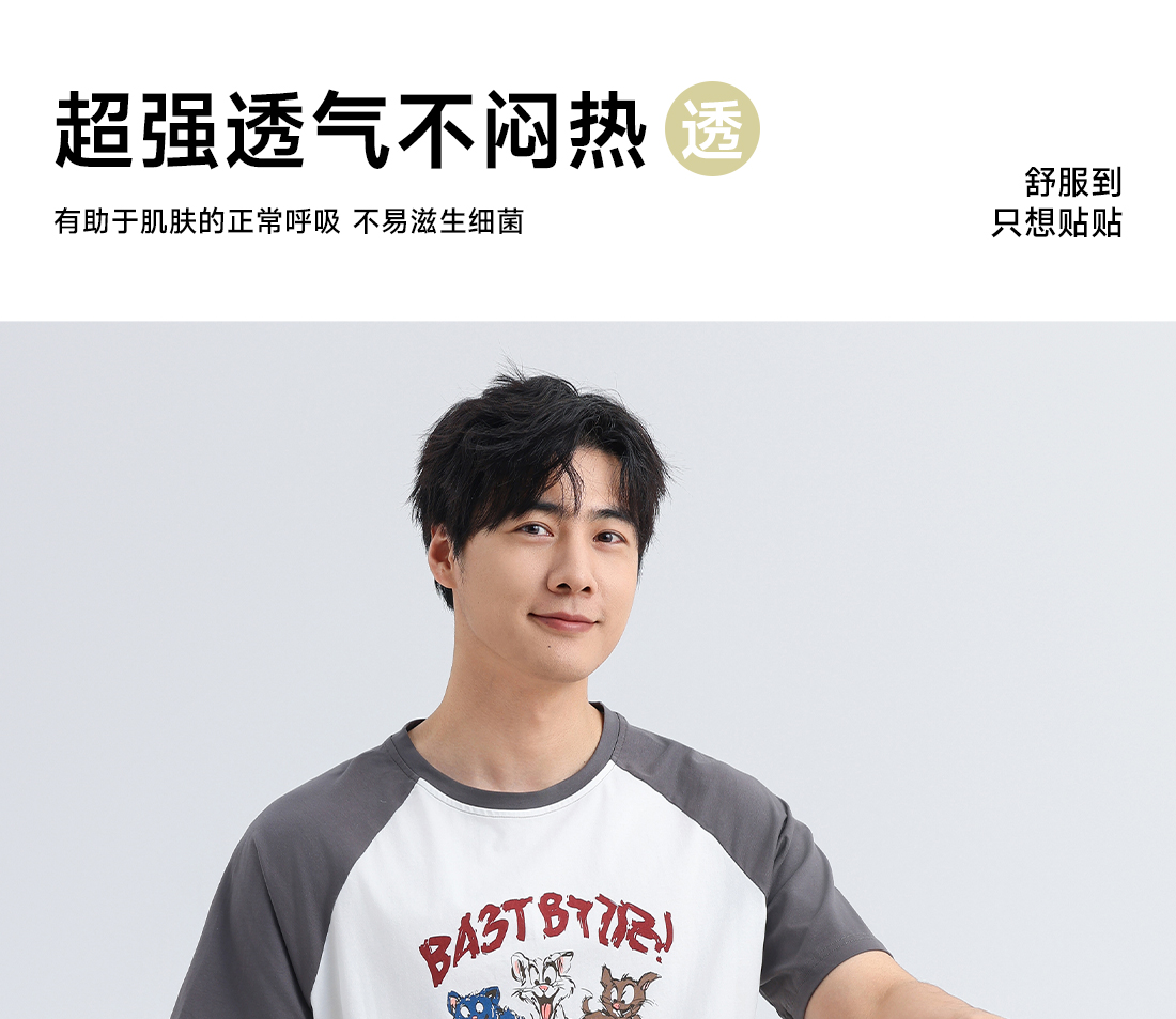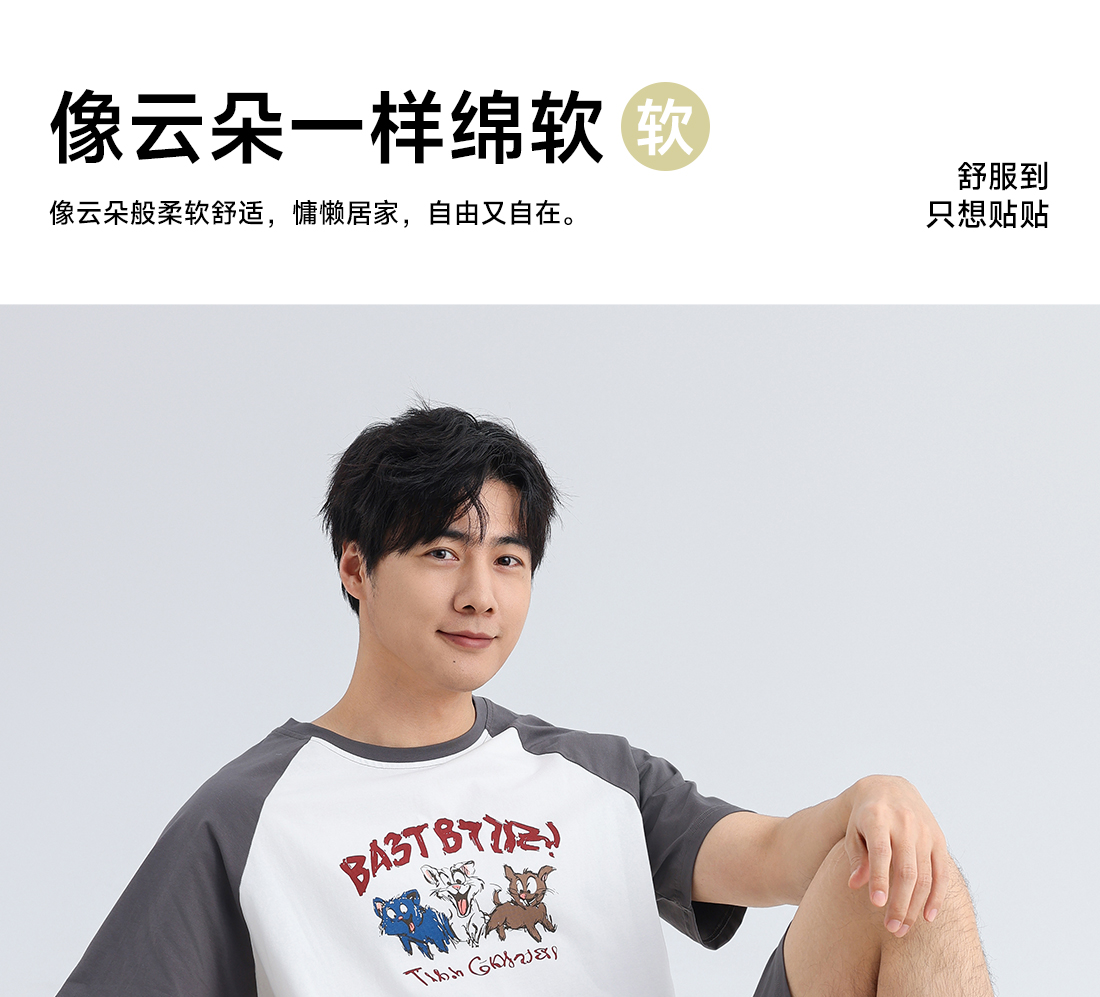 美季美优男士插肩袖卡通短袖套装