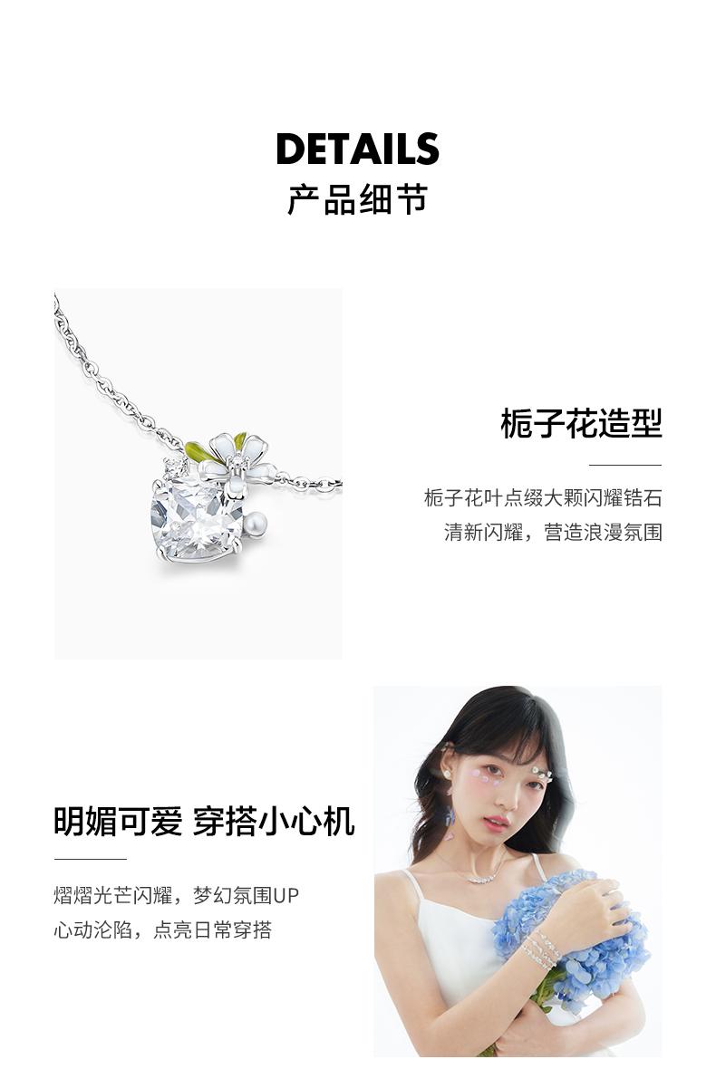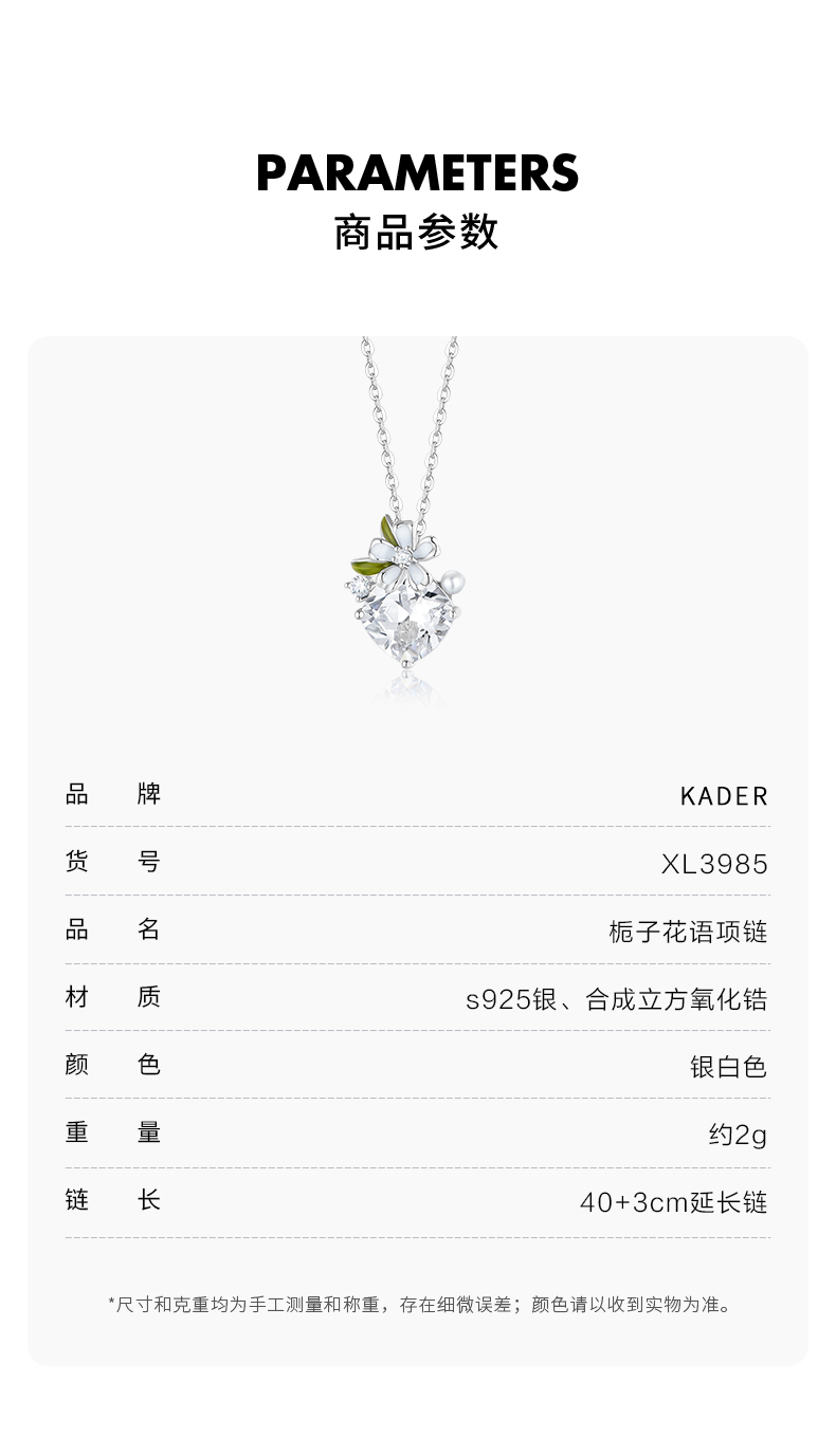 KADER卡蒂罗 栀子花语 森系小清新设计花朵 明媚优雅精致 气质 S925银 项链 女款