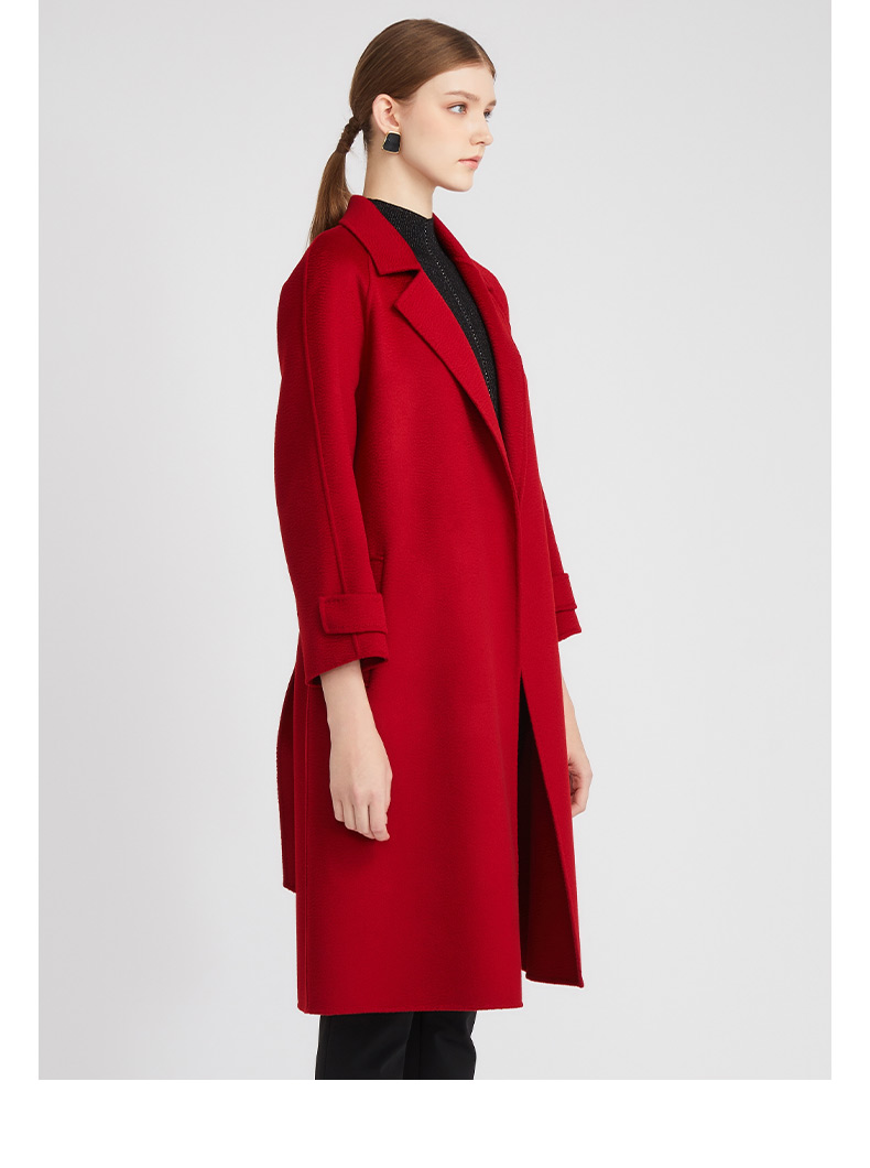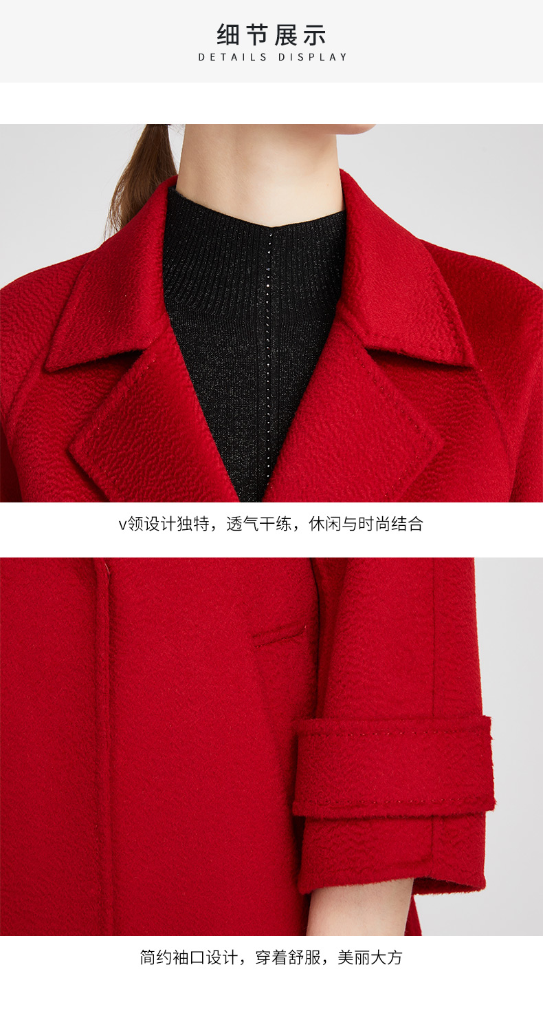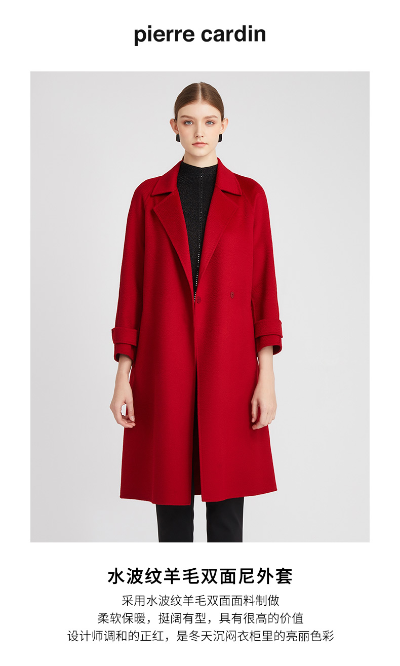 皮尔卡丹女装知性正红优雅通勤纯羊毛毛呢大衣P2422C2935R0