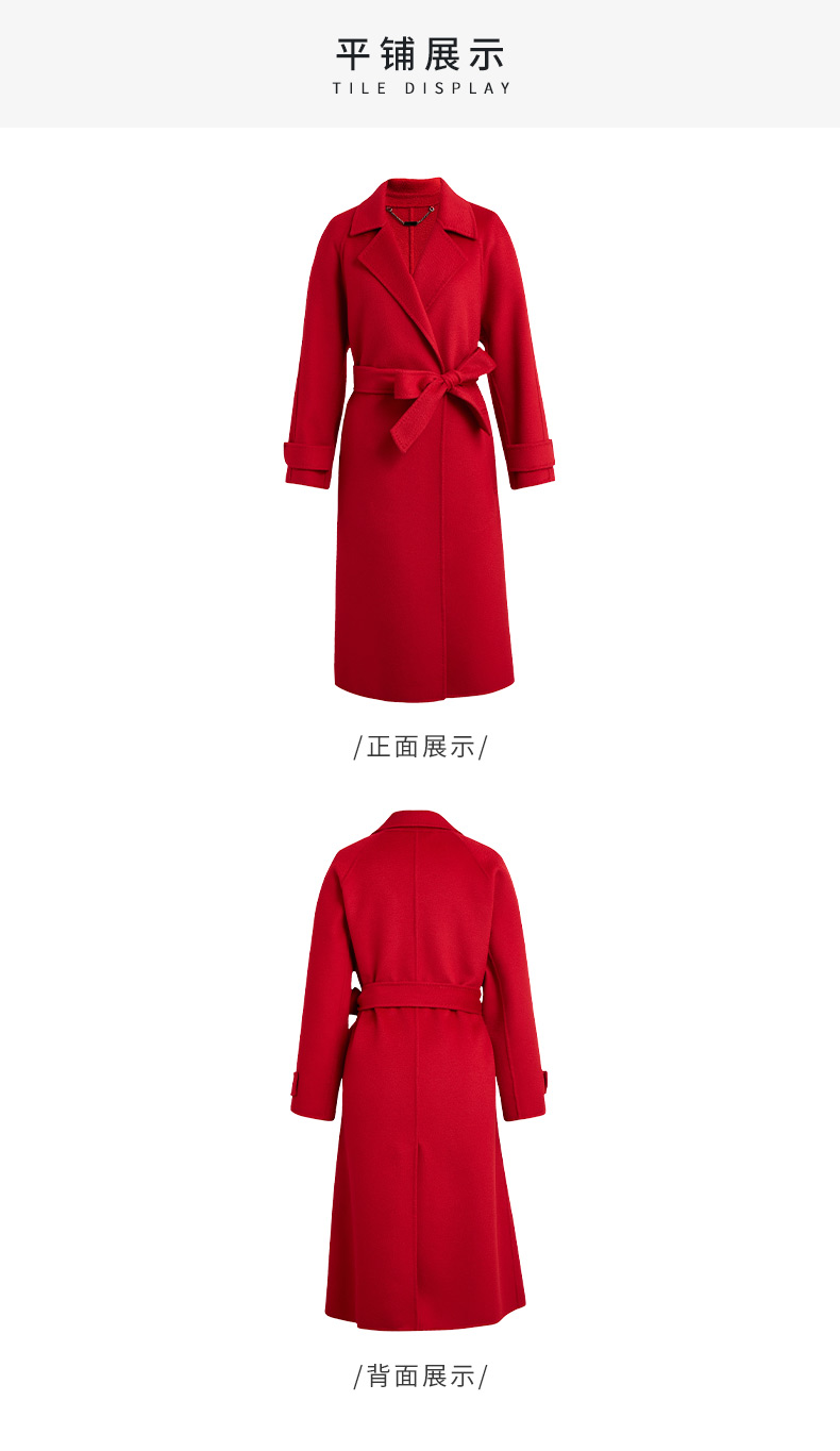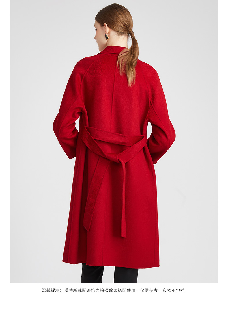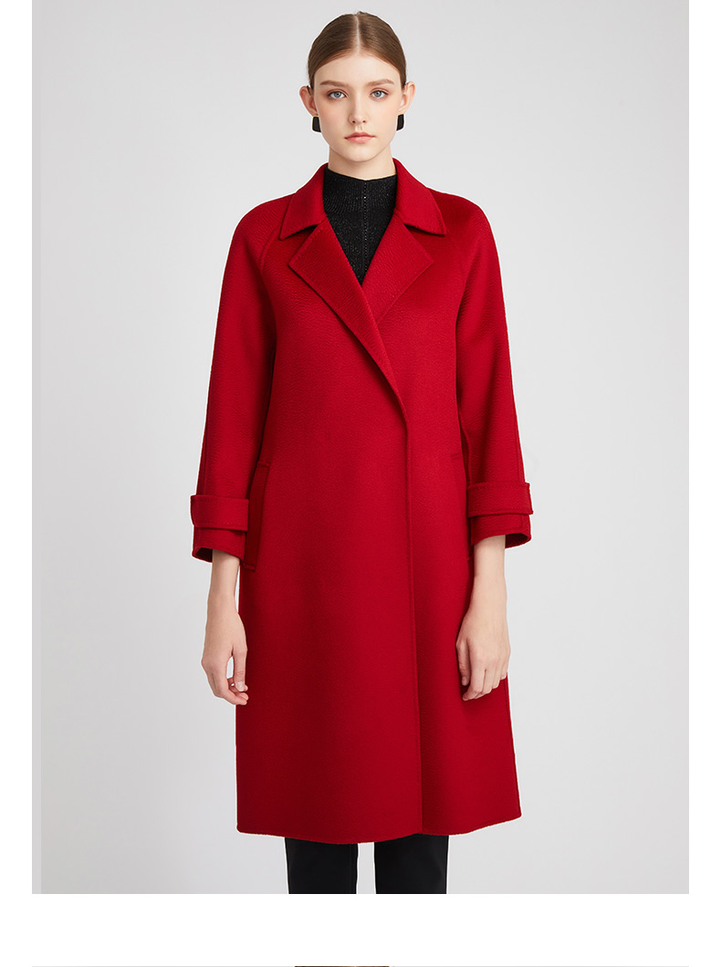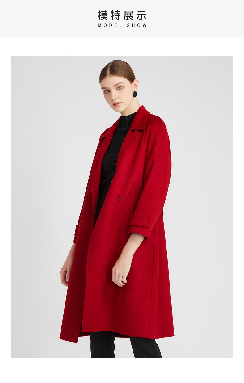 皮尔卡丹女装知性正红优雅通勤纯羊毛毛呢大衣P2422C2935R0