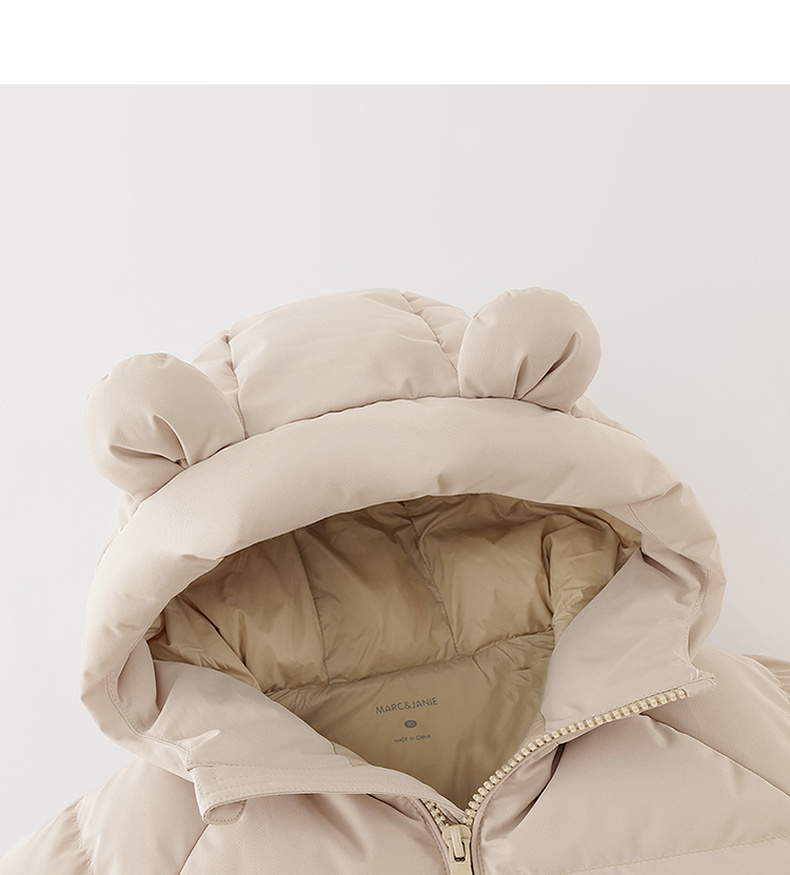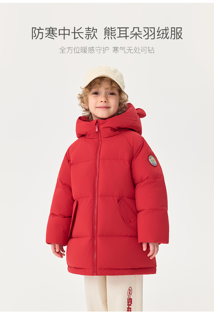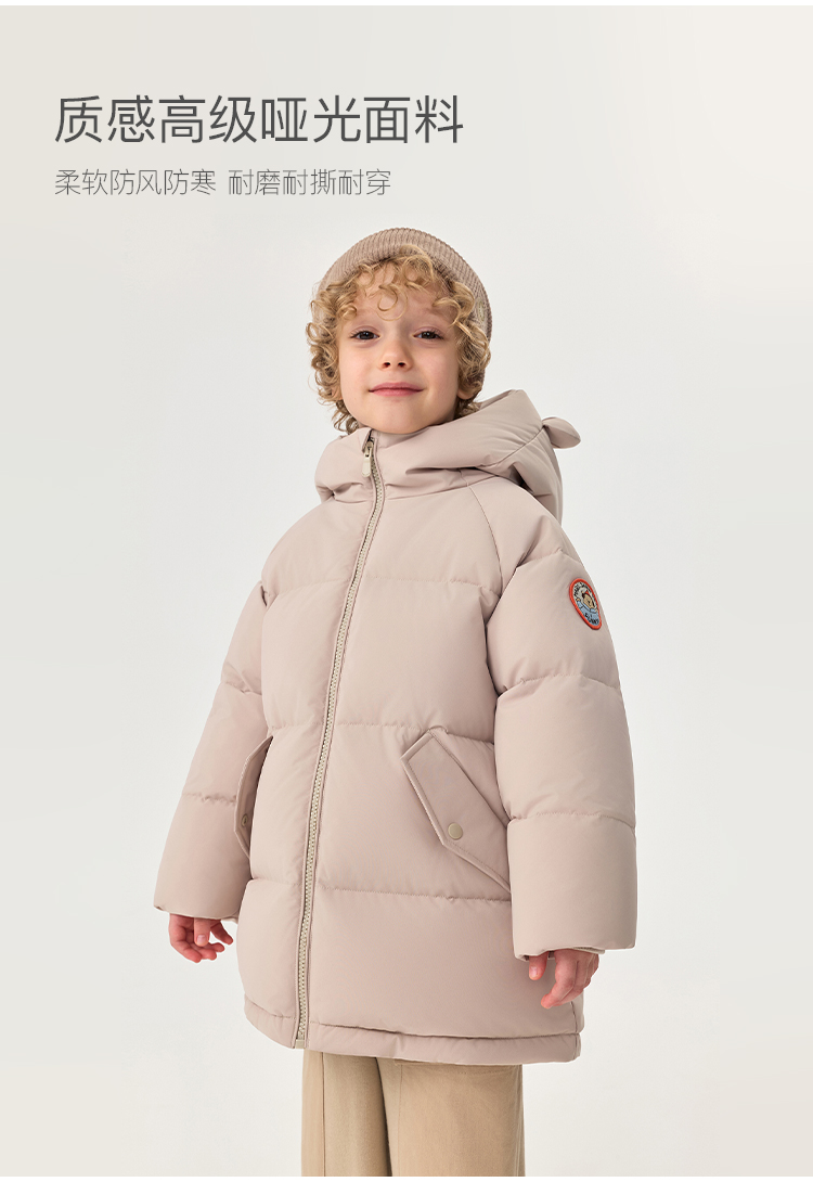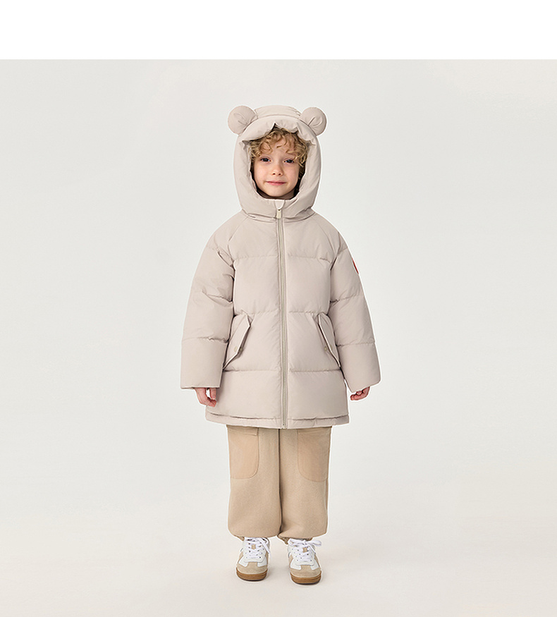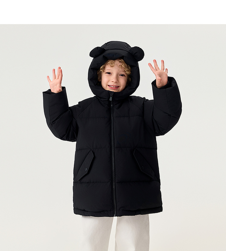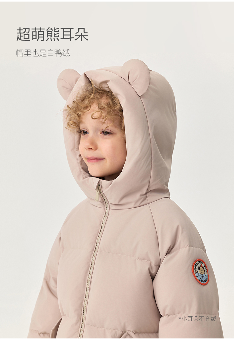 【无氟防泼水】马克珍妮男童熊耳朵中长款连帽羽绒服2025年冬装新款551687