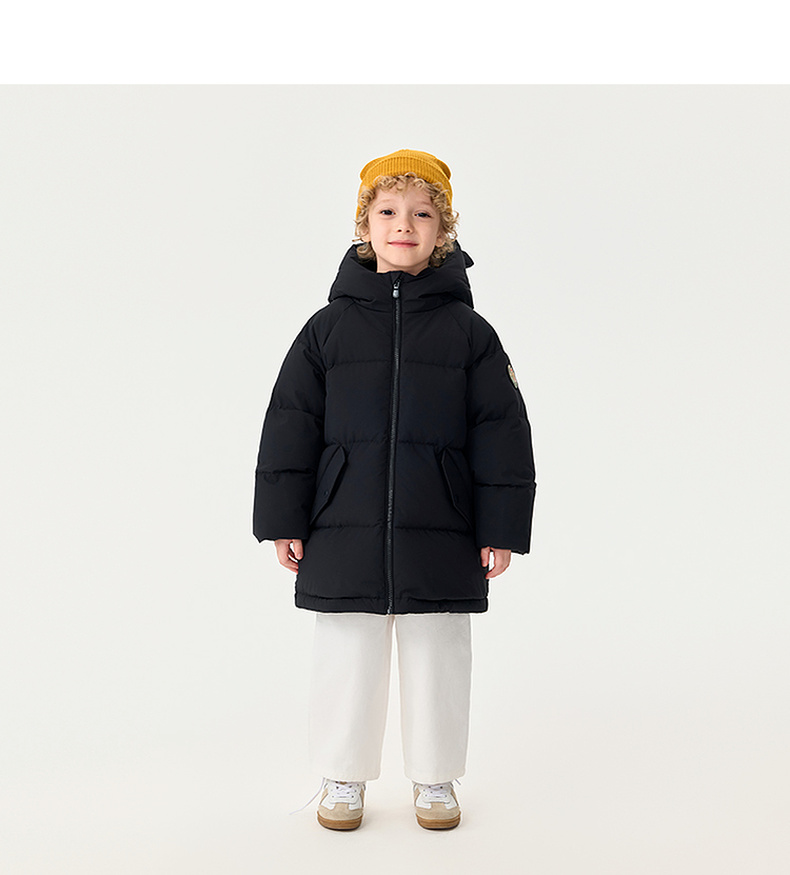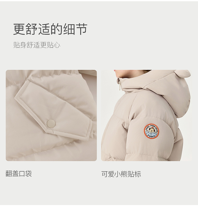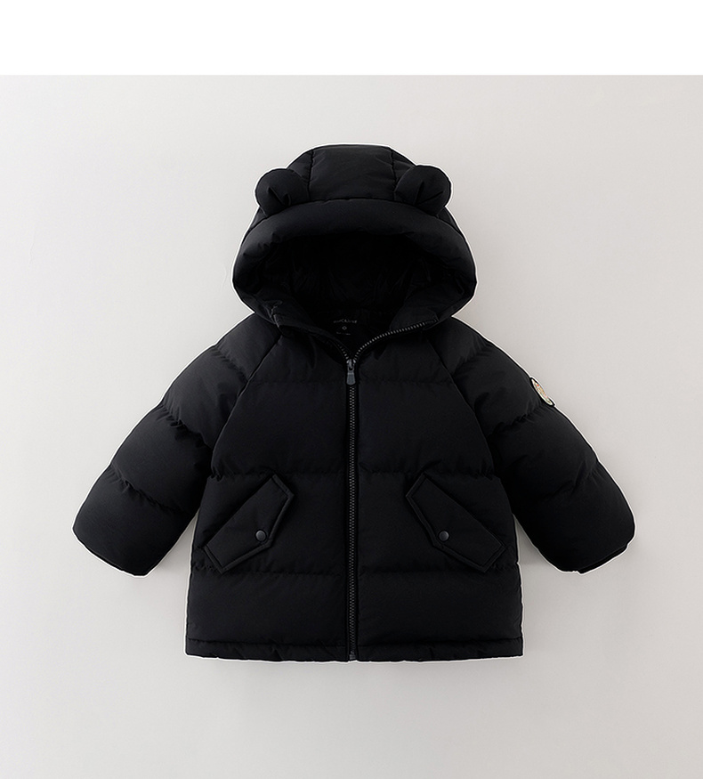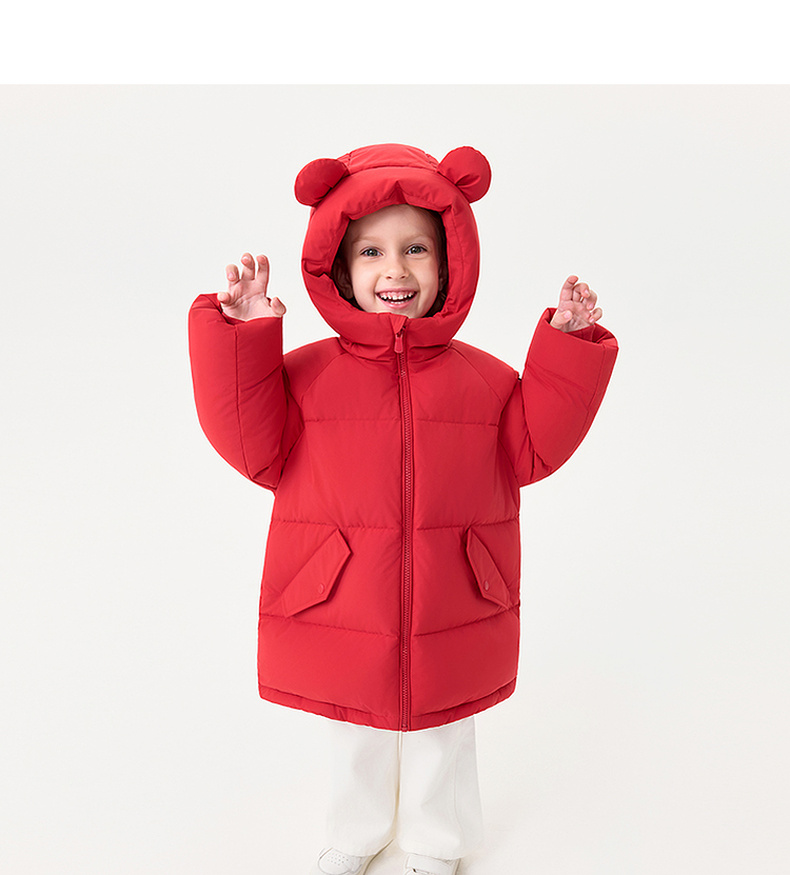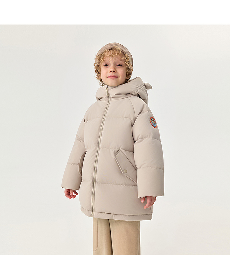 【无氟防泼水】马克珍妮男童熊耳朵中长款连帽羽绒服2025年冬装新款551687