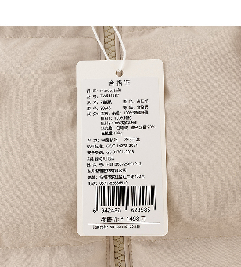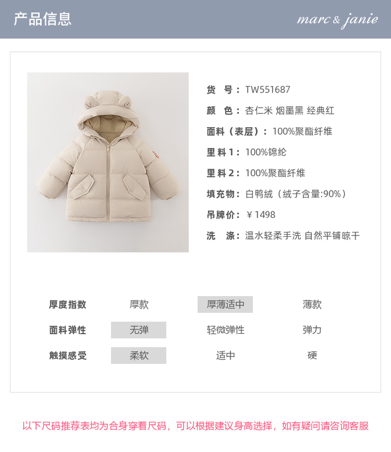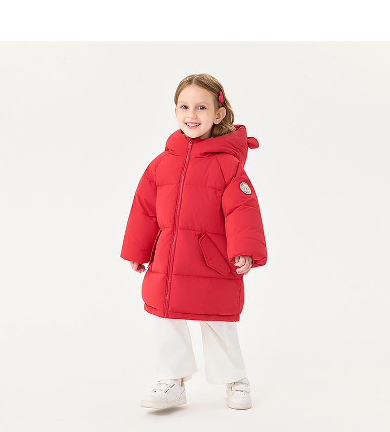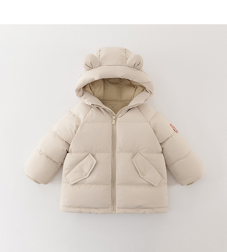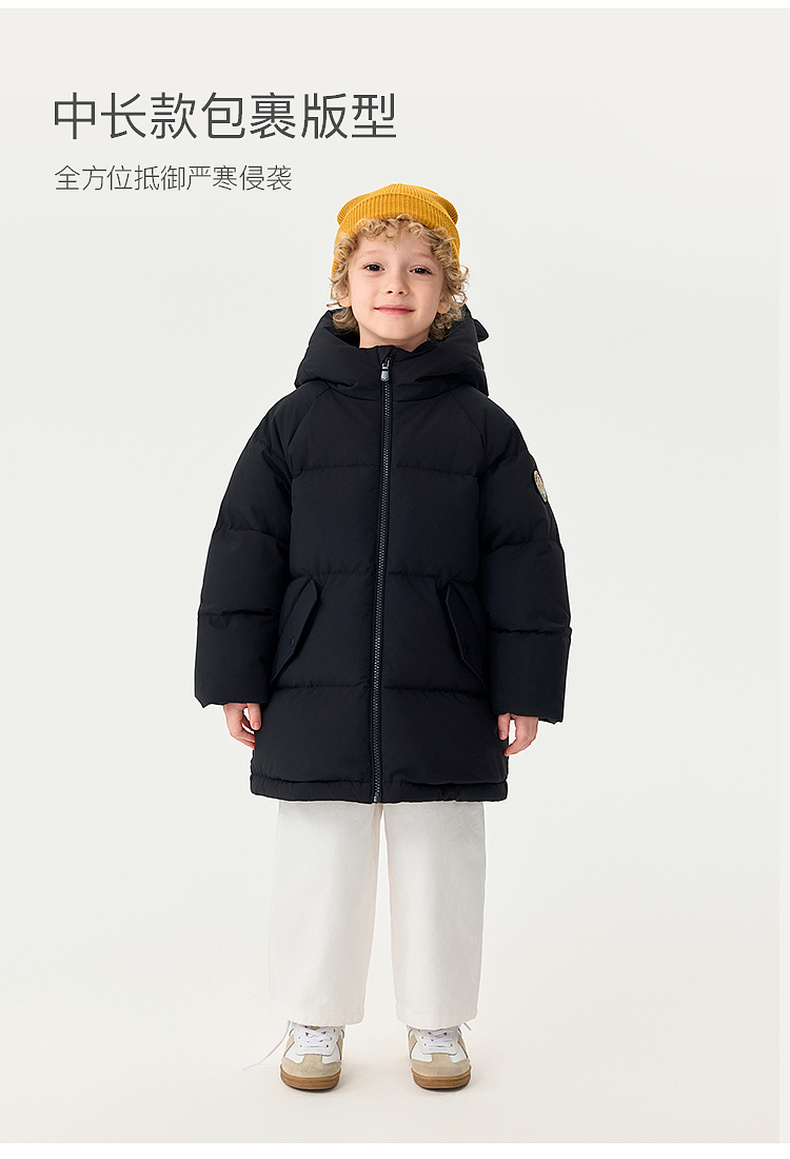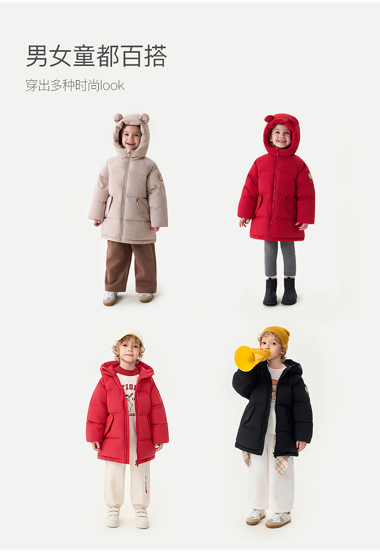 【无氟防泼水】马克珍妮男童熊耳朵中长款连帽羽绒服2025年冬装新款551687