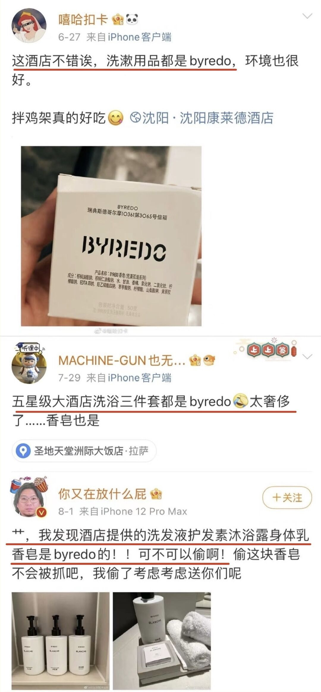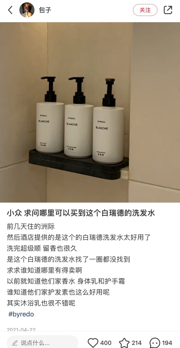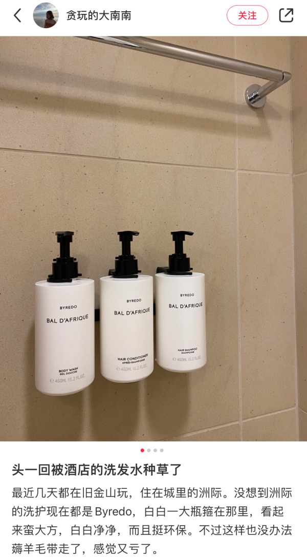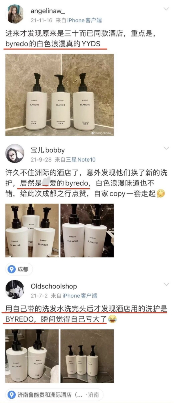 但凡在酒店发现洗护用品是byredo时