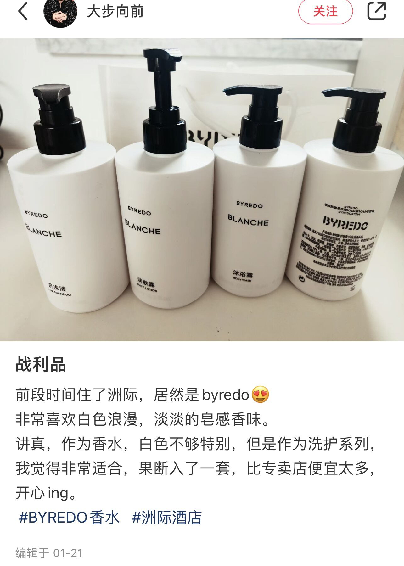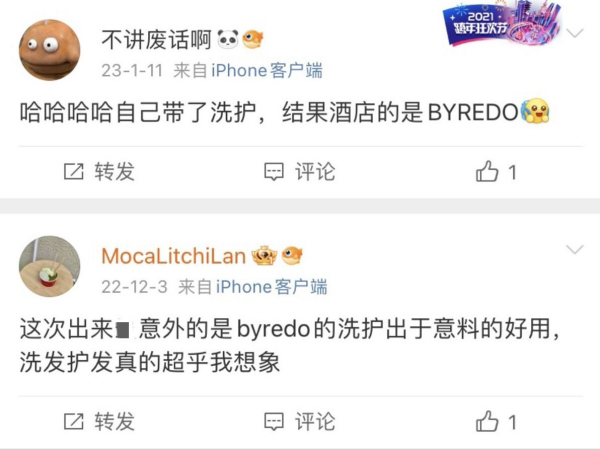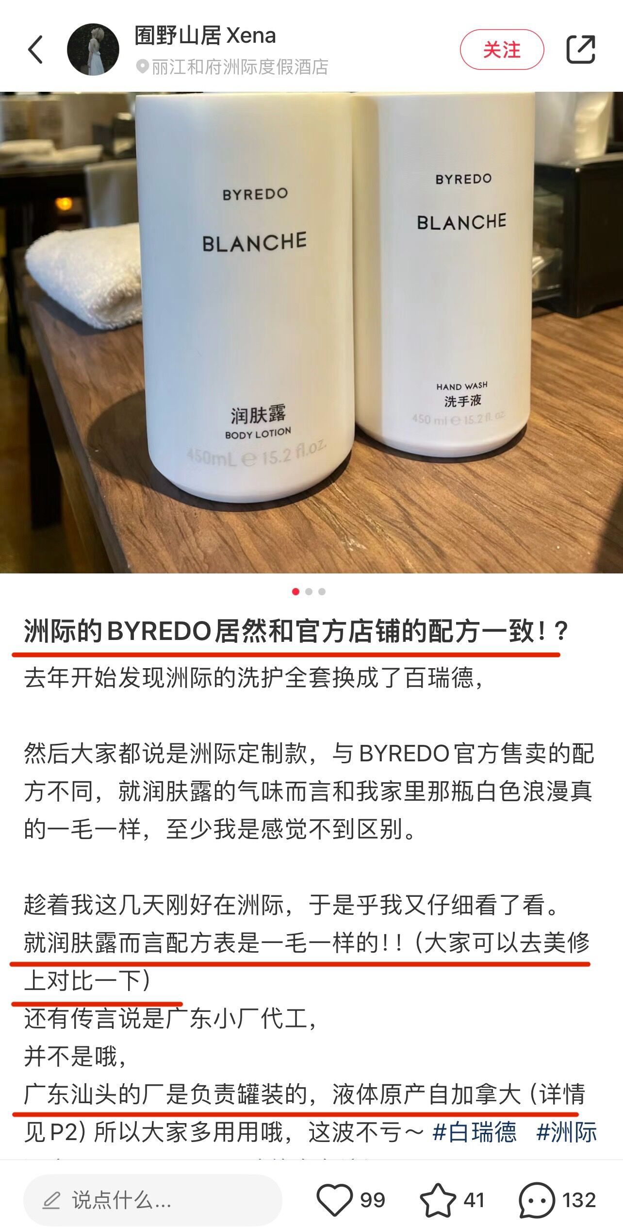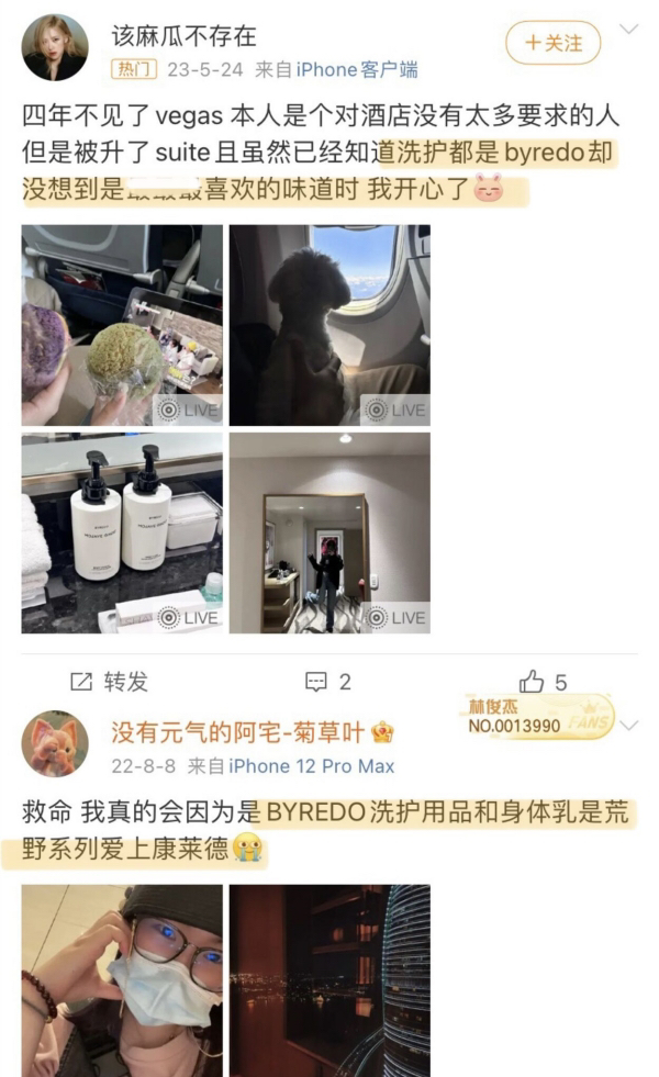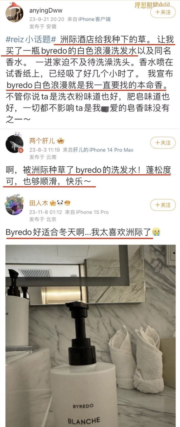 但凡在酒店发现洗护用品是byredo时