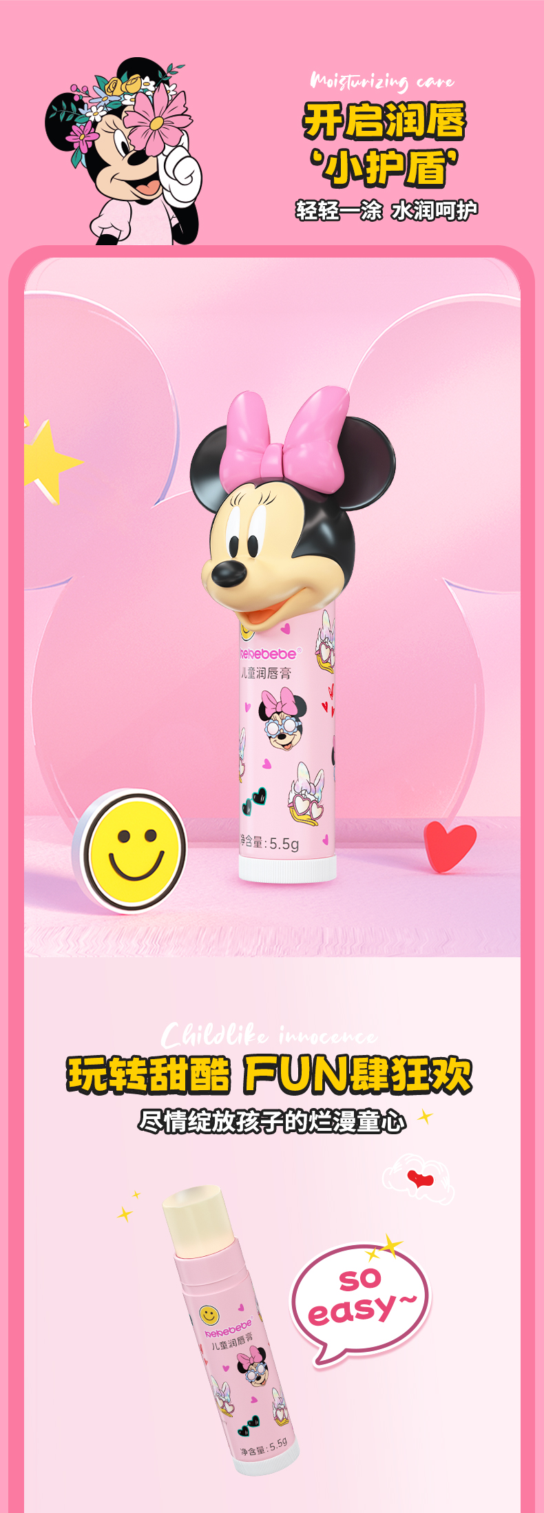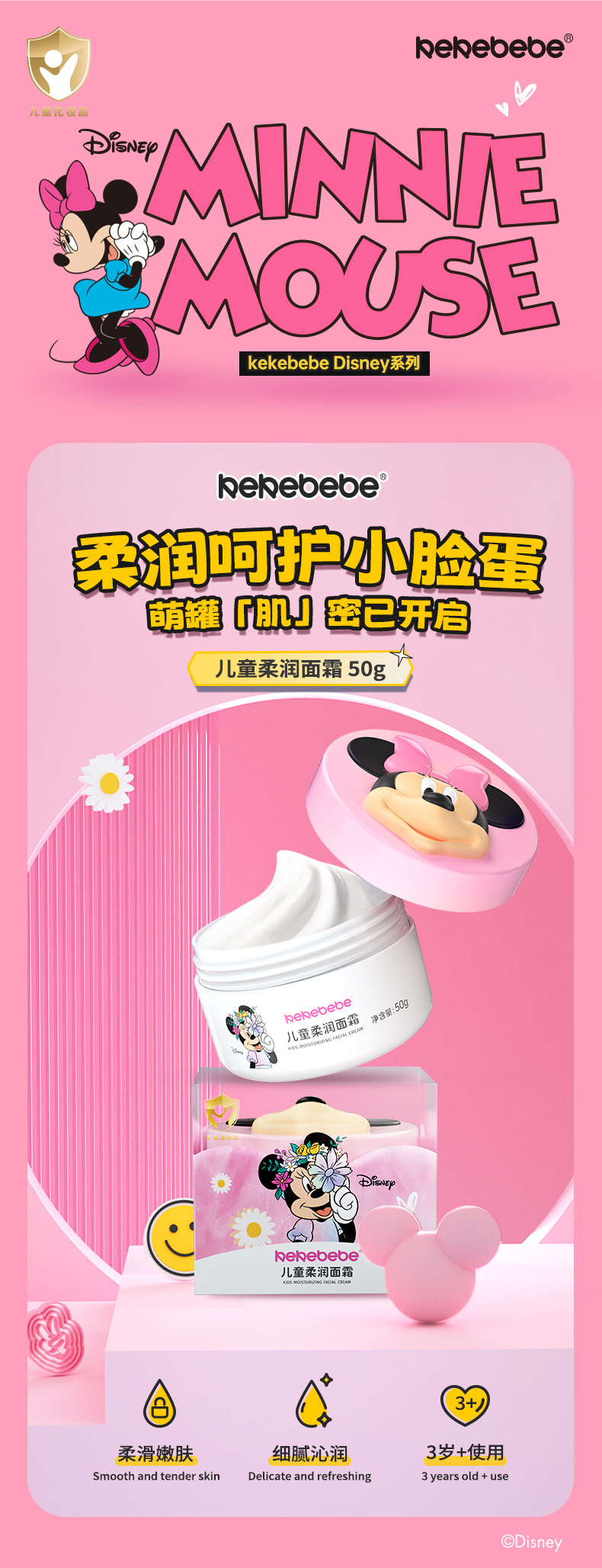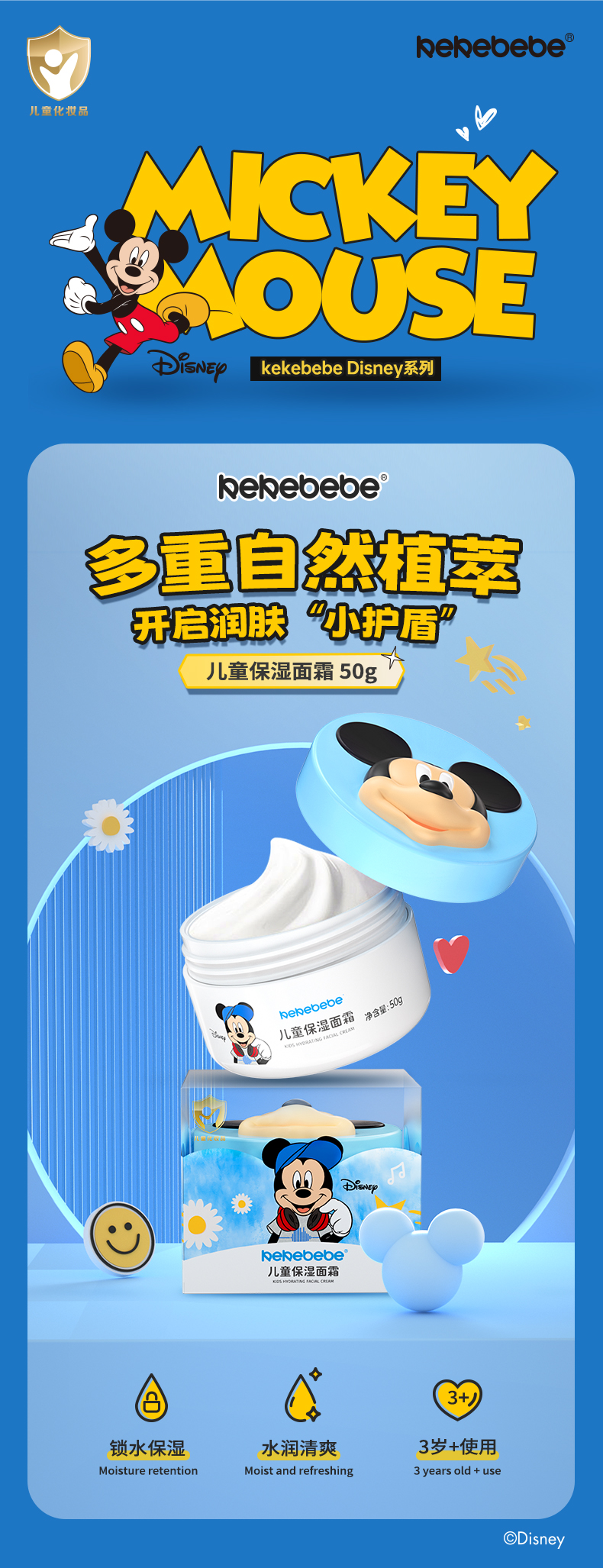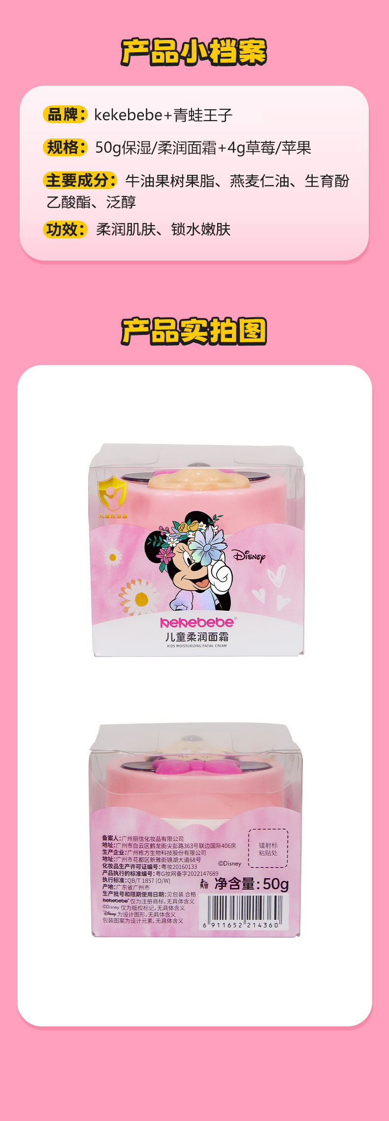 kekebebe迪士尼联名款儿童保湿柔润面霜50g+联名款儿童润唇膏