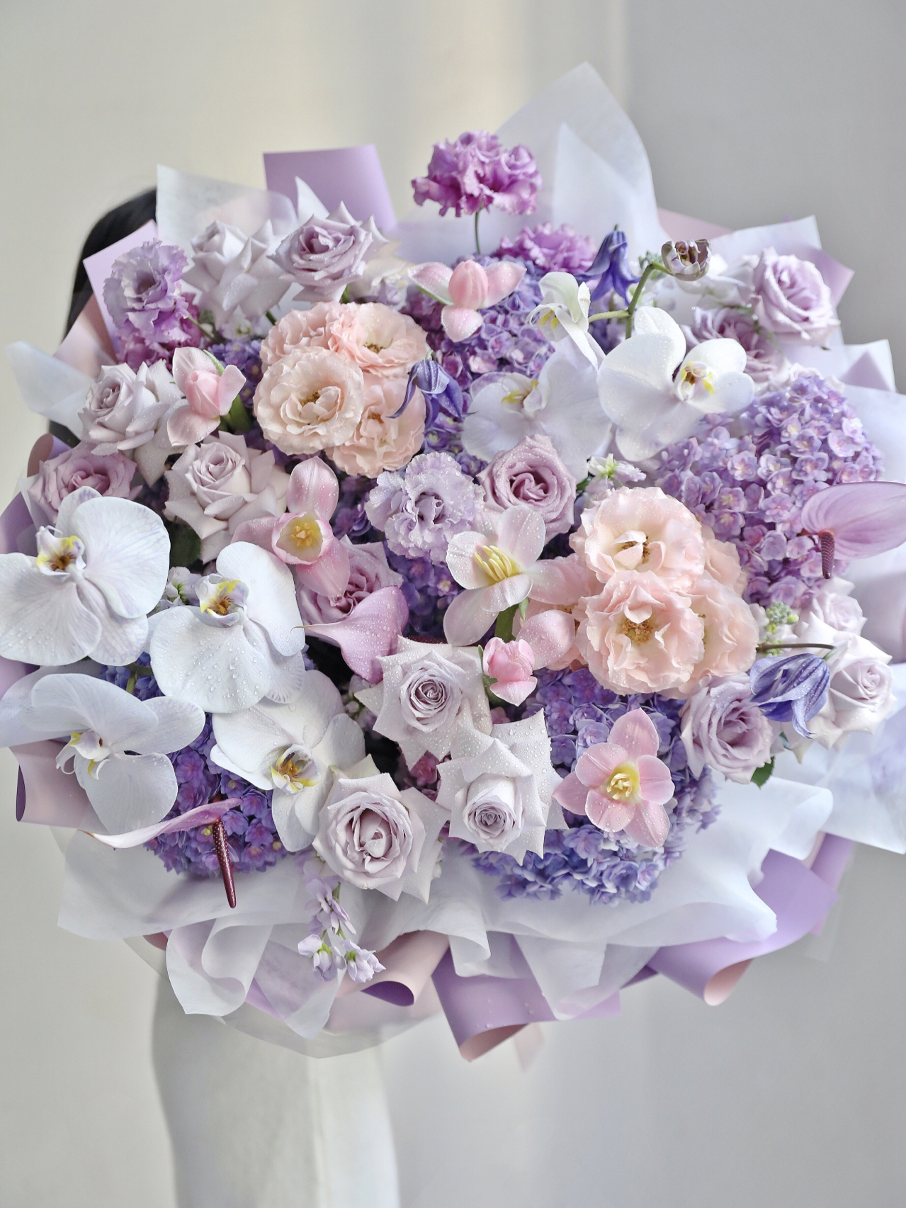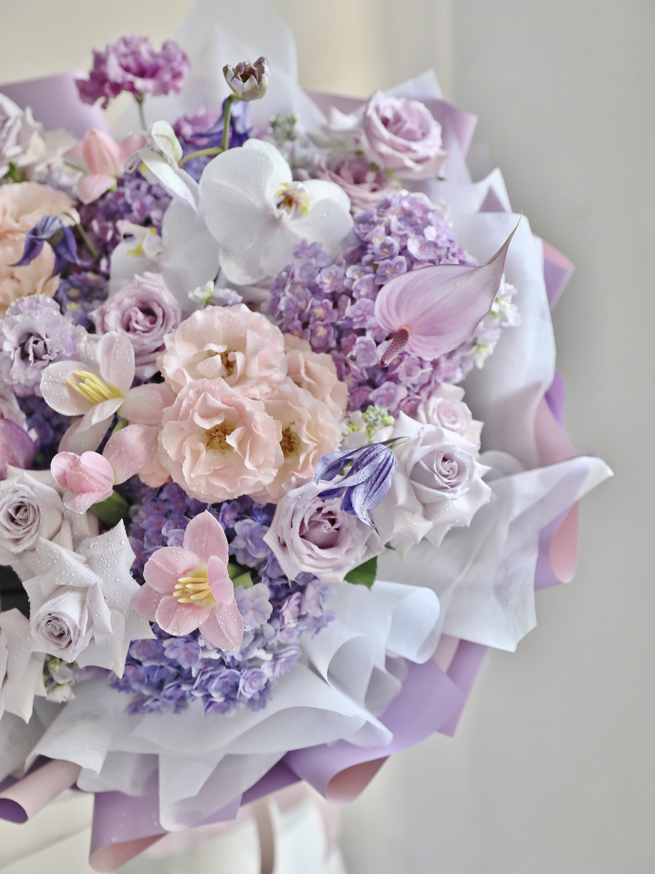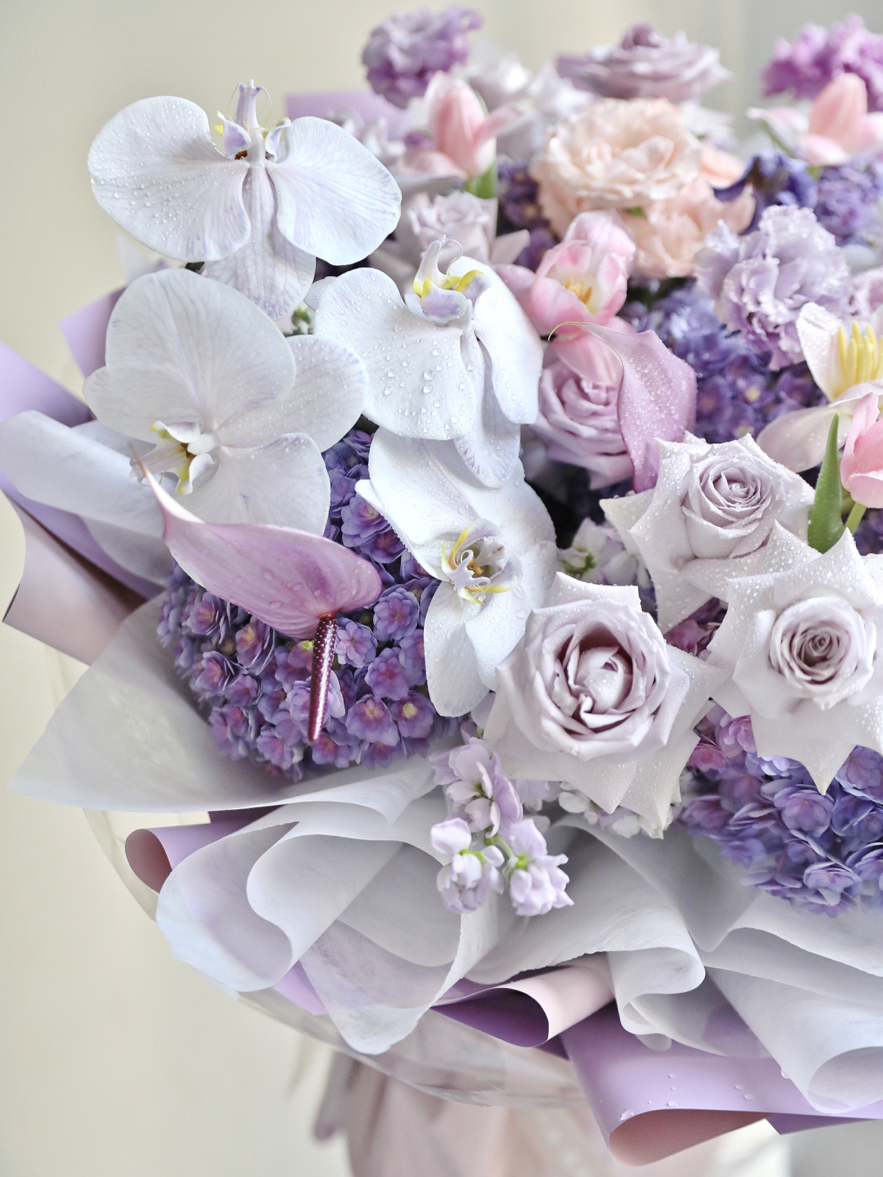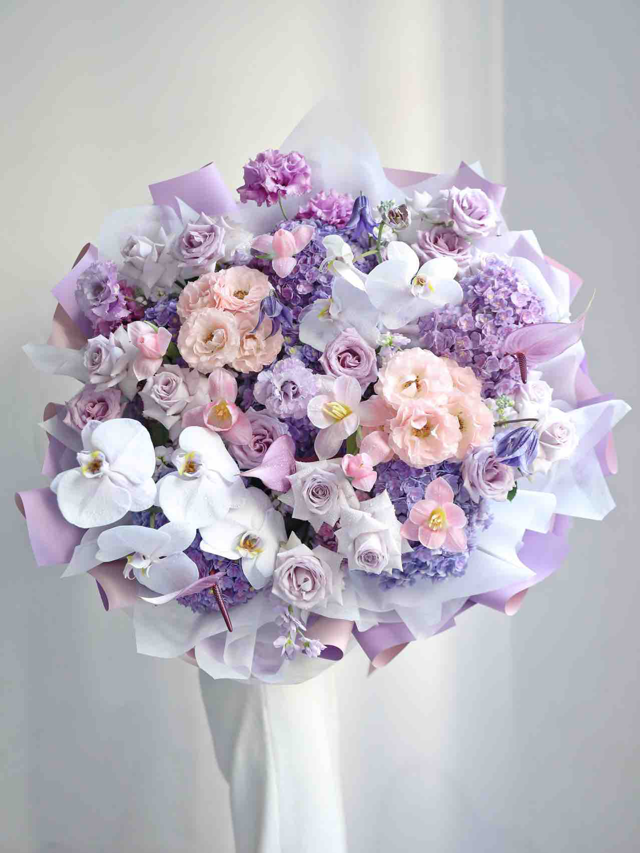 《琉璃书》. 粉色少女心花束冬季粉玫瑰颜色偏浅