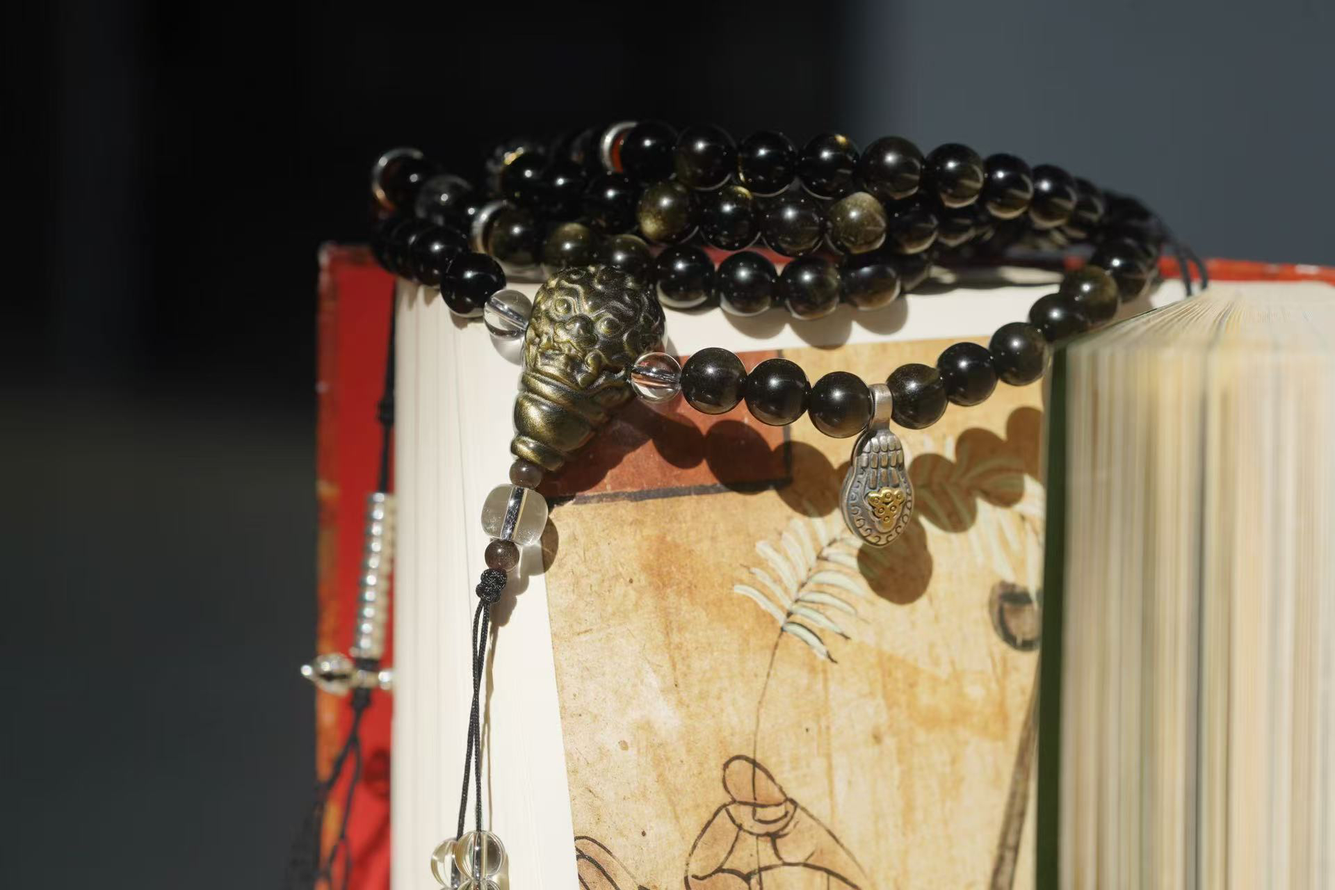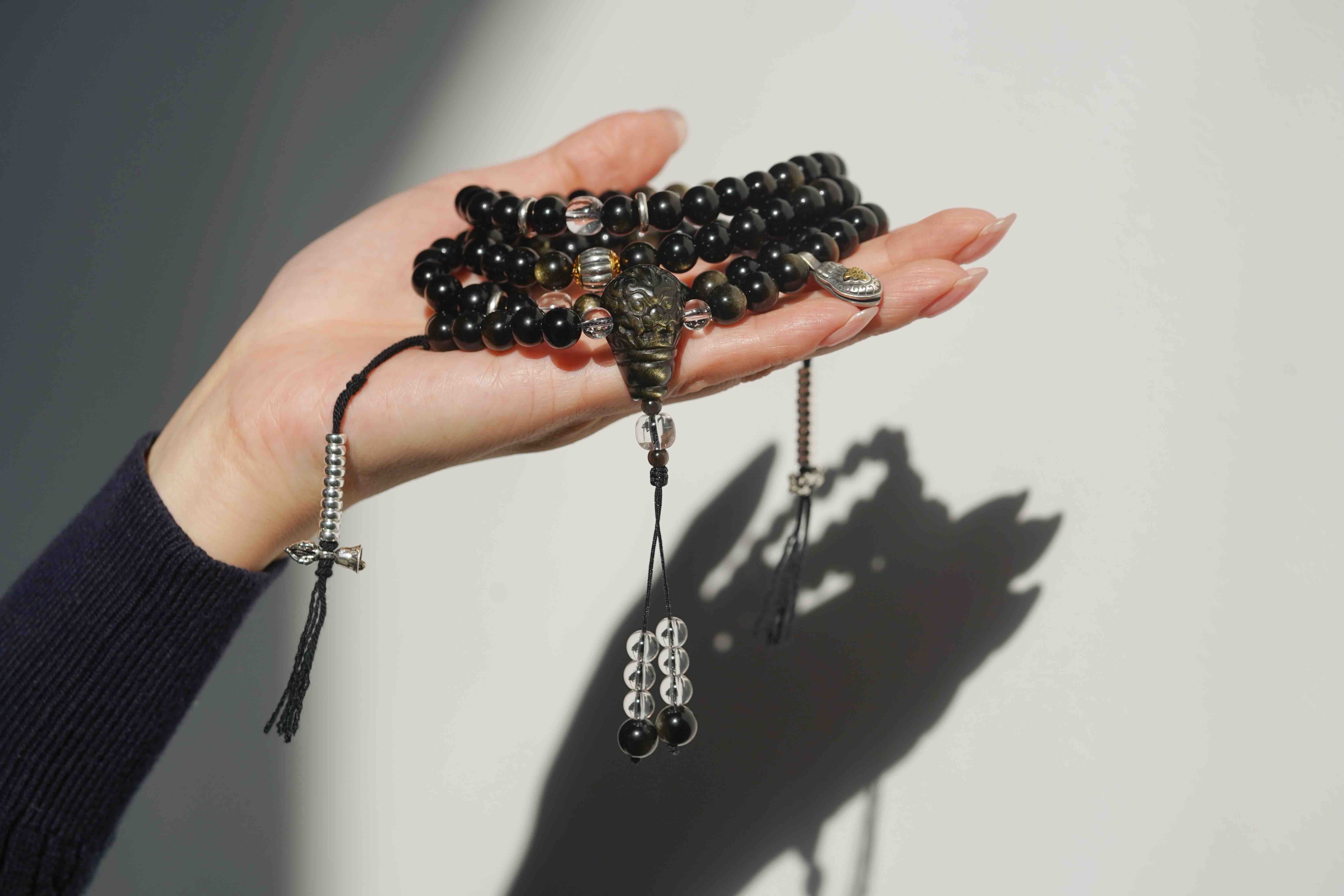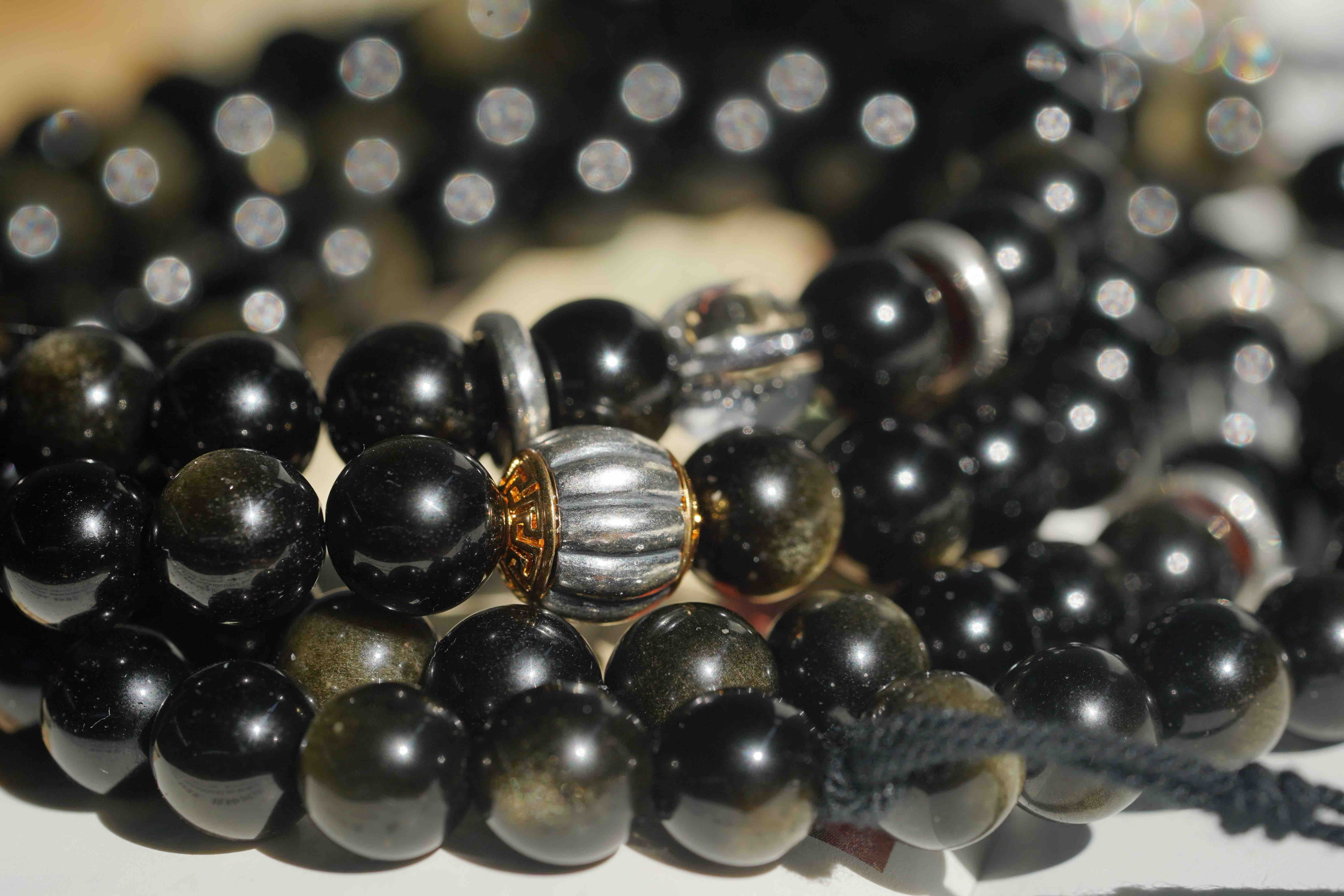 黑曜石,颗颗金眼,很贵气。我一直都没有做过黑曜石念珠