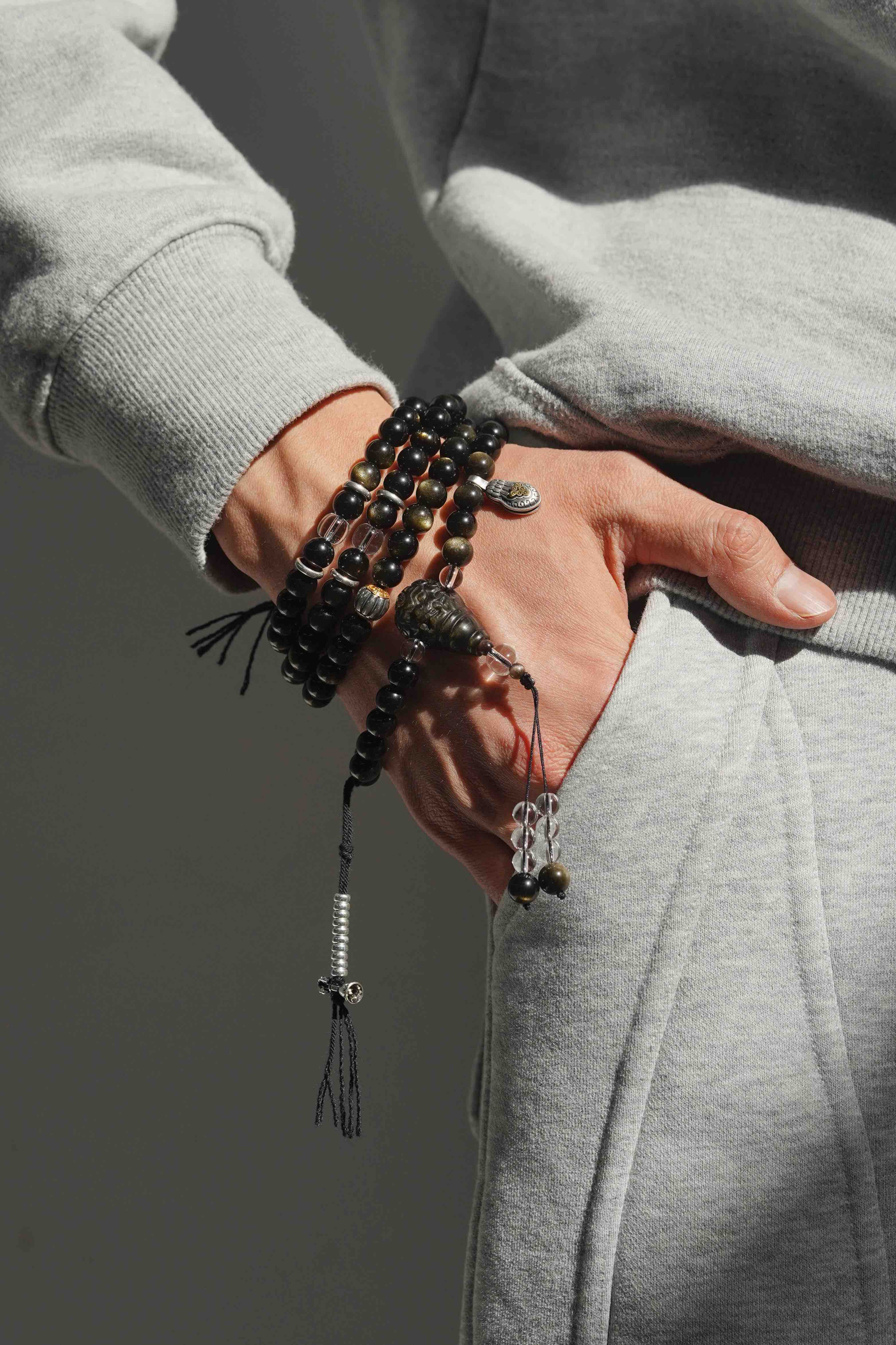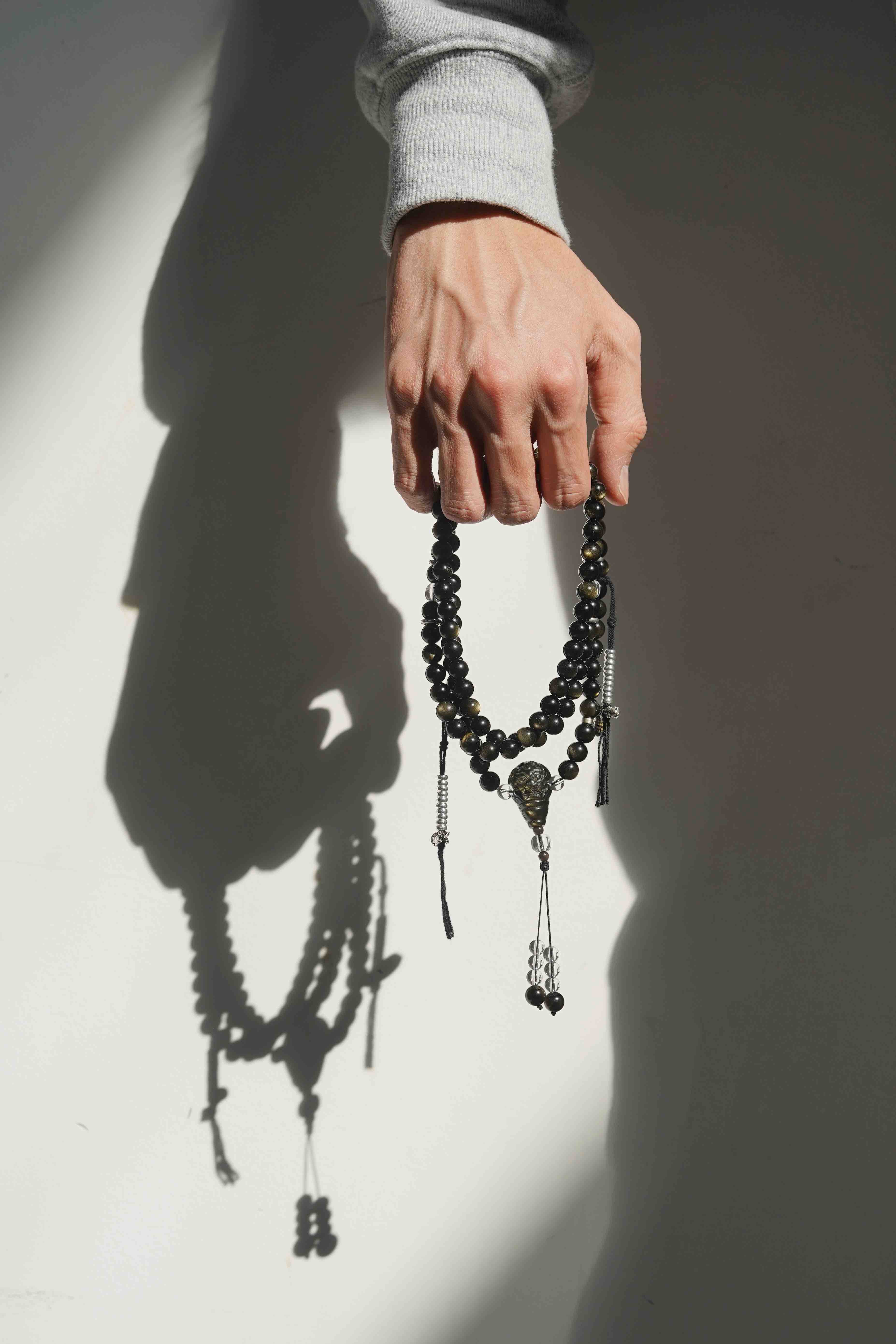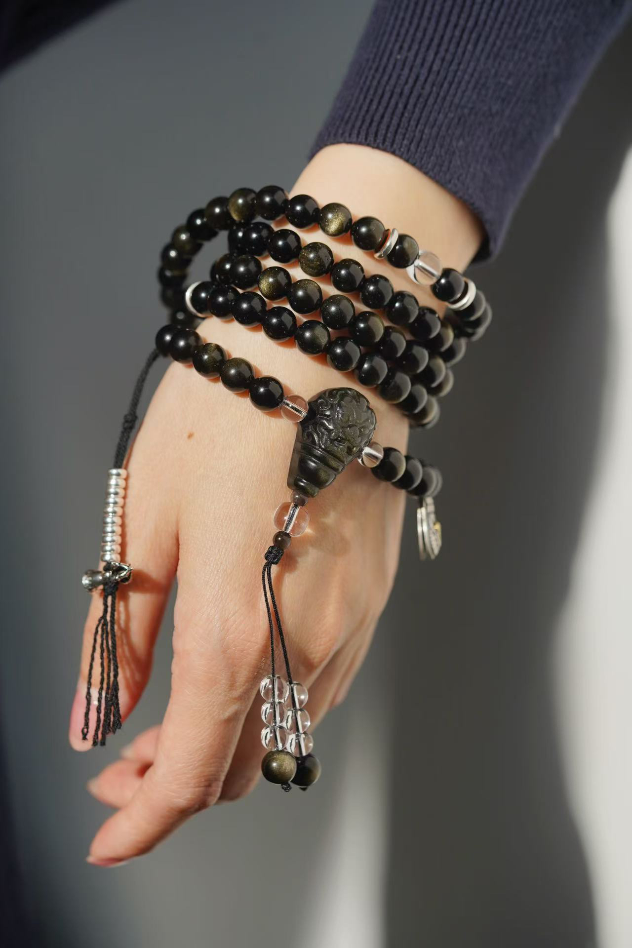 黑曜石,颗颗金眼,很贵气。我一直都没有做过黑曜石念珠