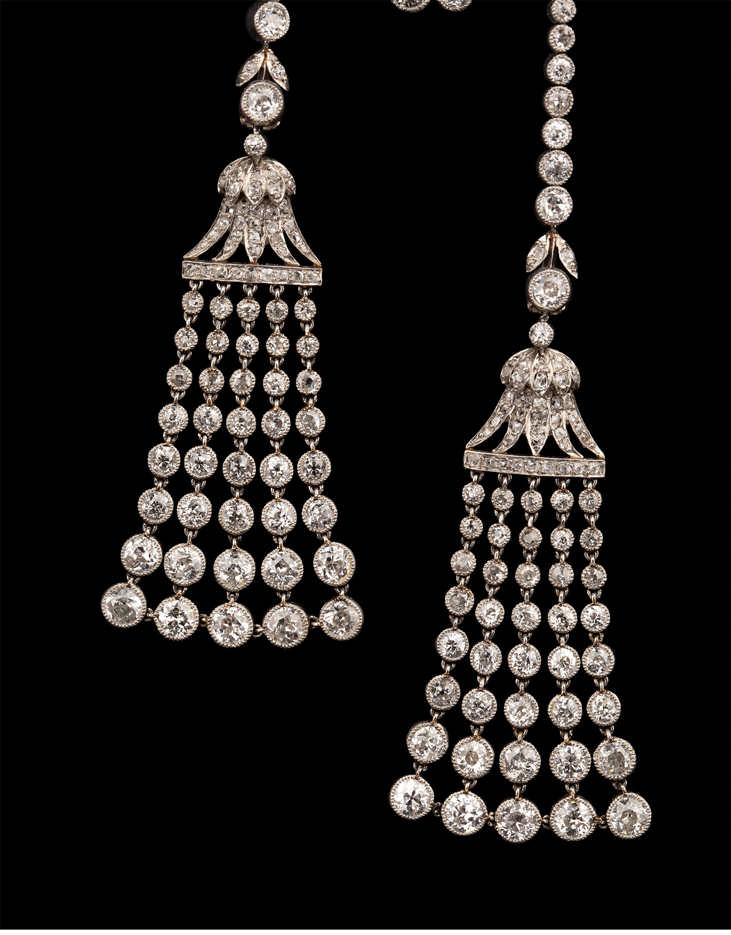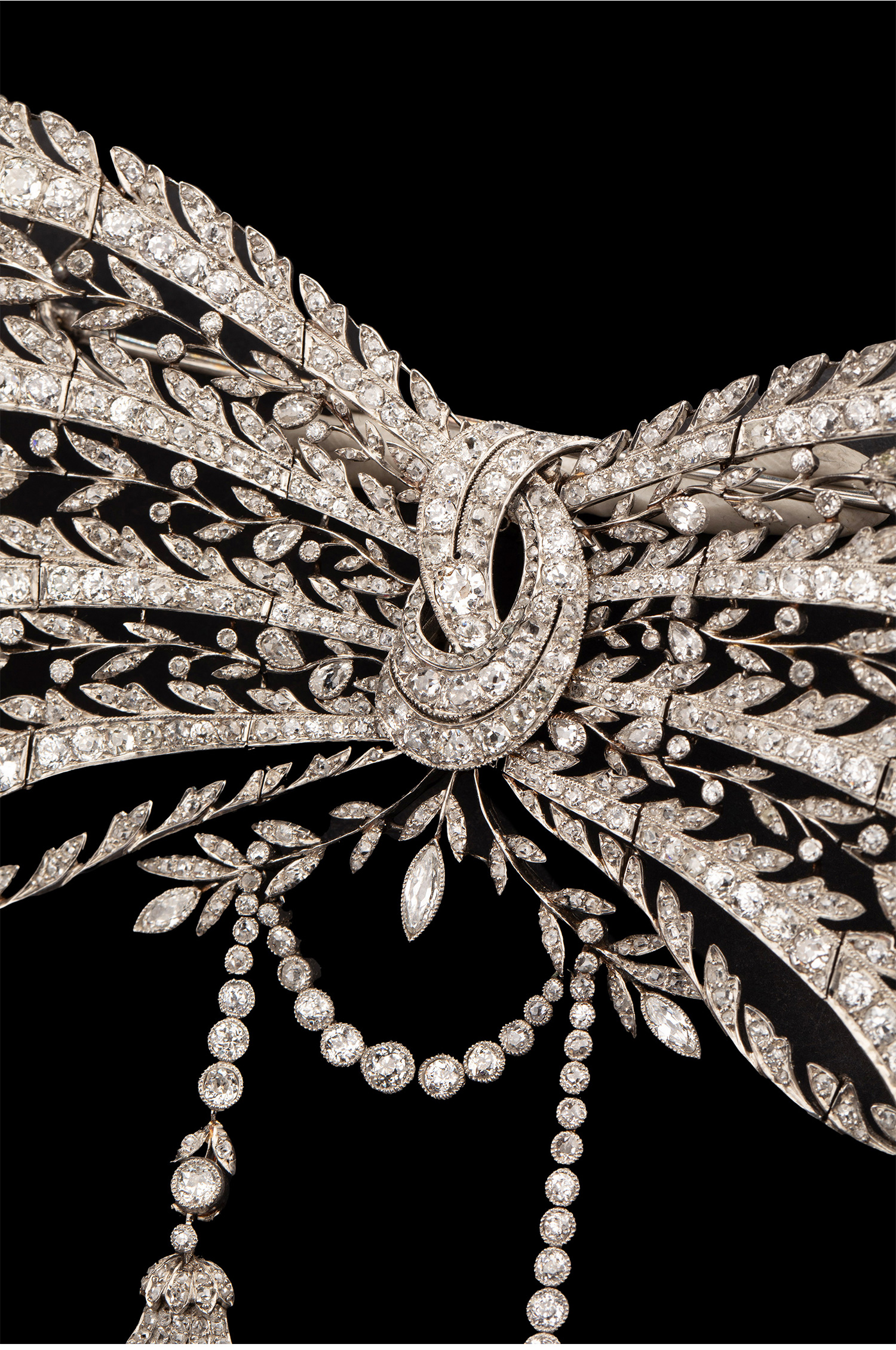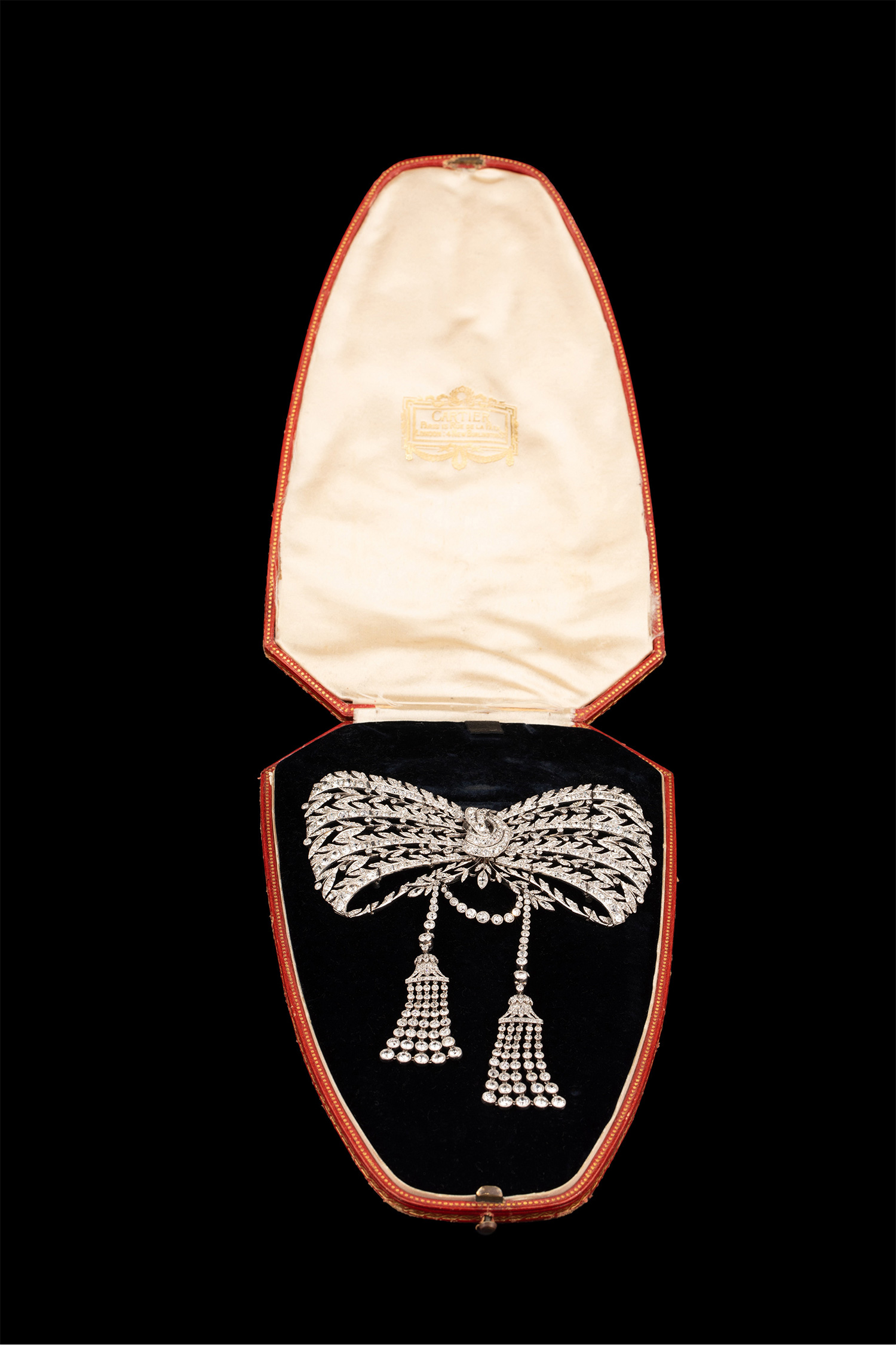 1910年代法国珠宝品牌出品美好时代风格铂金镶嵌钻石蝴蝶结流苏胸针 带原盒