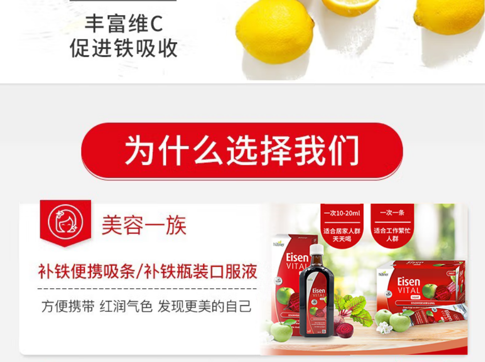 Huebner郝柏娜补铁口服液便携吸条 10ml*20条/盒