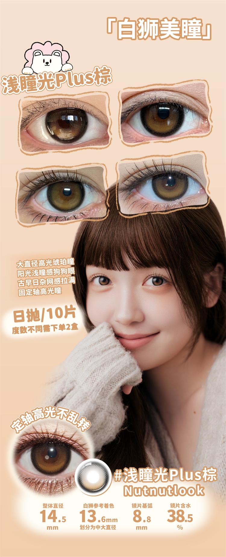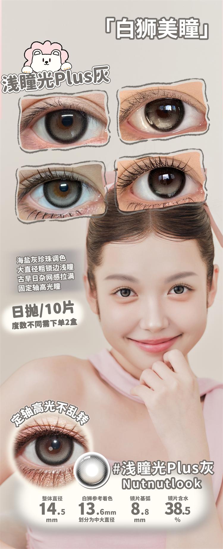 坚果力NUTNUTLOOK | 【固定轴高光瞳】 不倒翁系列 浅瞳光Plus灰&浅瞳光Plus棕&浅瞳光棕 14.5mm日抛10片