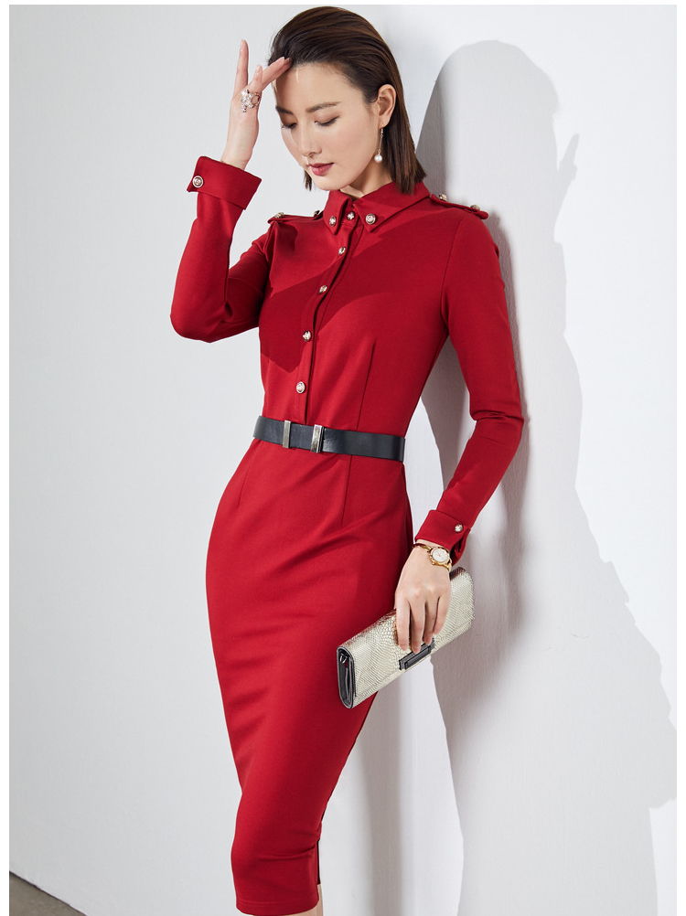 颈袖添香年春秋新款职业通勤OL品牌女装气质修身连衣裙