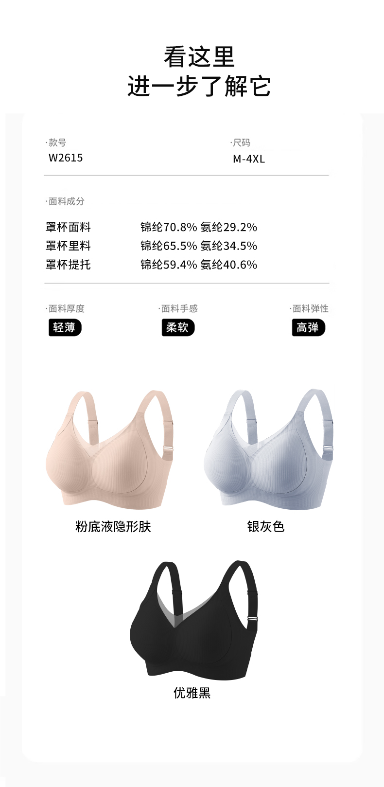2026年新款竖条纹显瘦月牙提拉大码内衣W2615(组合颜色需要自选可联系客服备注)