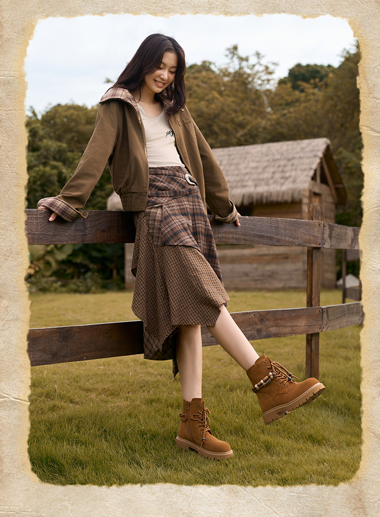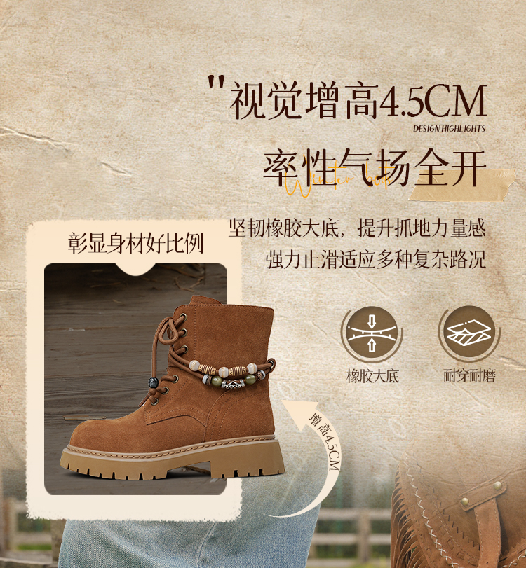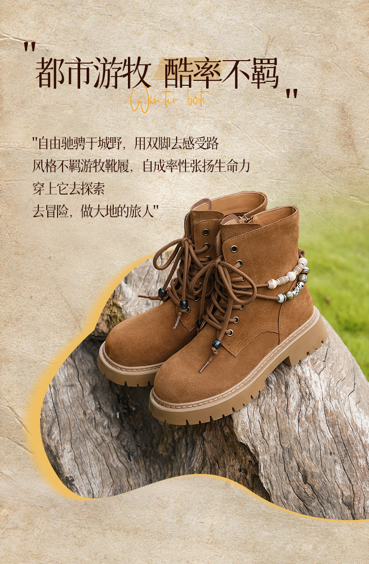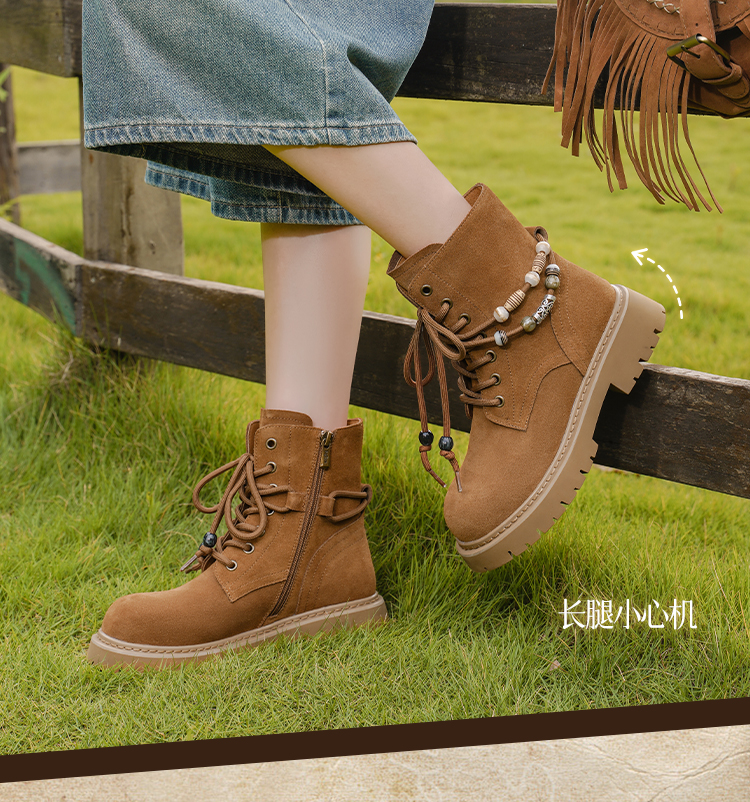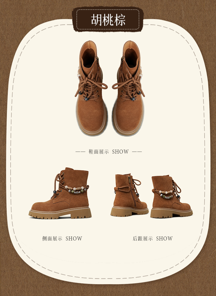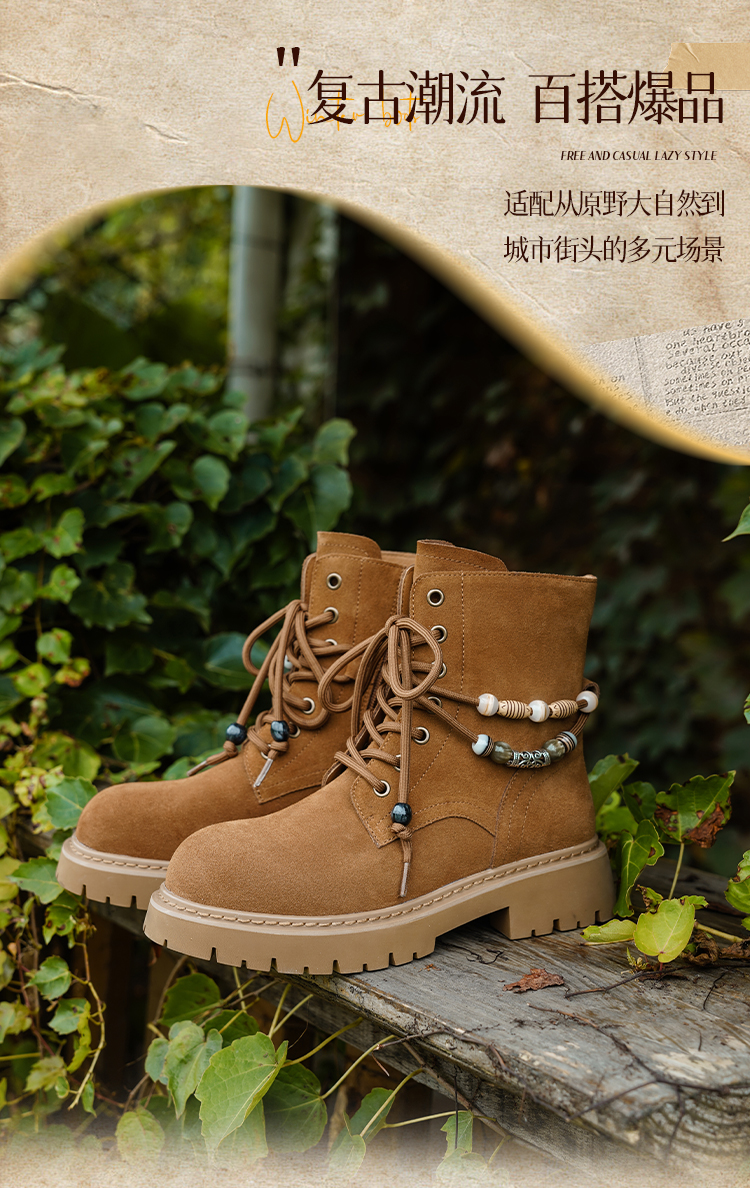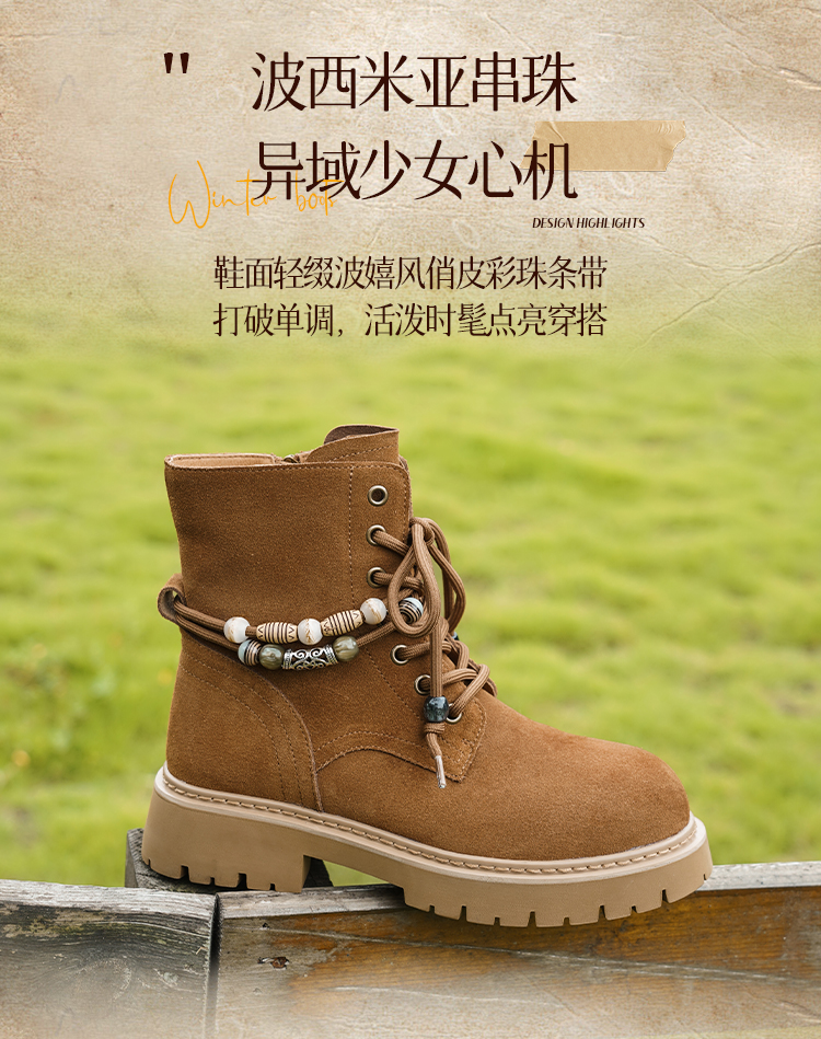 预售|Safiya/索菲娅2025民族风串珠复古休闲百搭户外工装厚底马丁靴SFD4116414