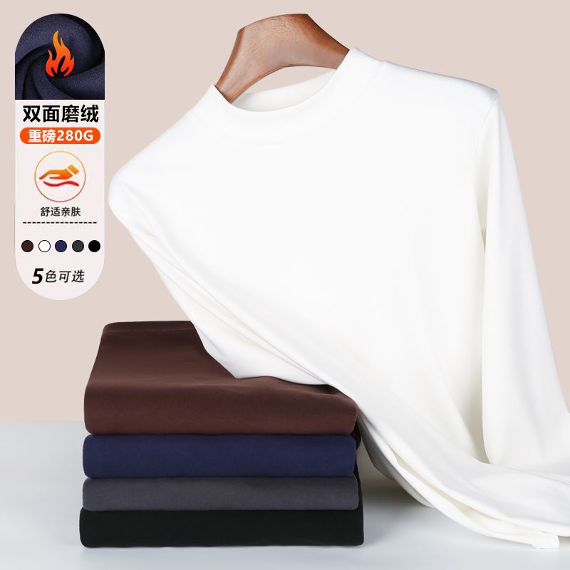 品名:秋冬280g男女同款双面绒半高领长袖T