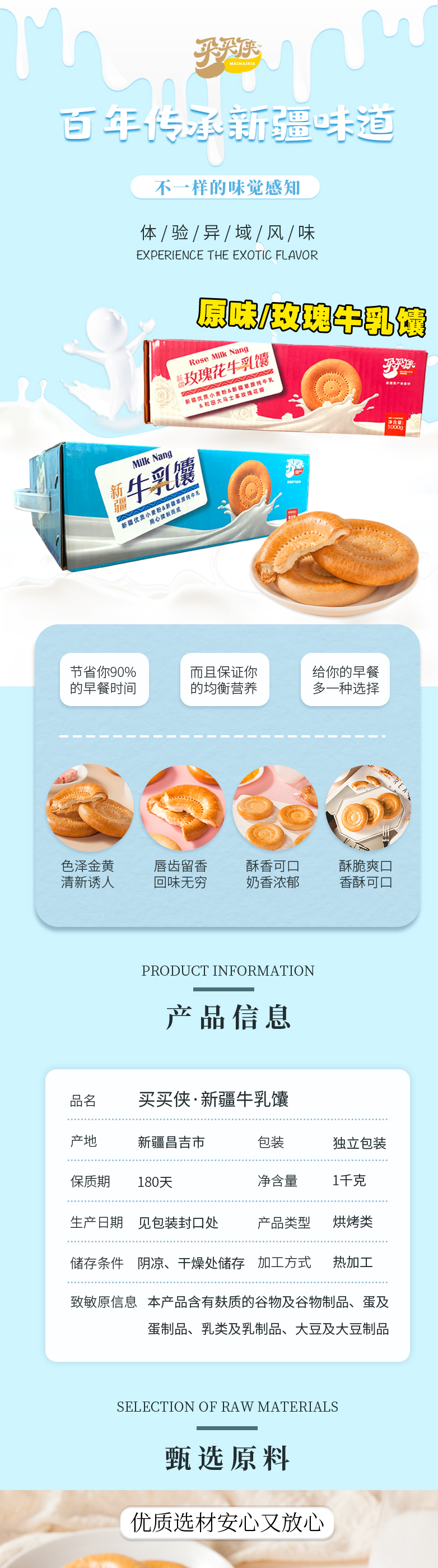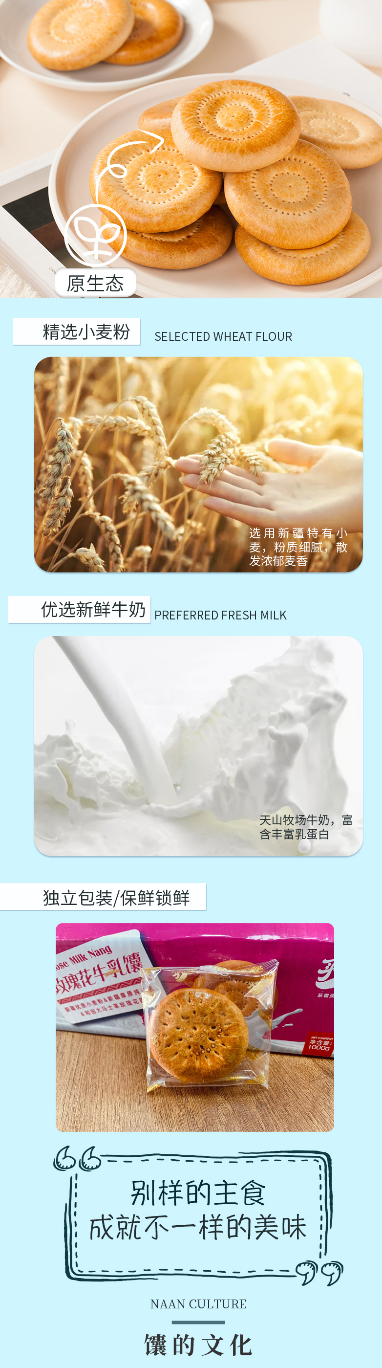 【买买侠】原味/玫瑰牛乳馕 1kg独立包装