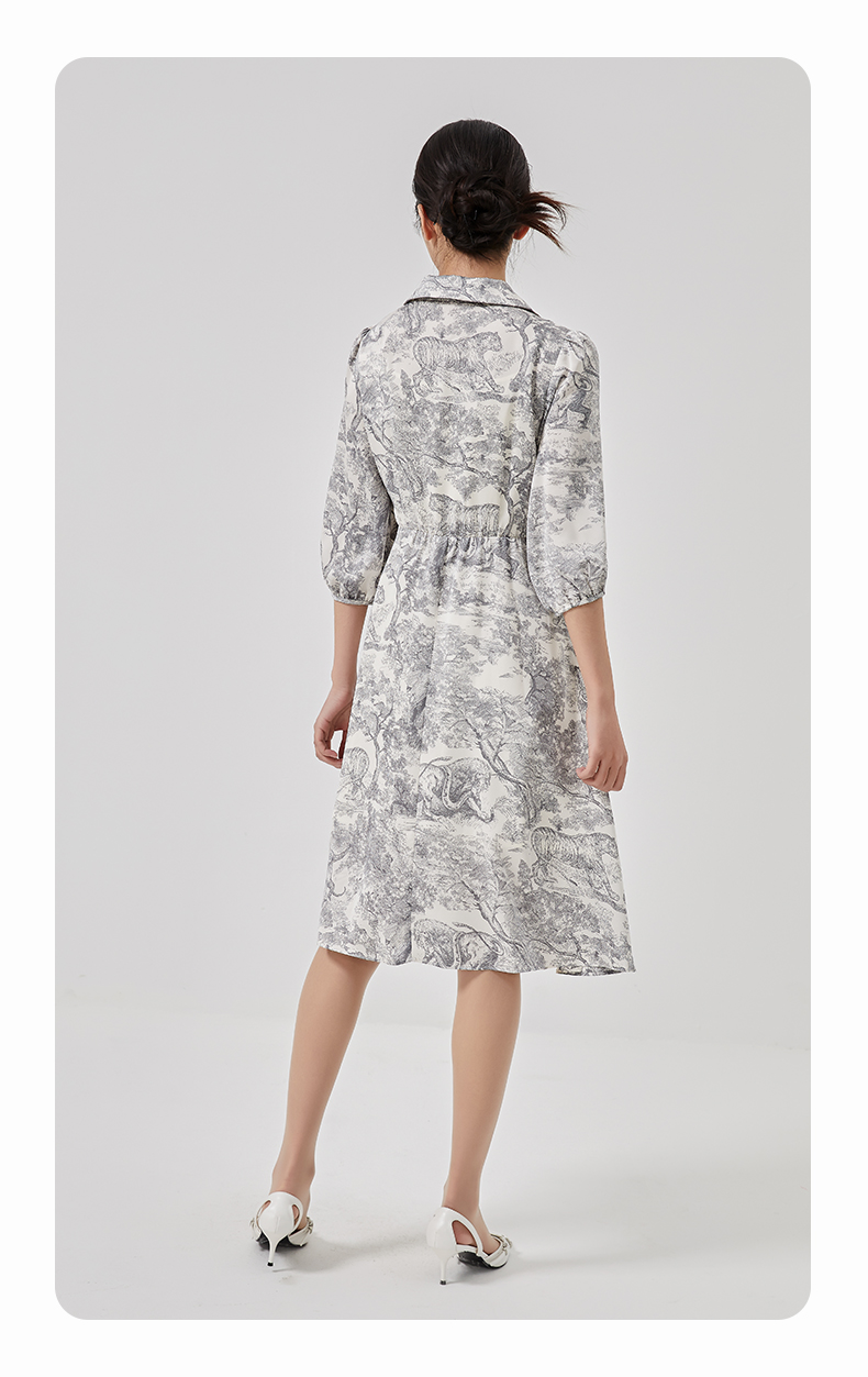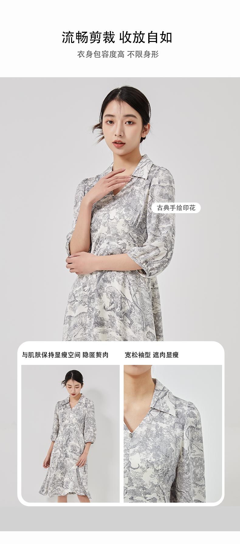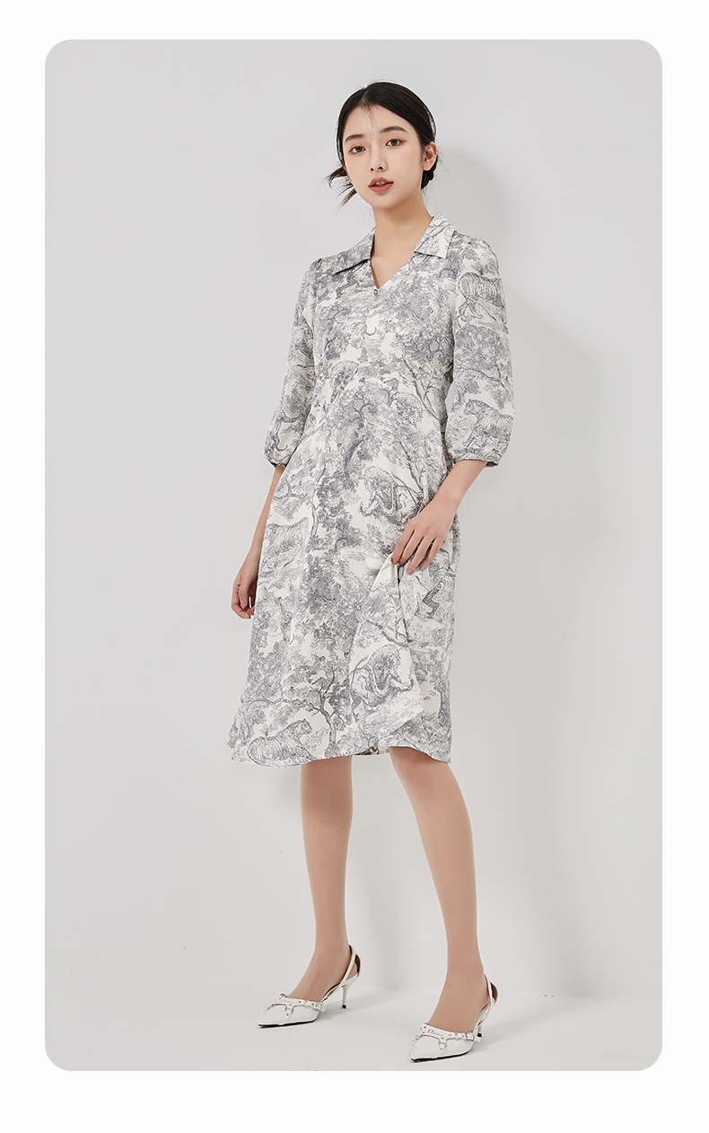 oldcolour2023春季新款复古法式碎花高腰中长款连衣裙女O13102361