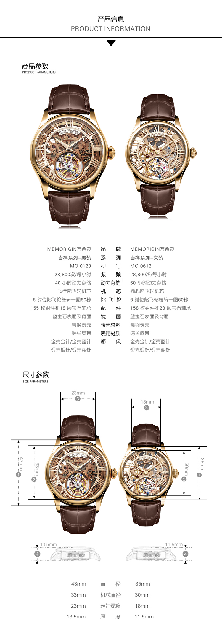 MEMORIGIN万希泉吉祥系列陀飞轮腕表情侣款刻字机械男女真皮手表