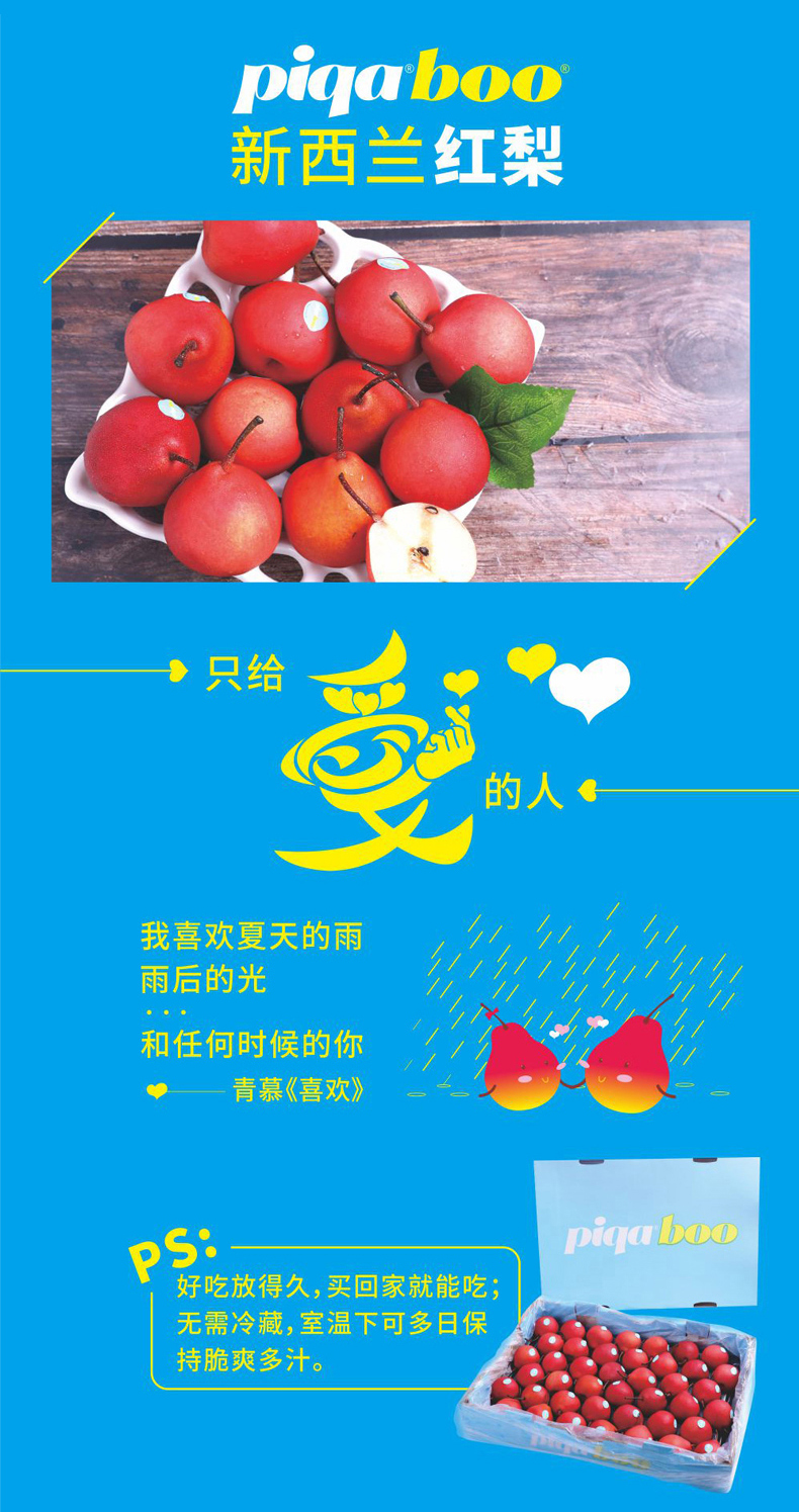 新西兰红啤梨进口新鲜水果 piqaboo红宝石红蜜梨新鲜梨子啤梨 6粒装 净重3斤