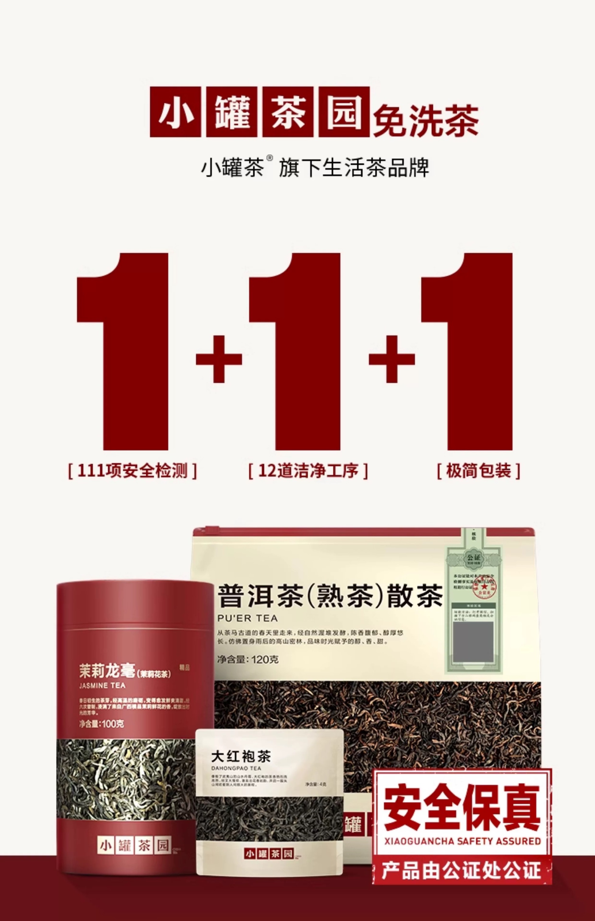 小罐茶园溢彩系列普洱熟茶60g2罐+大红袍茶40g2罐+滇红茶55g2罐【发中通物流】搭配咖色礼盒和手提袋哦适合自饮和送人